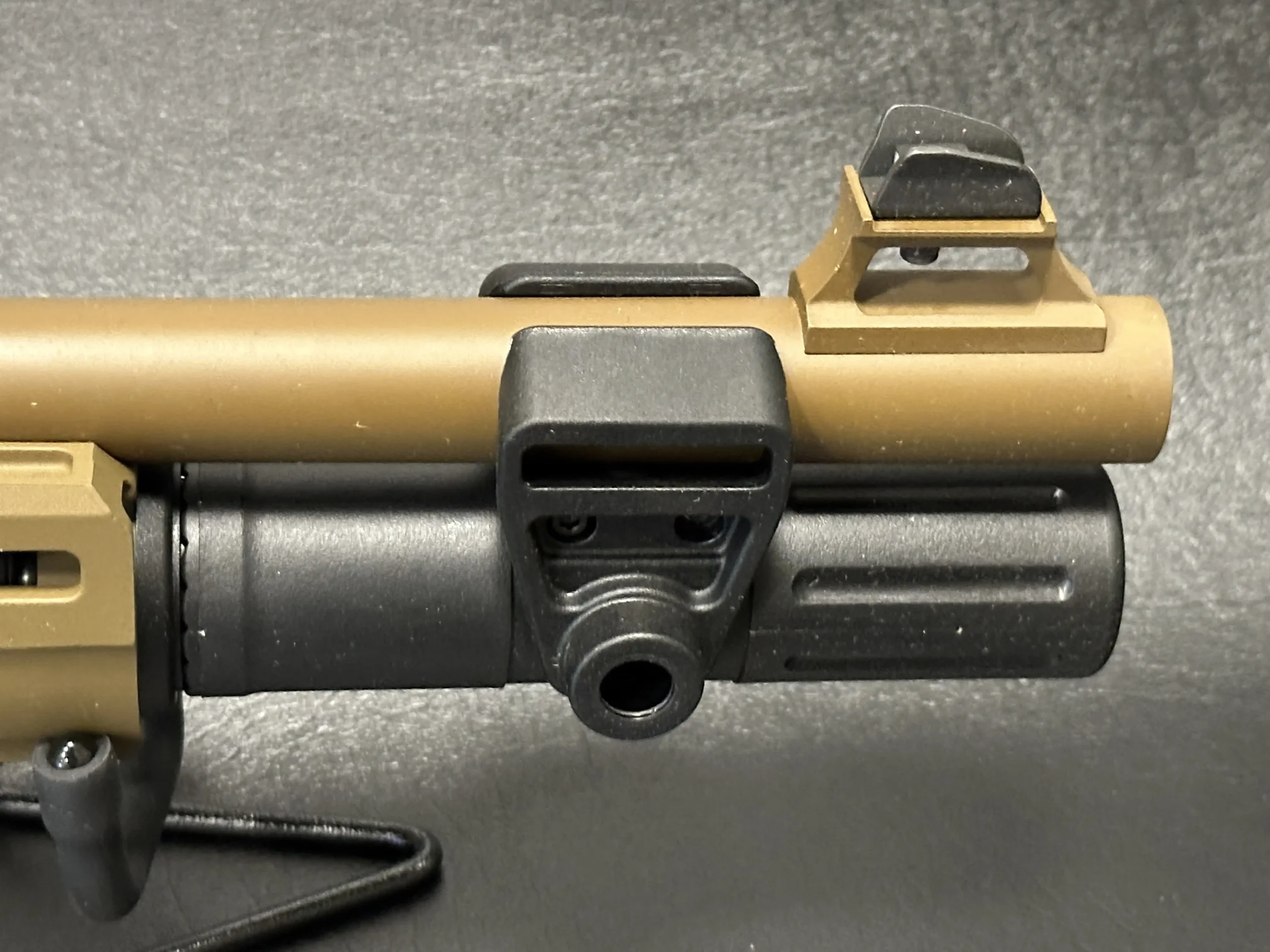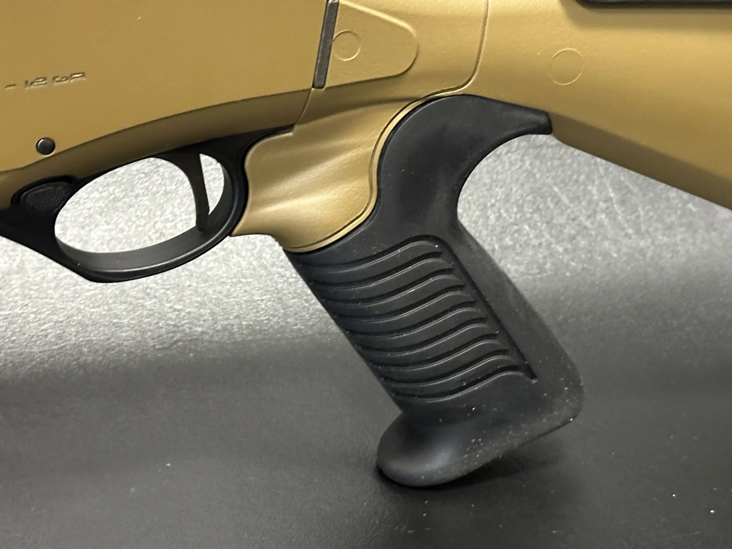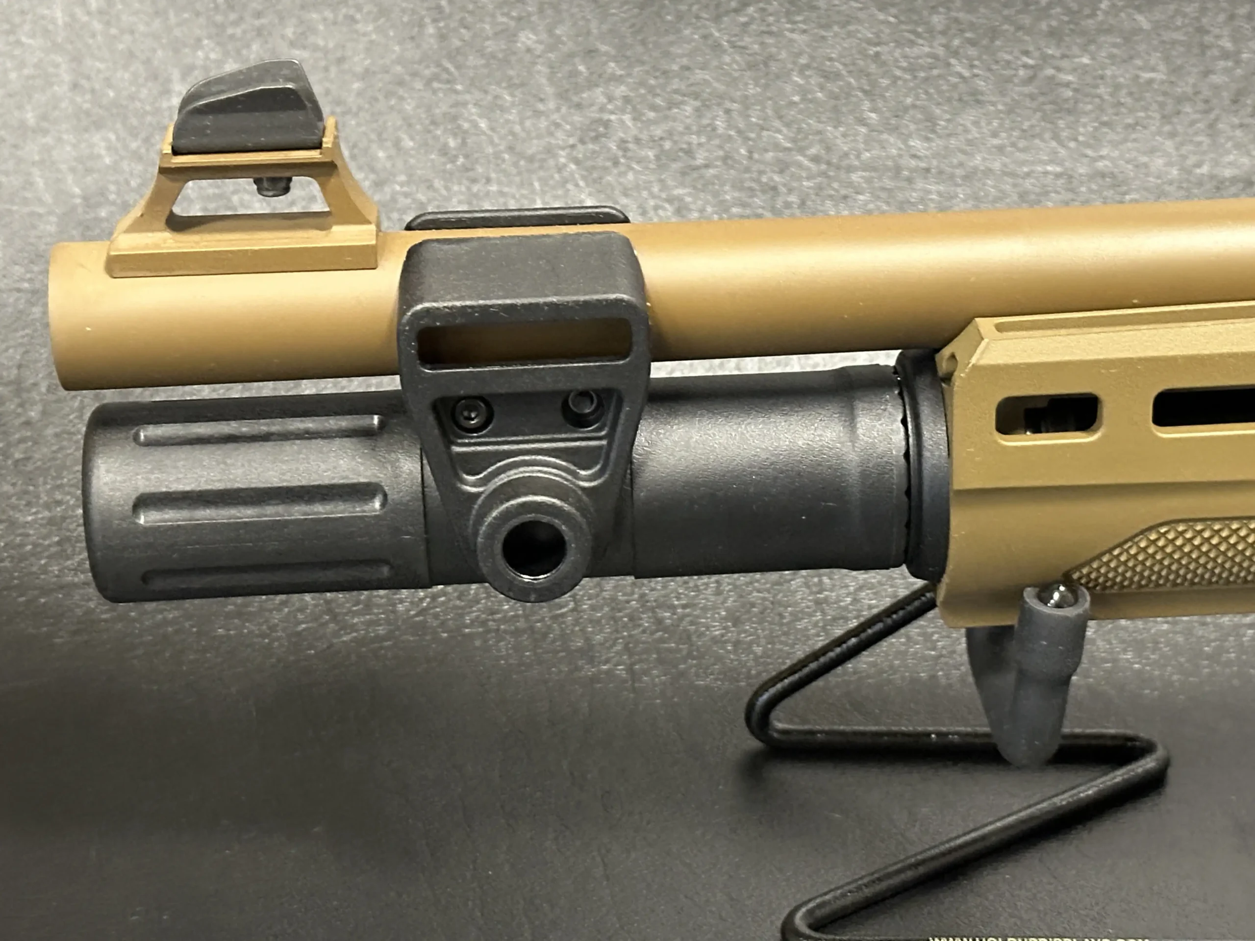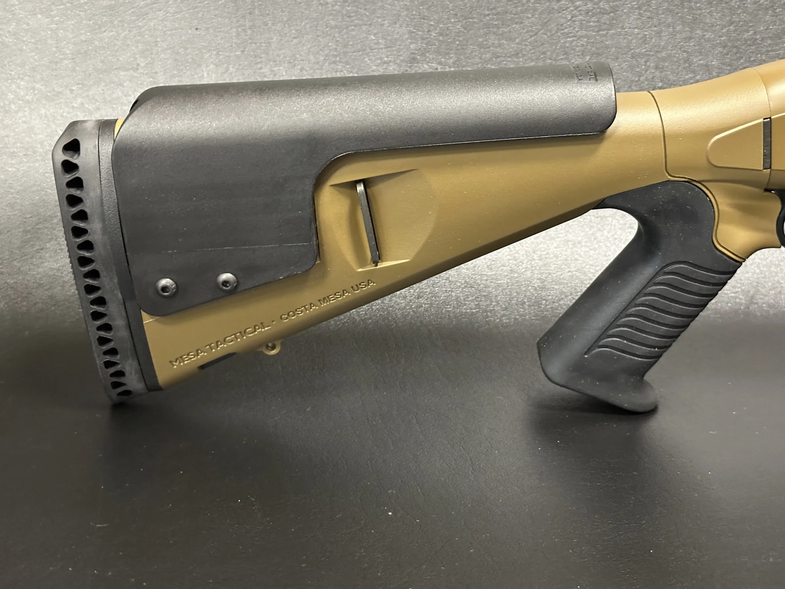 The pistol grip stock configuration further enhances handling dynamics, offering improved control, better recoil management, and a more intuitive shooter interface. Finished in matching FDE tones and complemented by black tactical accents, the overall presentation is cohesive, modern, and unmistakably professional.
