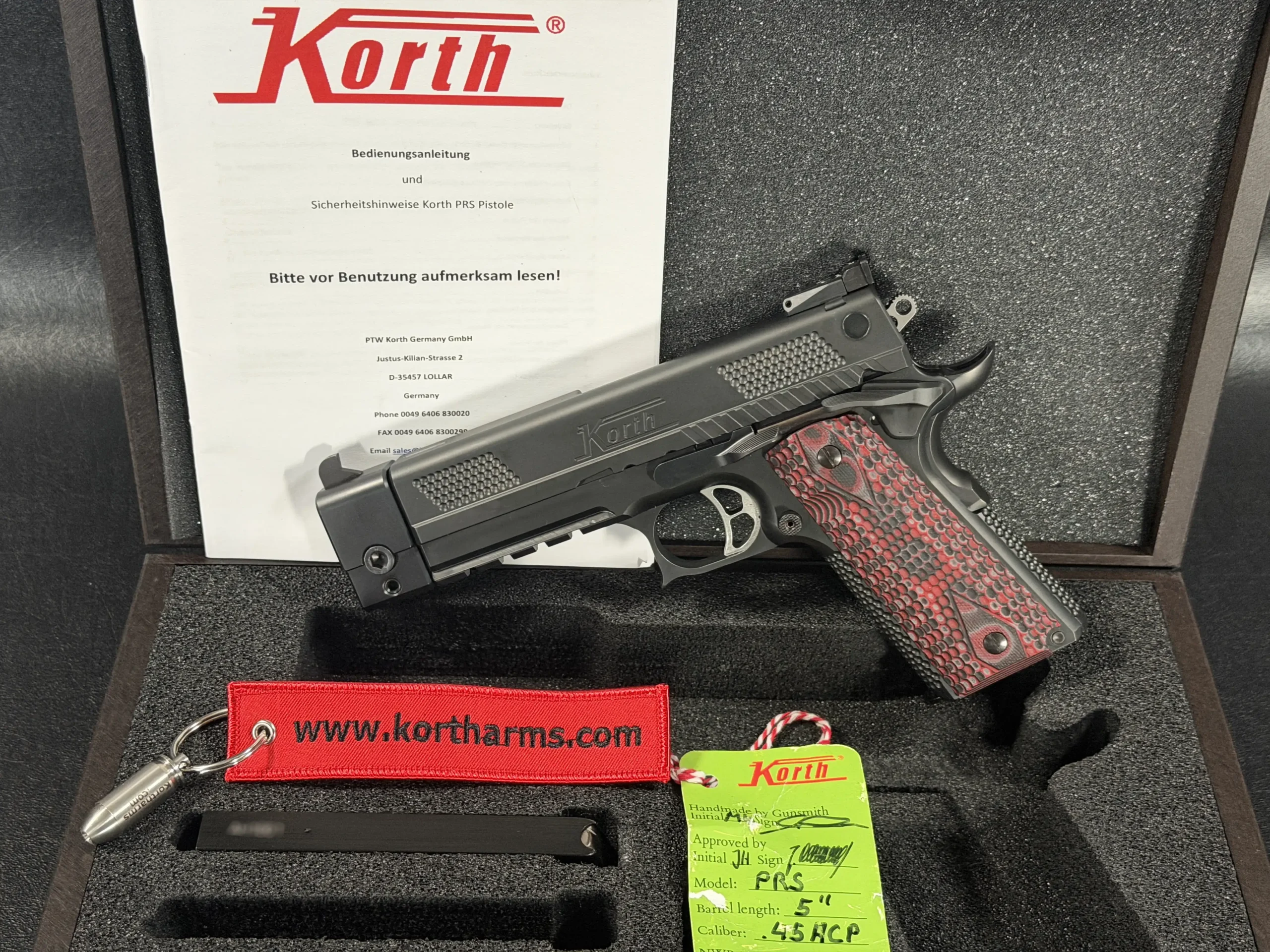 For the enthusiast who appreciates modern performance pistols at the highest tier, or the collector building a representation of elite European handgun craftsmanship, the Korth PRS 5” in .45 ACP stands as both a shooter’s instrument and a display-worthy work of mechanical art.