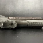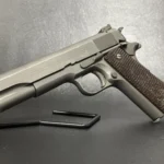 It’s not just old — it’s significant. This particular pistol was one of the first Service Model Aces acquired by the U.S. Government for testing and training, complete with “U.S. Inspected RIA” markings from Rock Island Arsenal. It retains its factory 5-inch barrel, parkerized finish, and brown checkered Keyes grips, all wrapped around that clever floating chamber system that made the .22LR mimic the recoil of a .45 ACP. Smart, practical, and very Colt.