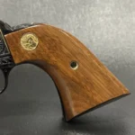 And then there are the grips, smooth, polished wood that fits the hand like it’s meant to be there, yet looks like it belongs under glass. Every inch of this revolver was made to balance power and beauty, purpose and poise.