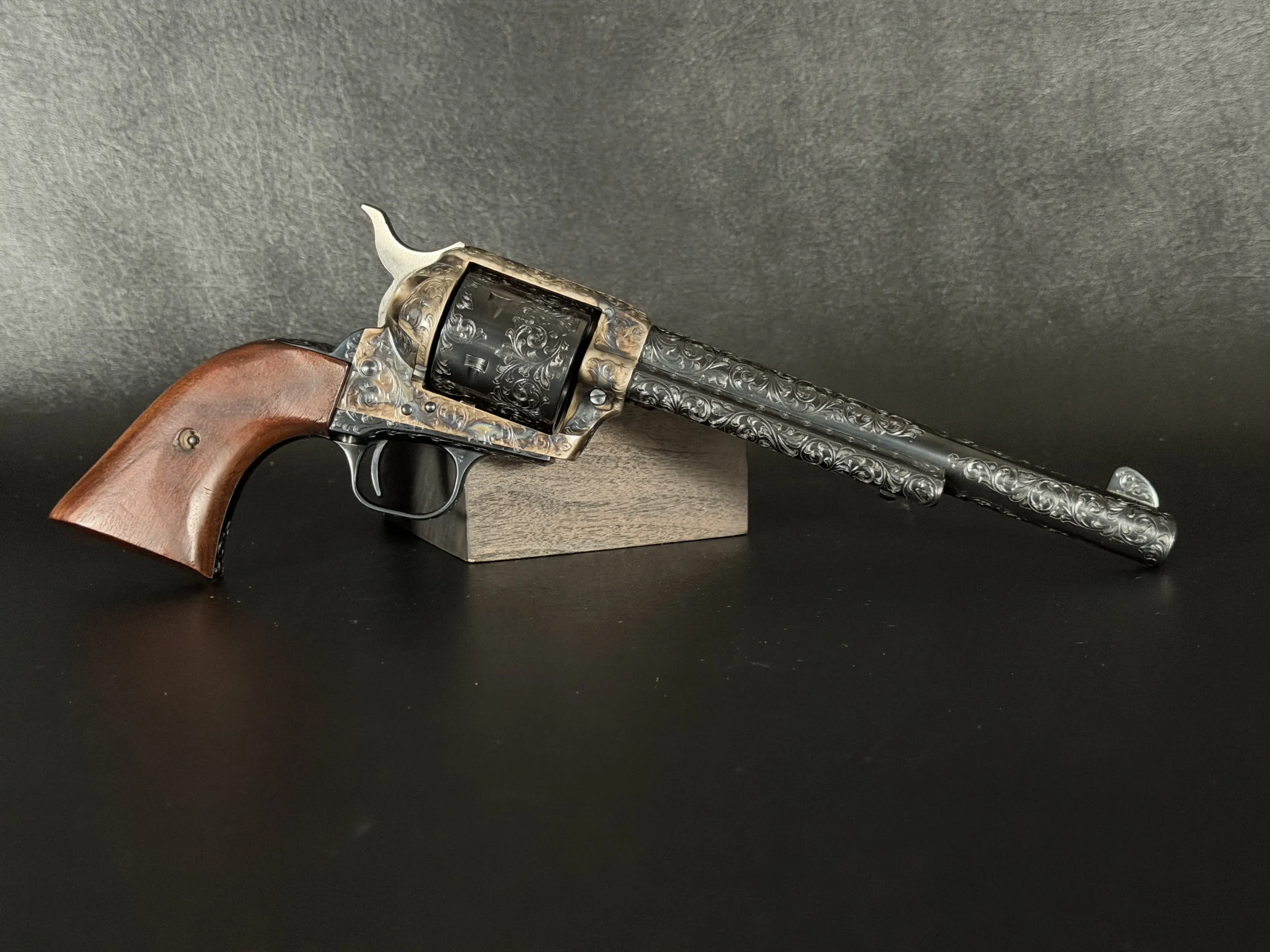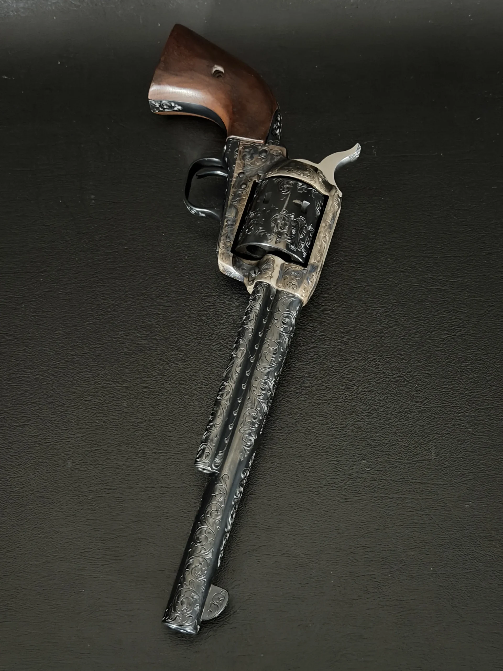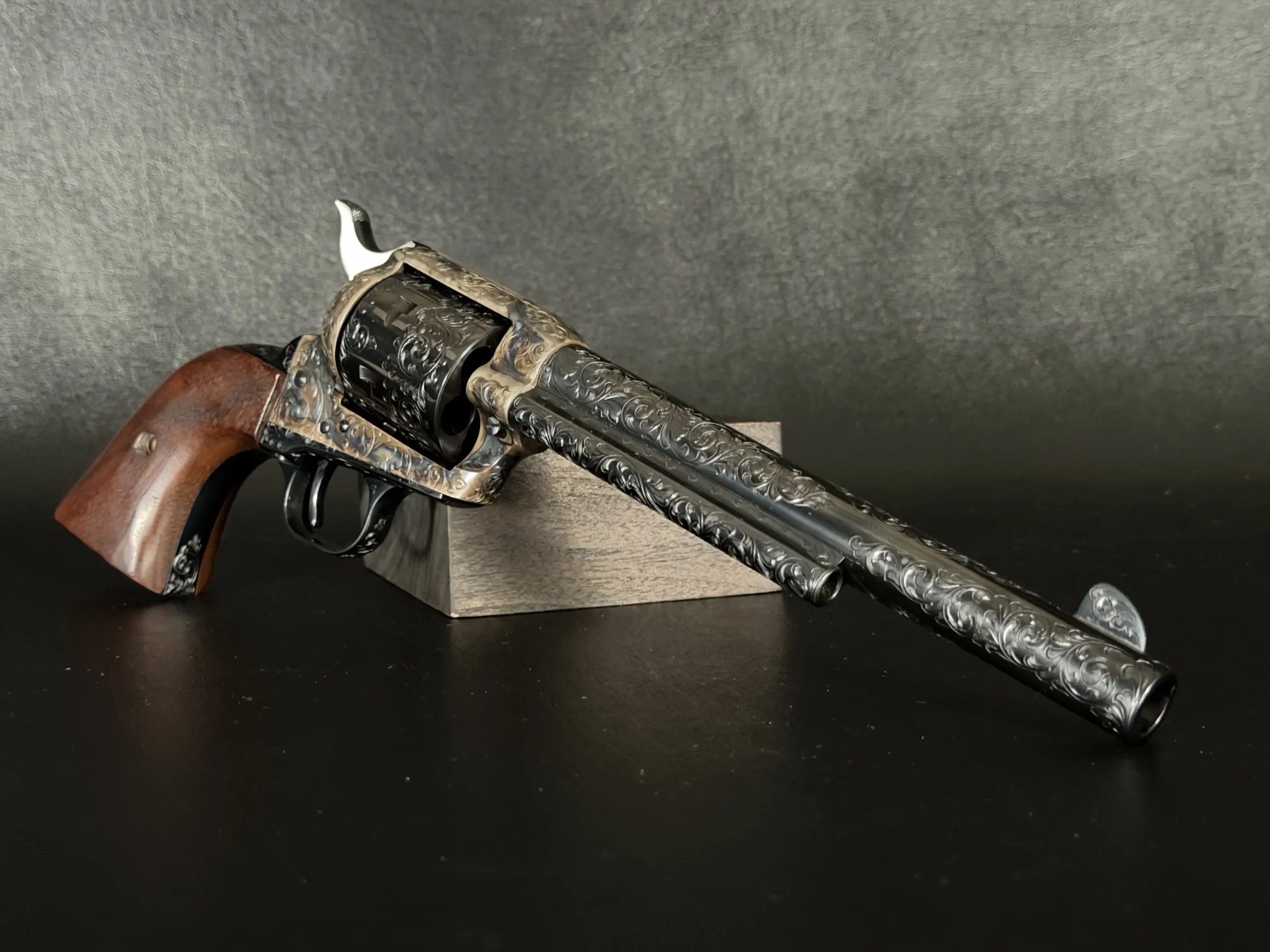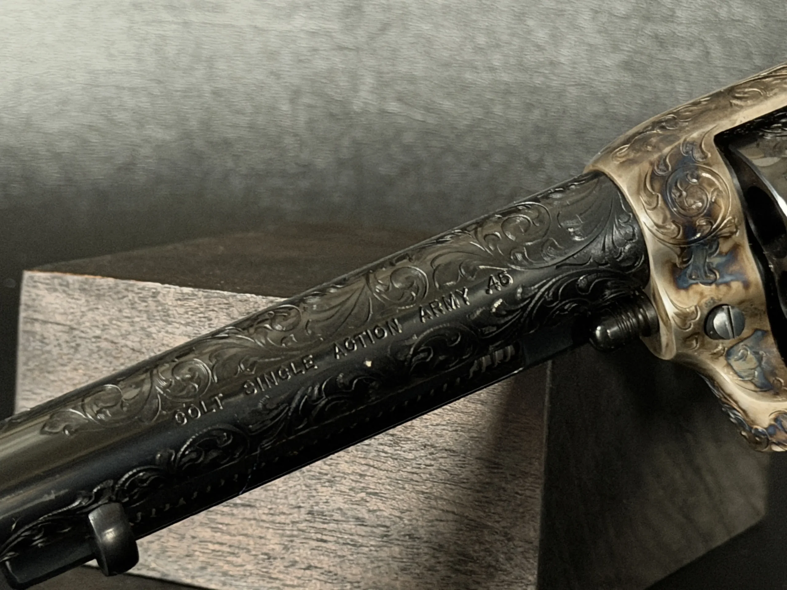 There’s something timeless about a Colt Single Action Army, but this one? It doesn’t just carry history—it wears it proudly in every swirl of its engraving.