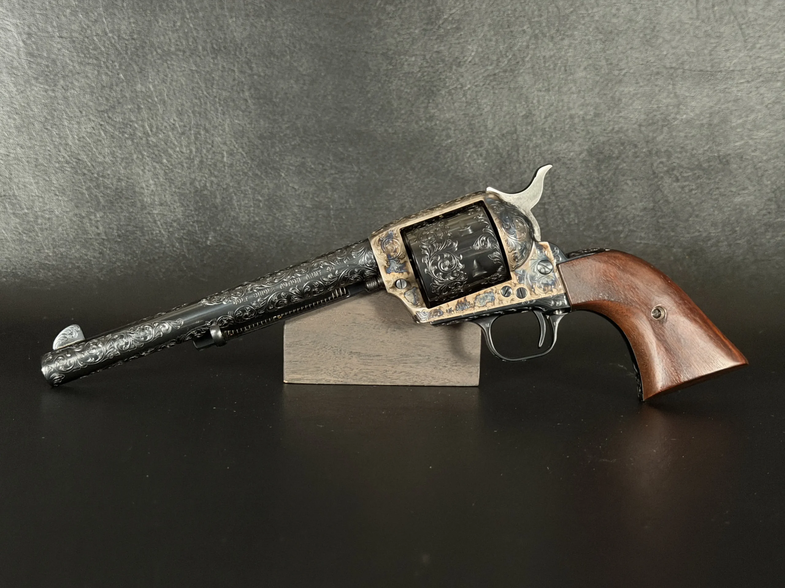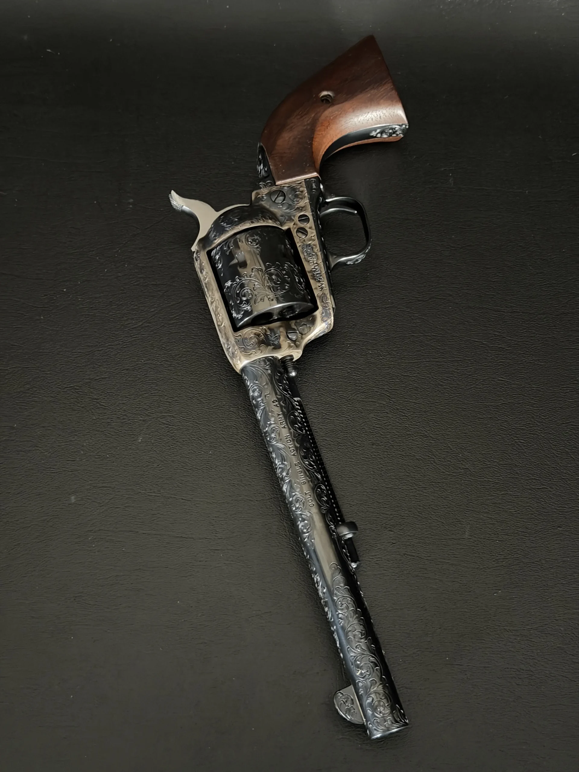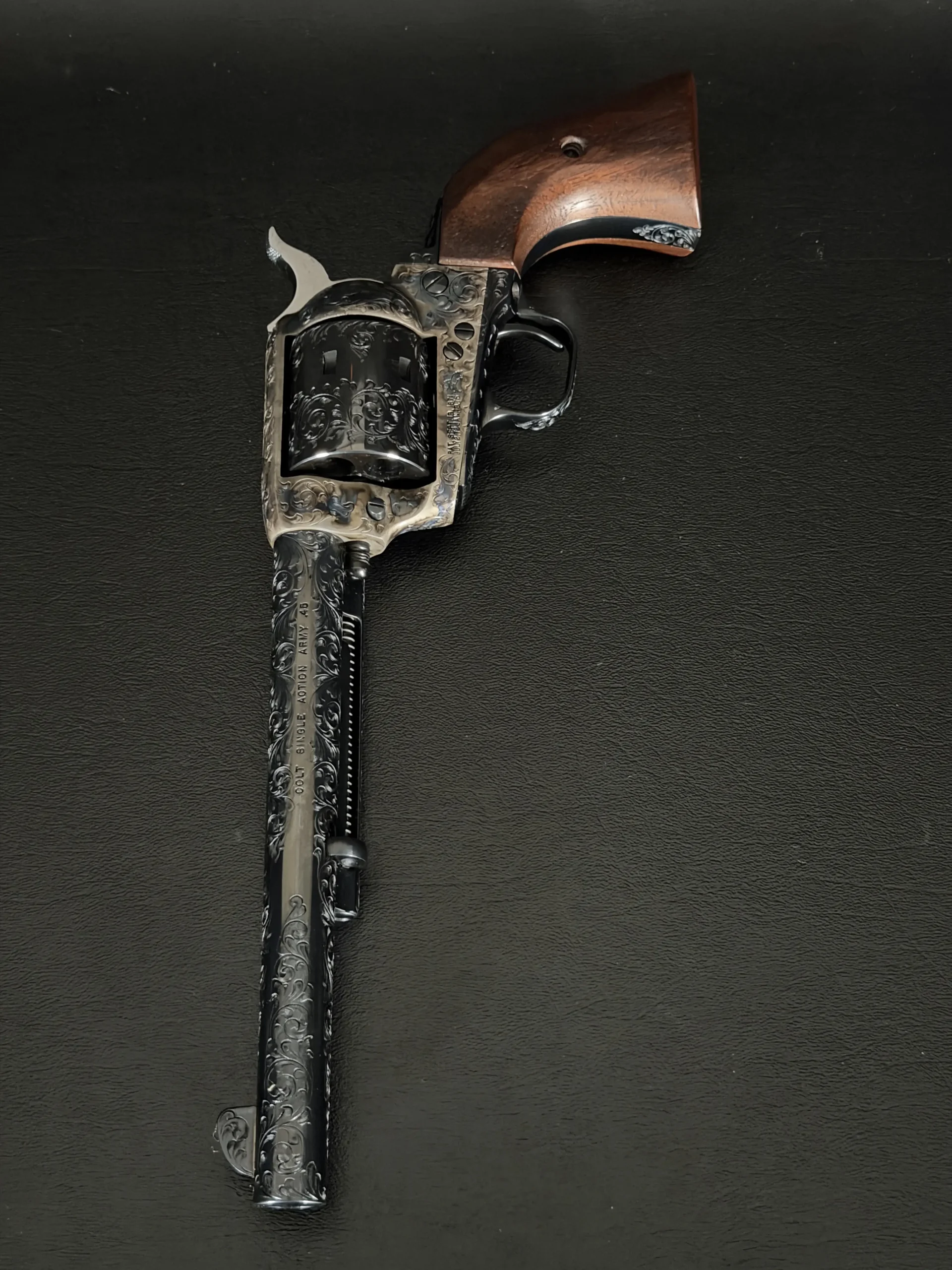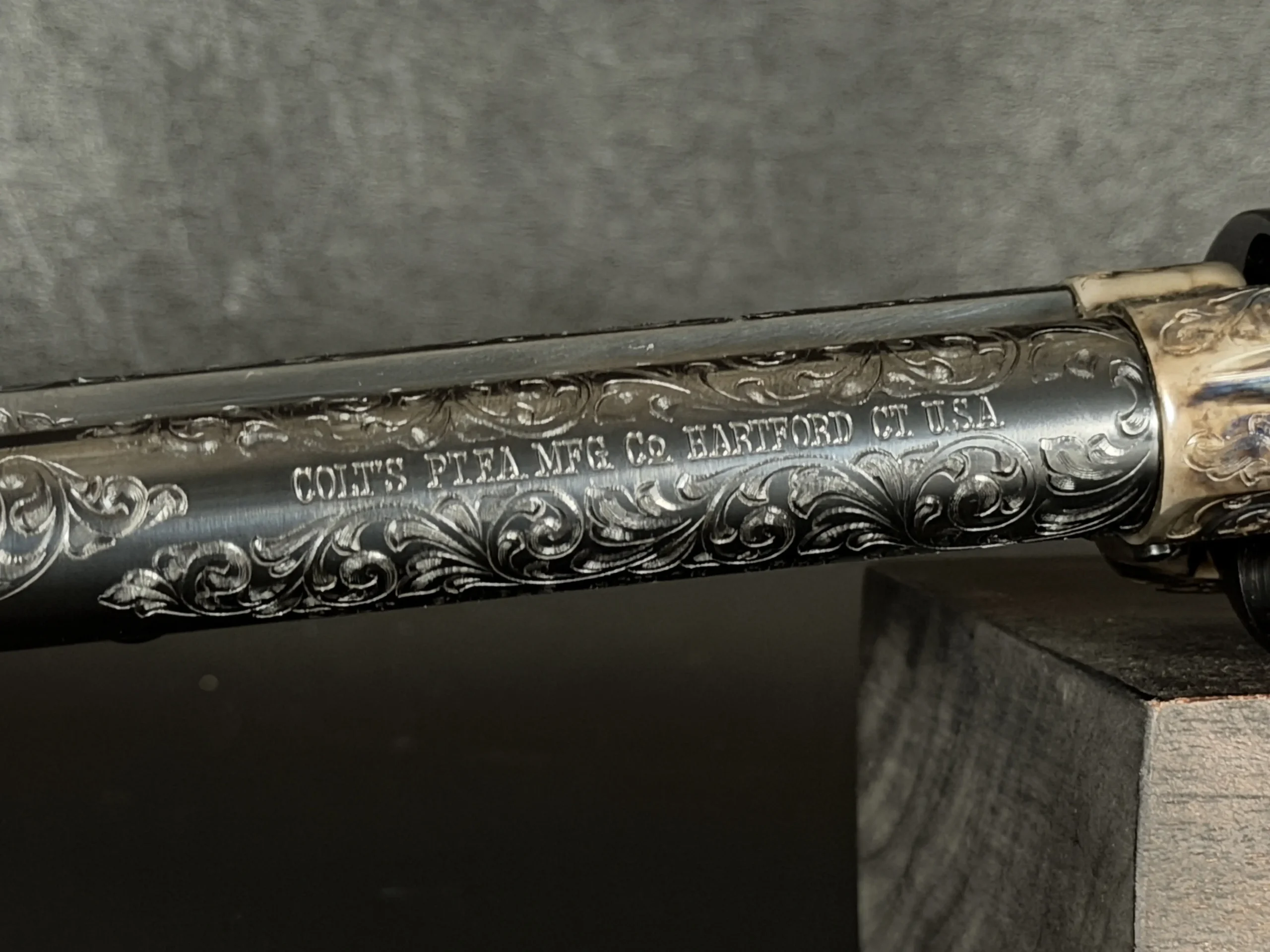 There’s something timeless about a Colt Single Action Army, but this one? It doesn’t just carry history—it wears it proudly in every swirl of its engraving.