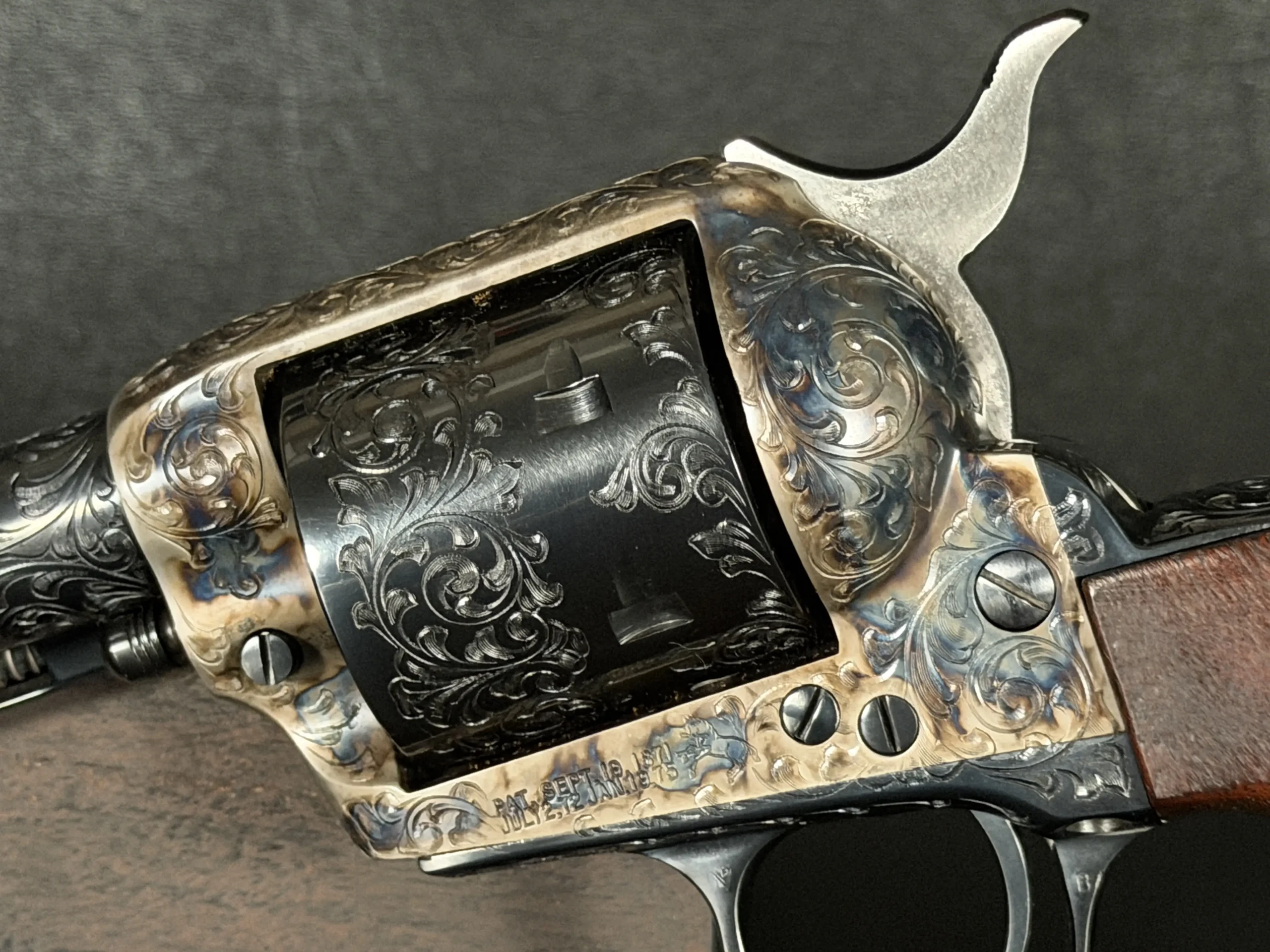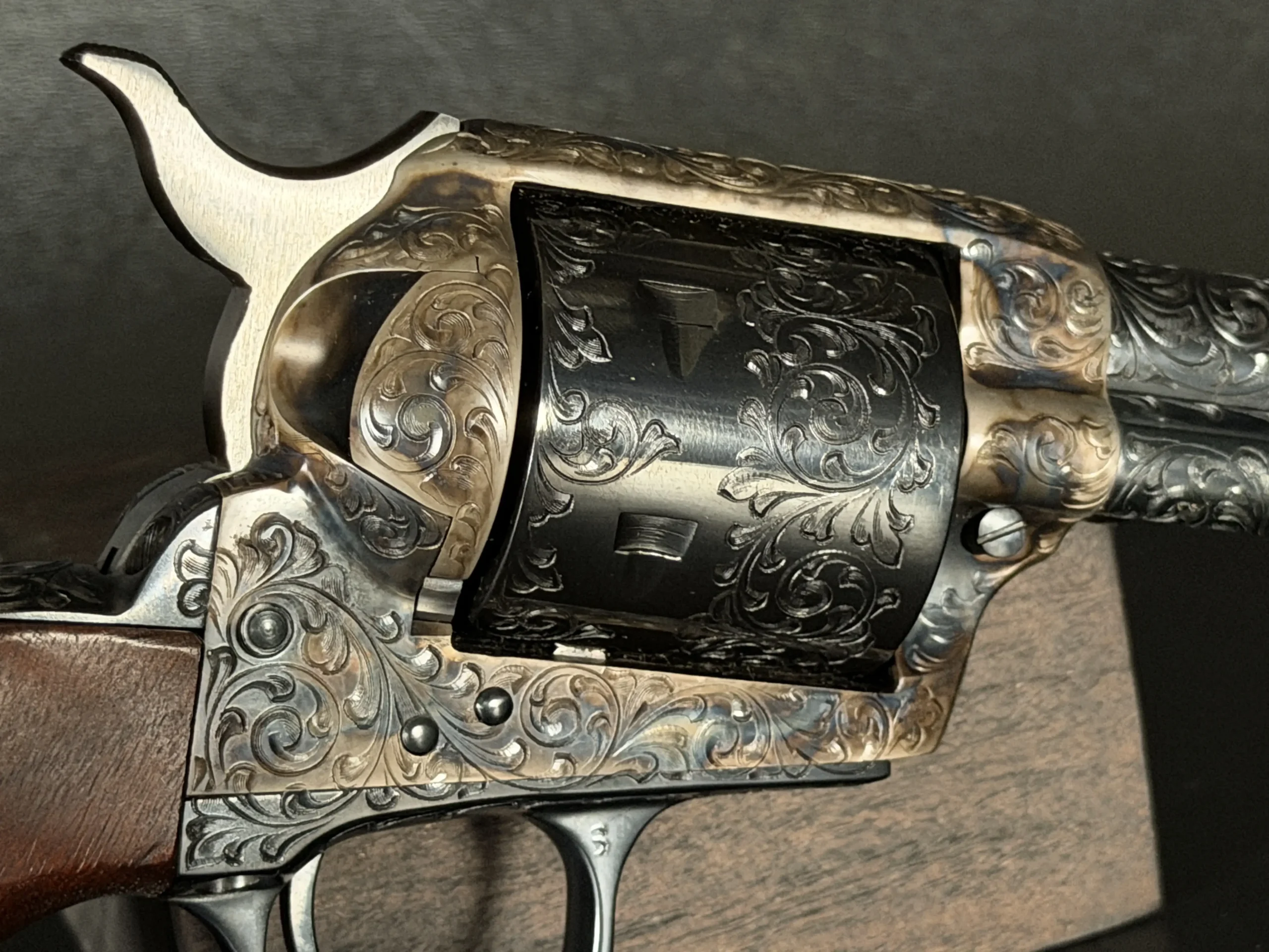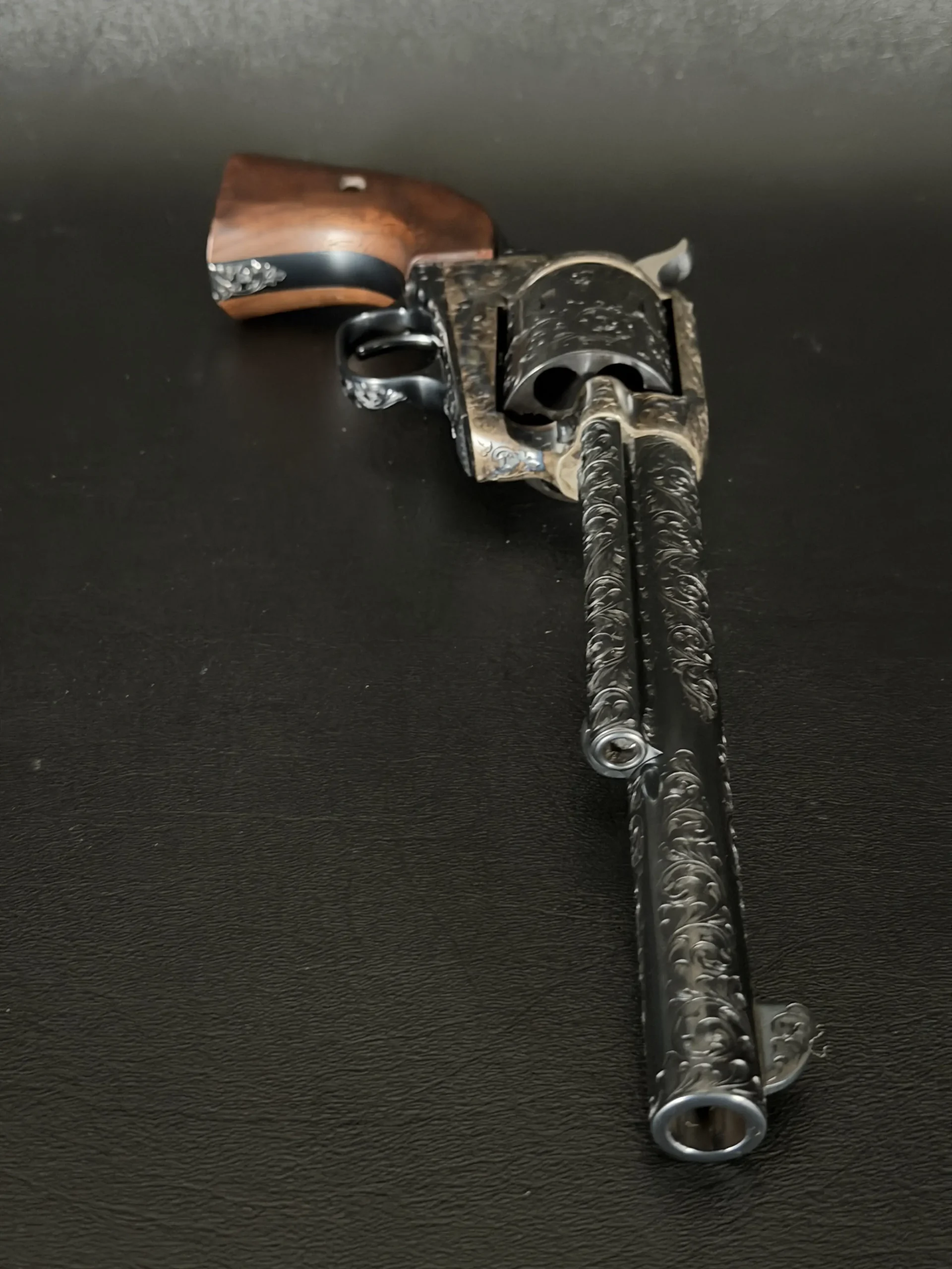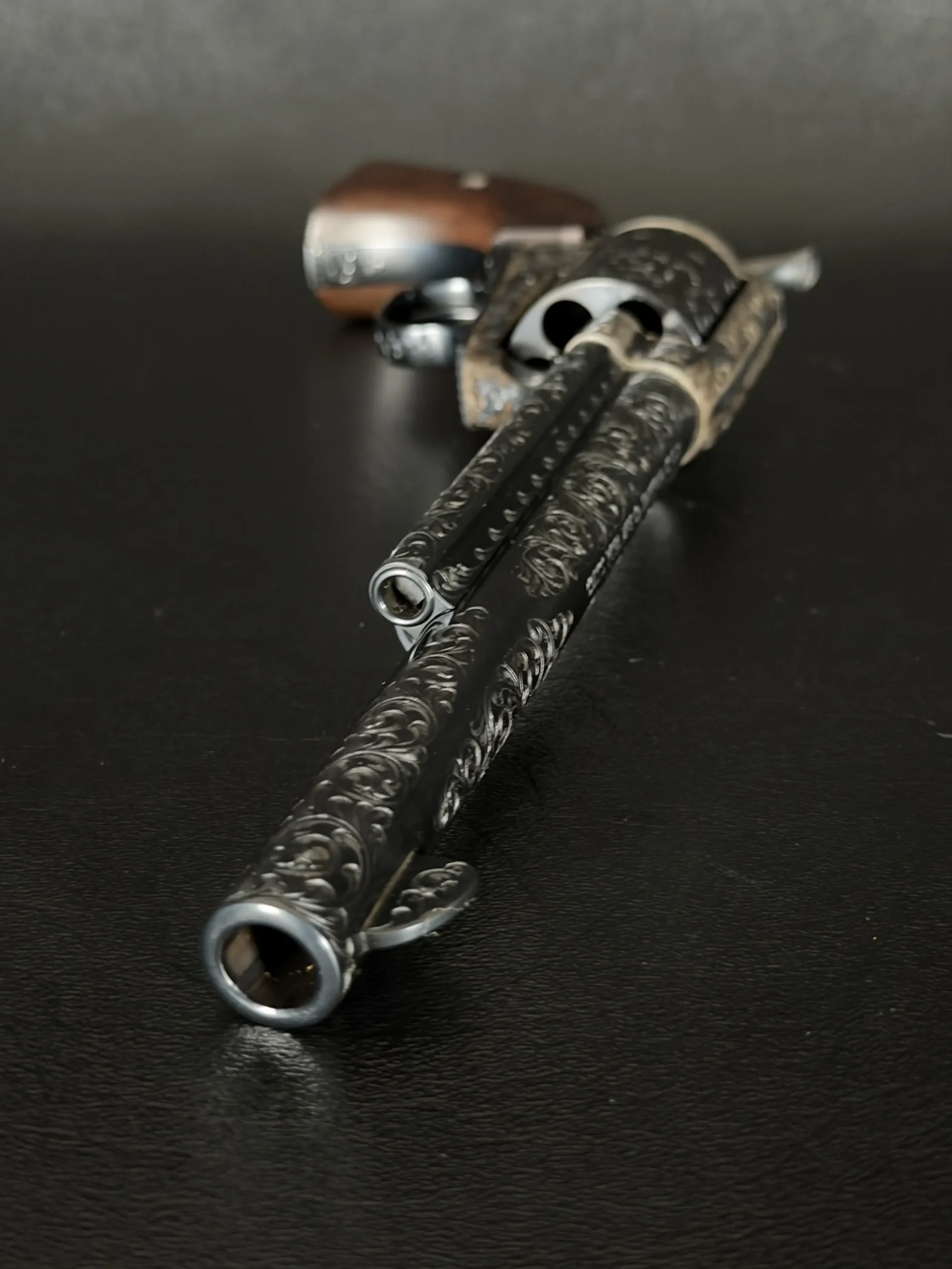 There’s something timeless about a Colt Single Action Army, but this one? It doesn’t just carry history—it wears it proudly in every swirl of its engraving.