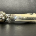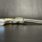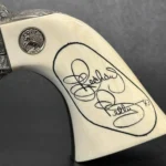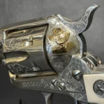 The revolver itself is a sight to behold: intricate engraving, opulent gold accents, and smooth ivory grips that glow softly against the polished steel. Every detail nods to Richard Petty’s legacy, a man whose dedication, precision, and pursuit of perfection mirror Colt’s own. The gold embellishments aren’t overdone; they strike a perfect balance between elegance and reverence, symbolizing the golden era of Petty’s racing dominance.