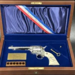 This example comes housed in a custom leather display case, lined in rich fabric and built to present the revolver like the piece of history it is. The craftsmanship of the case alone speaks to the attention to detail that defines this edition.