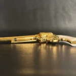 One revolver was brought to life by Dennis Kies, and the other by George Spring. Each artist left his mark—literally. Kies’s work is stamped “KIES COLT ENGRVR” on the butt and is finished with elegant gold accents (nicknamed “gold/A”), while Spring’s version (“silver/B”) carries the same personalized touch, but in a cooler silver tone. Both are built on black powder-style frames, with heat-blued screws and small parts that harken back to Colt’s 19th-century heyday.