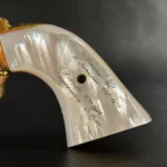 Look closely at the back straps and you’ll find a commemorative 150th-anniversary design—subtle but meaningful. The left grips pay homage to Colt’s deep bench of engraving talent, featuring the names of other legendary factory engravers, connecting these revolvers to the larger Colt story. It’s a nod from one generation of artists to the next.
