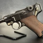 The grips’ sharp checkering and attractive grain further enhance Luger’s aesthetic. The grips, in satisfactory condition, are a testament to the excellent craftsmanship and attention to detail. Mechanically, the firearm functions flawlessly, showcasing the enduring reliability of the DWM Luger design and instilling a strong sense of confidence in its quality.