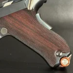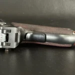 Condition is excellent for its age, thanks to careful arsenal rework. The barrel shows a faint matte texture, while the remainder of the pistol retains crisp, even blueing with only minor toning on the breech block. The grips are dark, checkered walnut—clean, tight, and free of cracks.