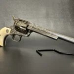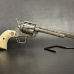 This exceptional Colt 3rd Generation Single Action Army (SAA) revolver stands out with its 1981 manufacturing date and the masterful engraving by renowned engraver David Wade Harris. It is chambered in .357 Magnum and features a 7 1/2” barrel with a blade front sight and a six-shot fluted cylinder, making it a unique and desirable piece for any collector or enthusiast.