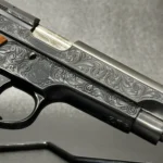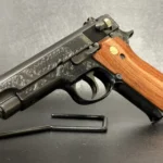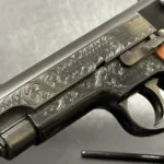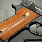 Made sometime between 1977 and 1978, this semi-auto pistol isn’t just functional—it’s stunning. The Class “A” floral scroll engraving covers both the slide and the frame with a level of detail that draws your eye, even from across the room. It’s the kind of work that wasn’t mass-produced or rushed—each line feels intentional, even personal.