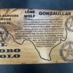 - A large hardwood plaque detailing Gonzaullas’ life and career