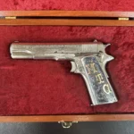 While this particular 1911 isn’t definitively documented as his sidearm, it has been attributed to his personal inventory by a prior owner, and photos from the period show him carrying similarly styled and customized Government Models. The silver grips are modern additions, but the pistol and High Standard barrel date squarely to his era of service.