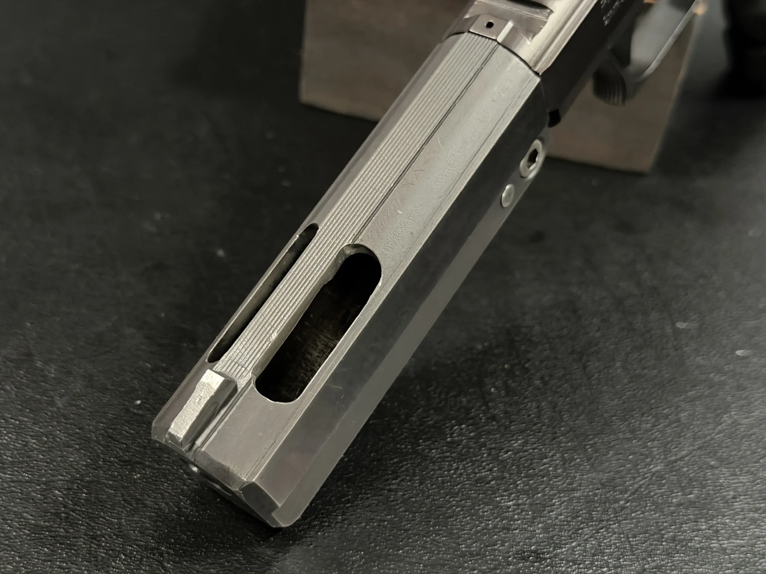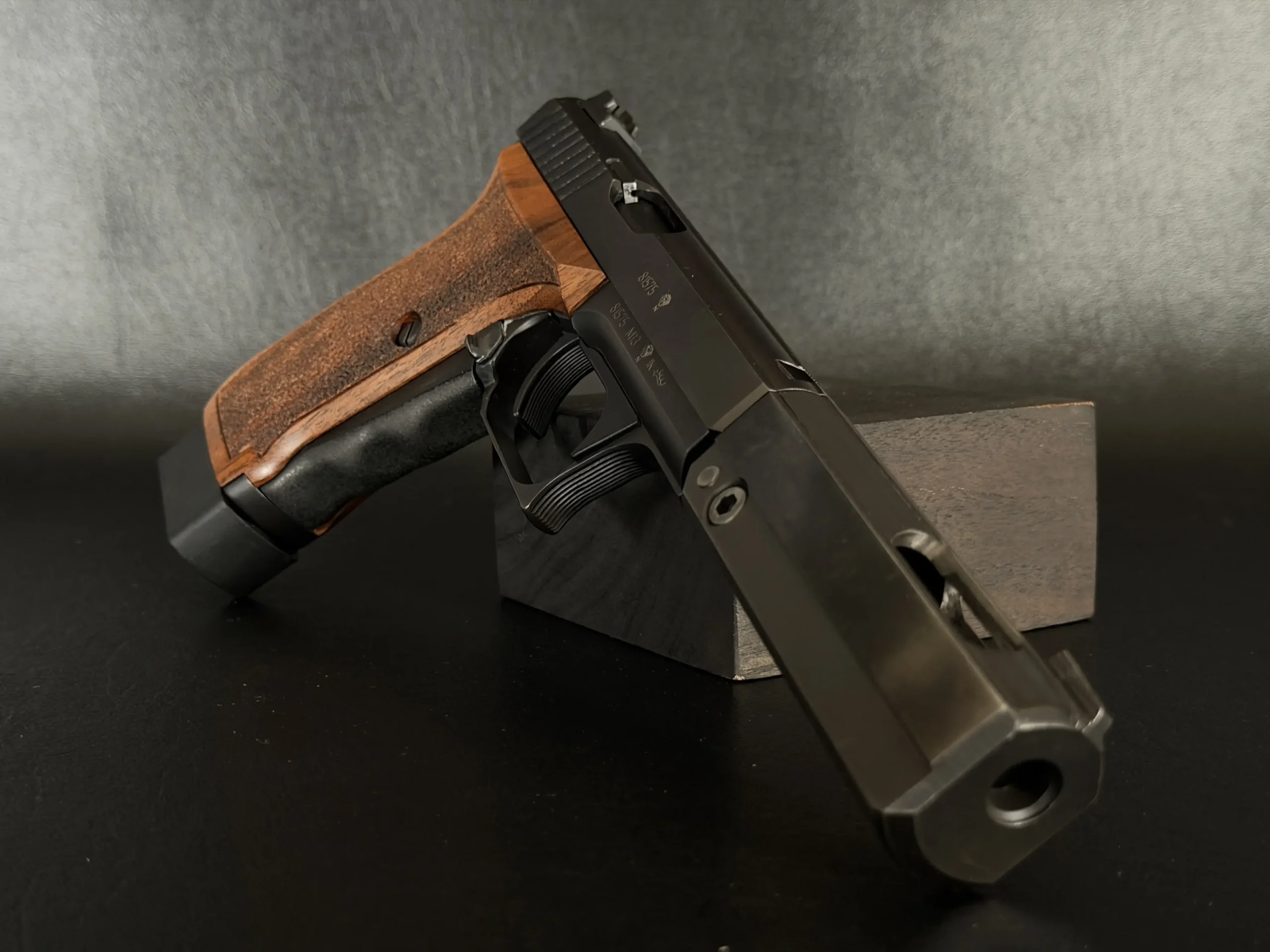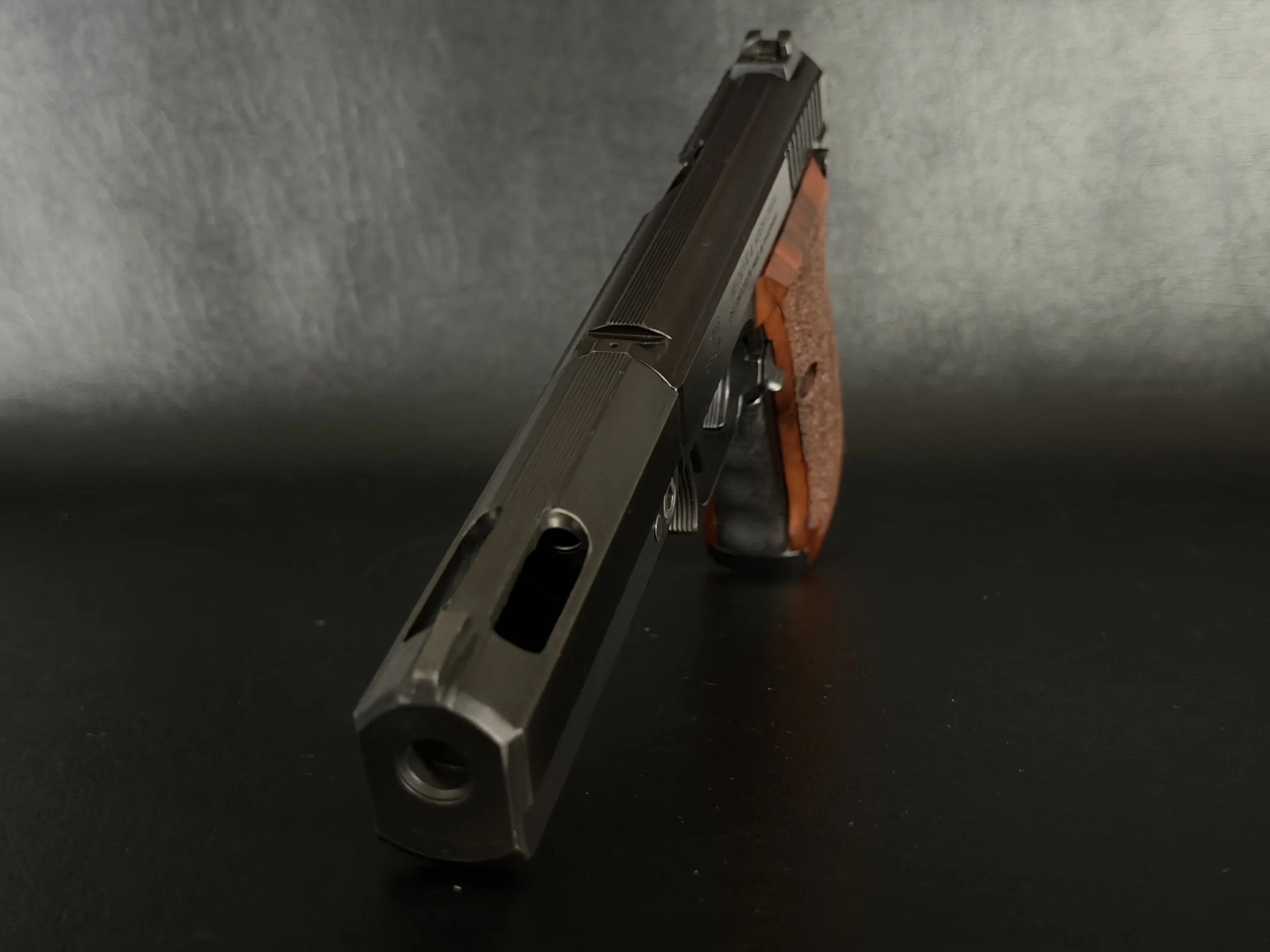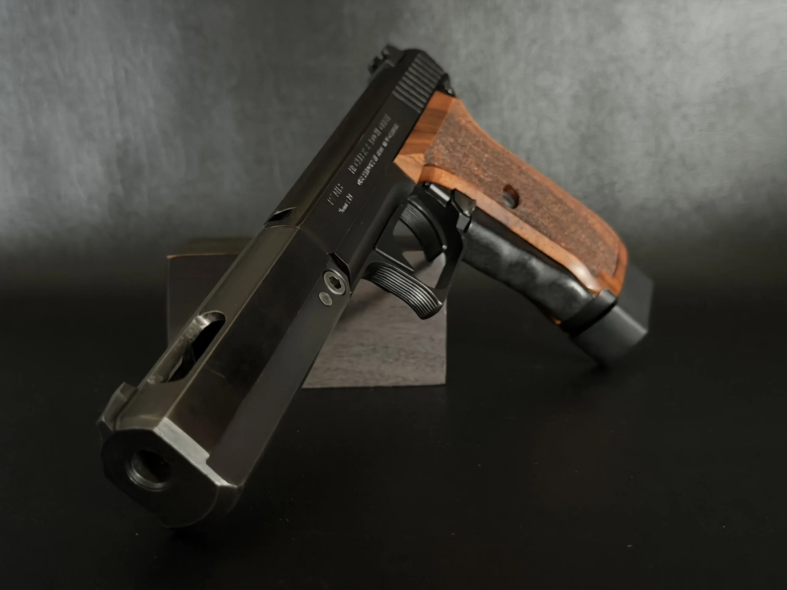 Chambered in 9mm, this long-slide configuration brings the P7’s famous gas-delayed blowback system into a completely different balance profile. The additional slide length gives the pistol a stretched, almost monolithic silhouette, enhancing sight radius, smoothing recoil impulse, and adding a sense of subdued authority. Paired with the factory compensator integrated at the end of the barrel, the pistol feels uniquely planted, redirecting gas forward to reduce muzzle rise and give each shot that tuned, match-grade flatness competitors dream of.