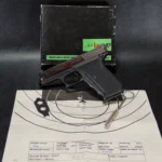 This particular example still has everything that makes collectors lean in a little closer: the original factory box, a pair of magazines, the PSP manual, and even the factory test target it was grouped with. It’s all here, and it all points to a firearm that’s not just rare, but remarkably well-preserved.