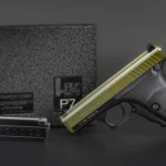 The Heckler & Koch P7G, featuring a black frame and an OD green cerakoted slide, is an exceptionally rare firearm. Its unique color combination make it highly sought after by collectors and firearm enthusiasts.