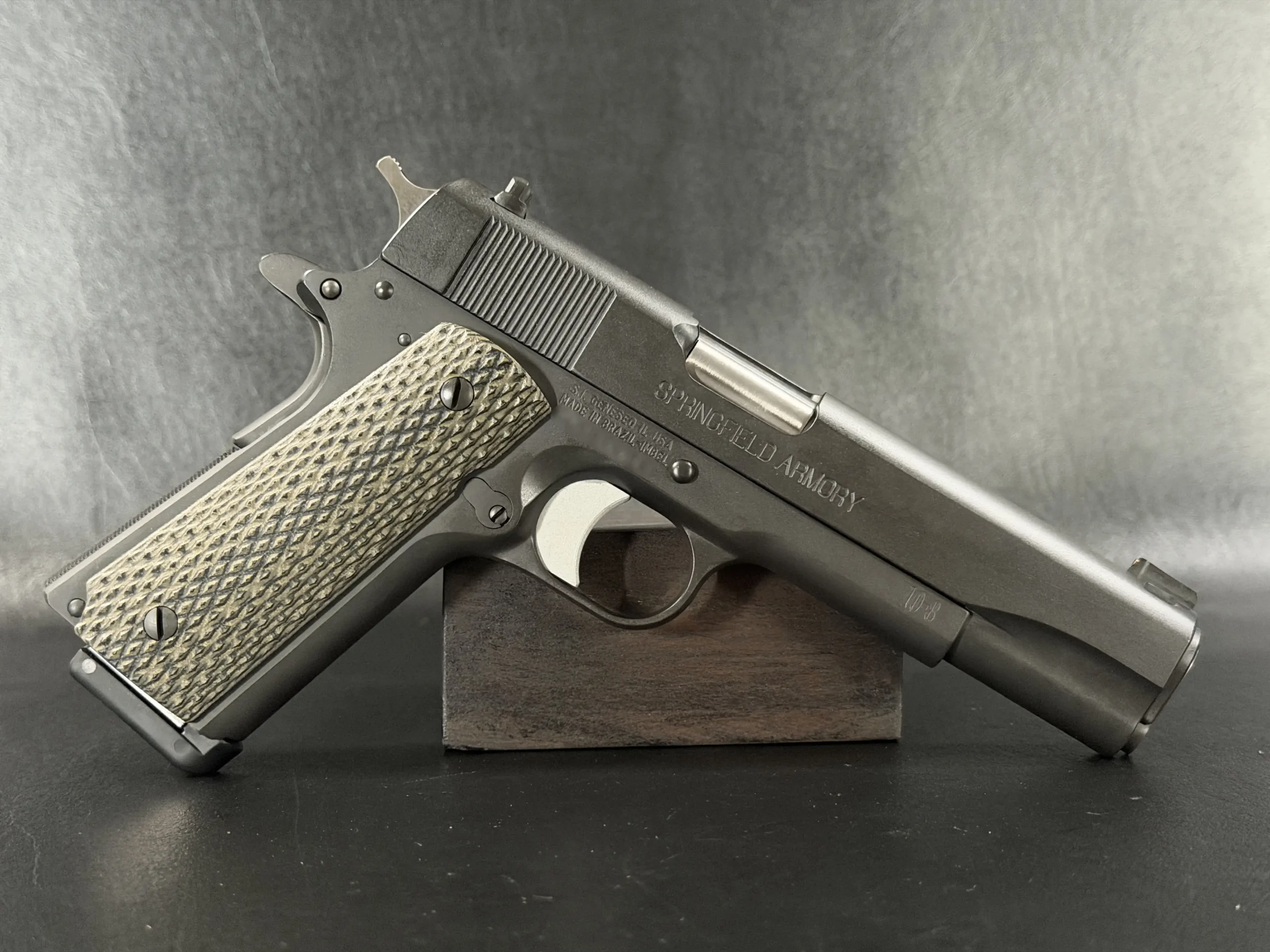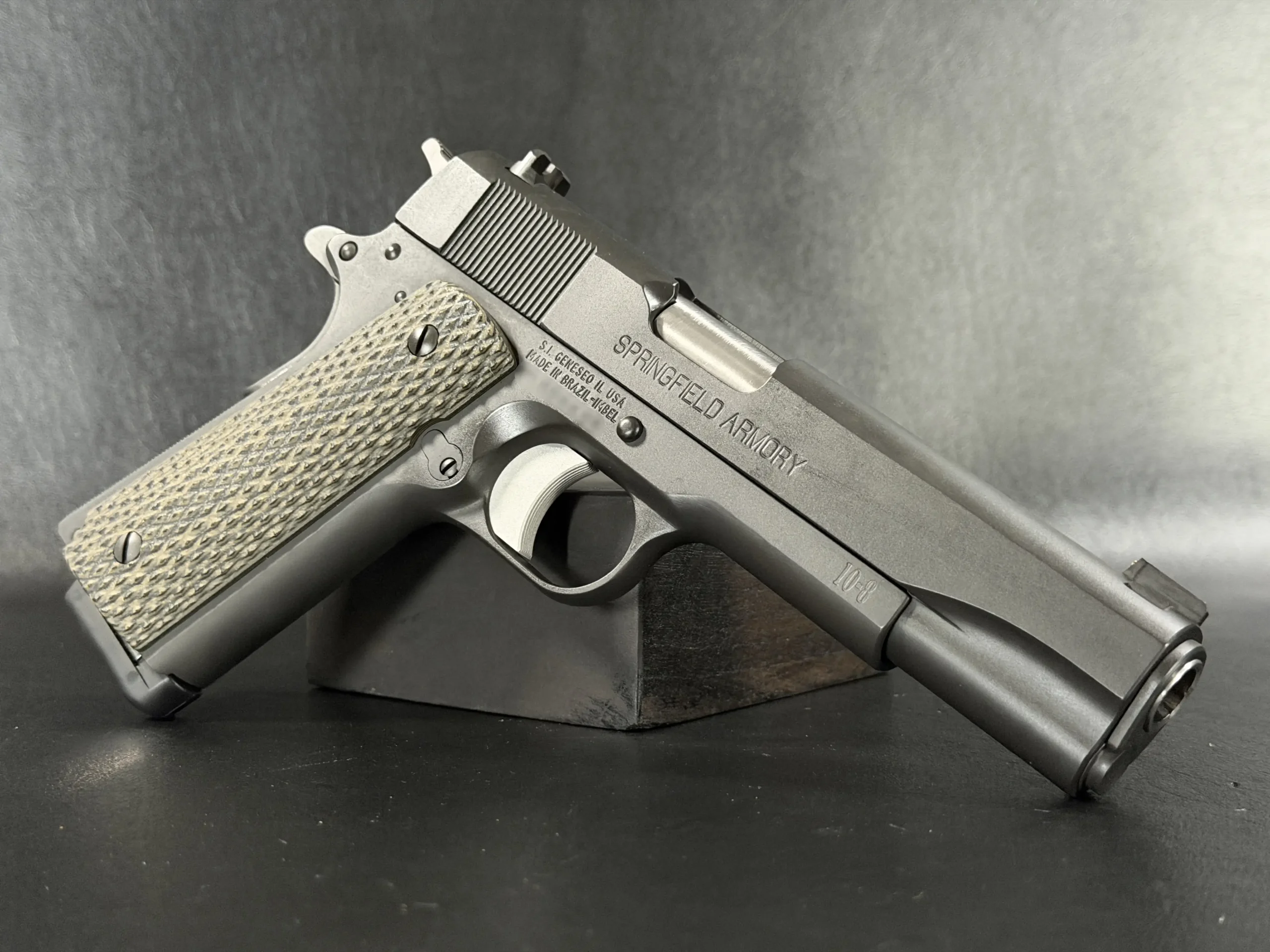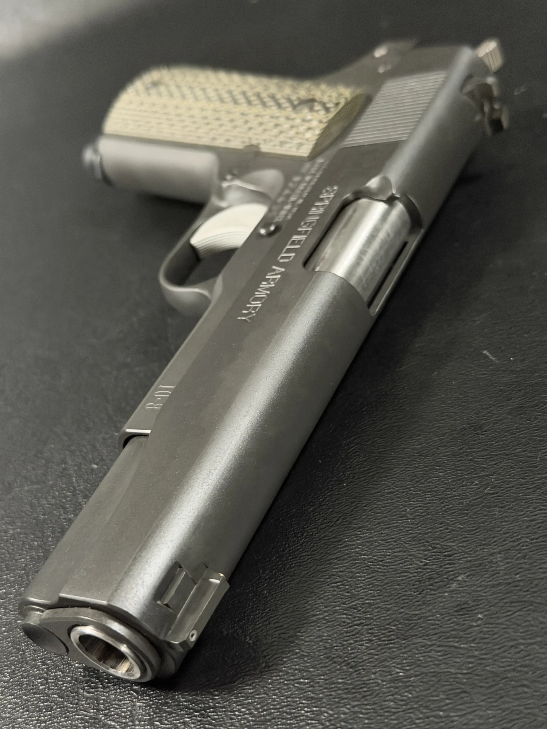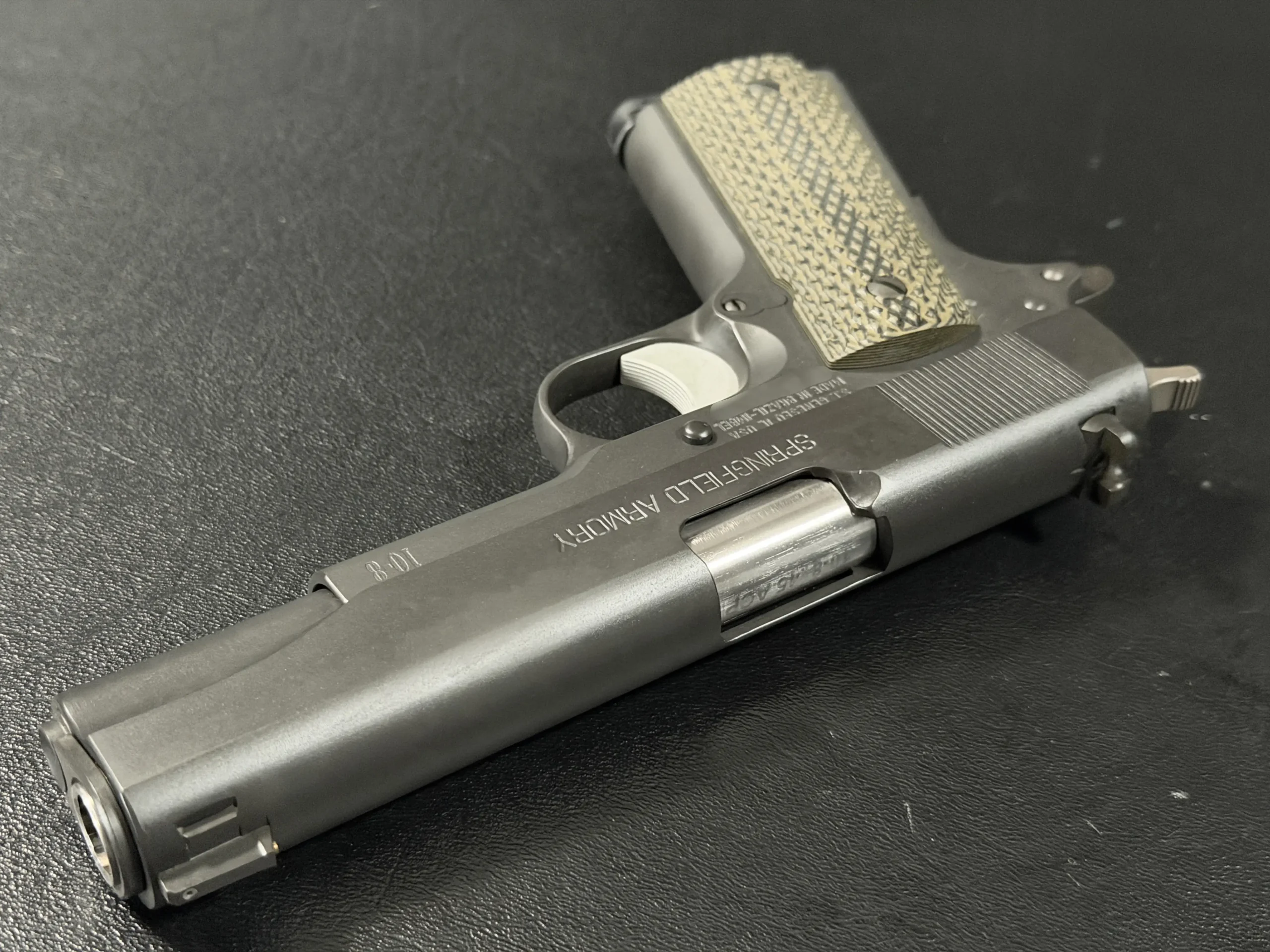 At its core is a Springfield Armory WWII-spec base, finished in a matte manganese phosphate that gives the pistol a subdued, almost understated presence. It doesn’t try to impress; it simply does.