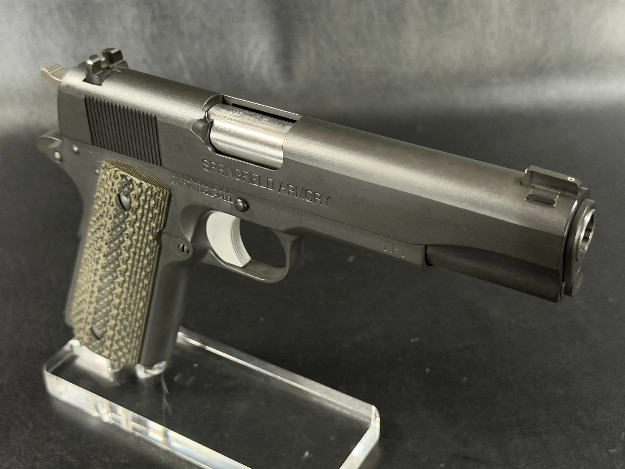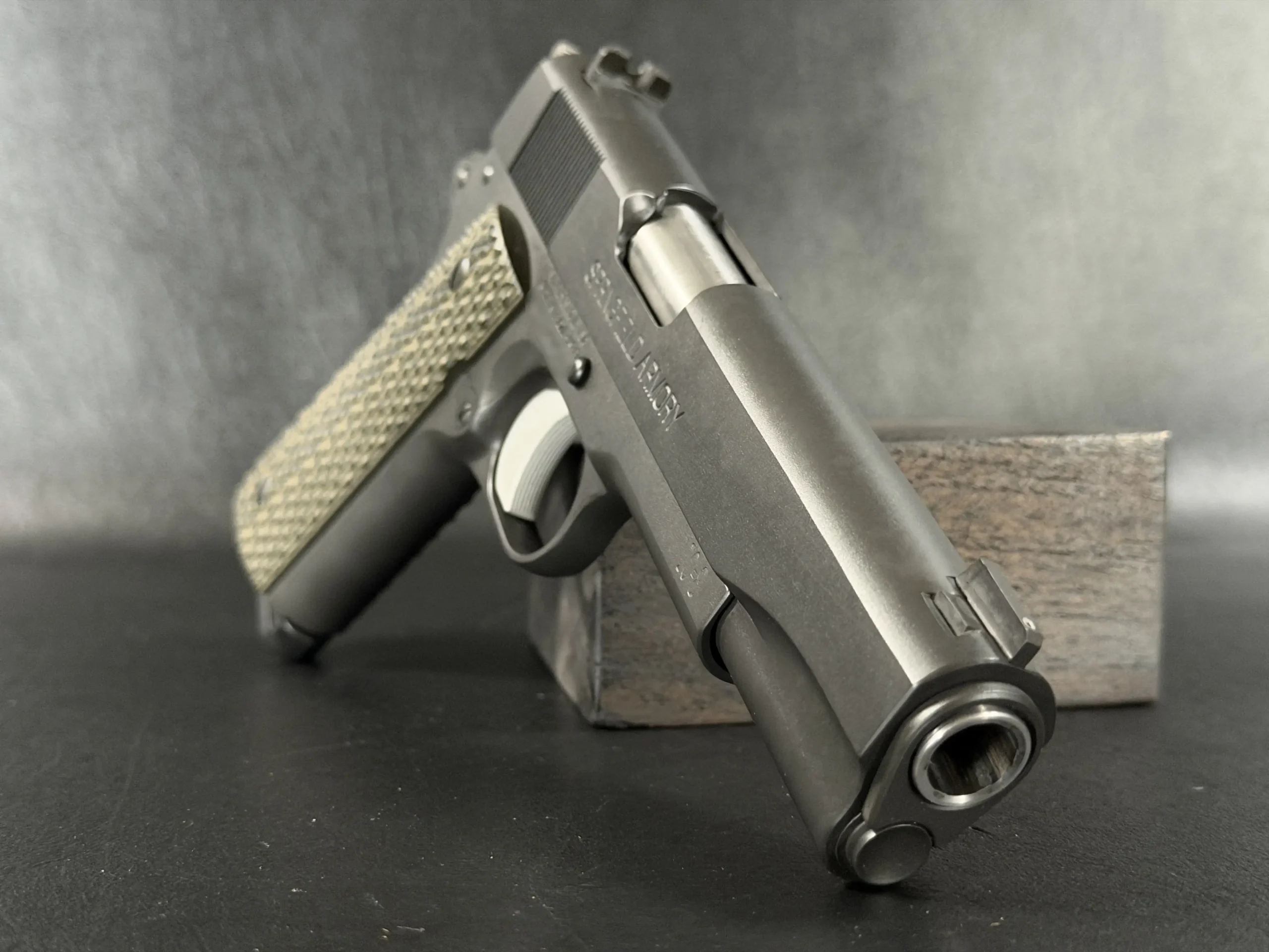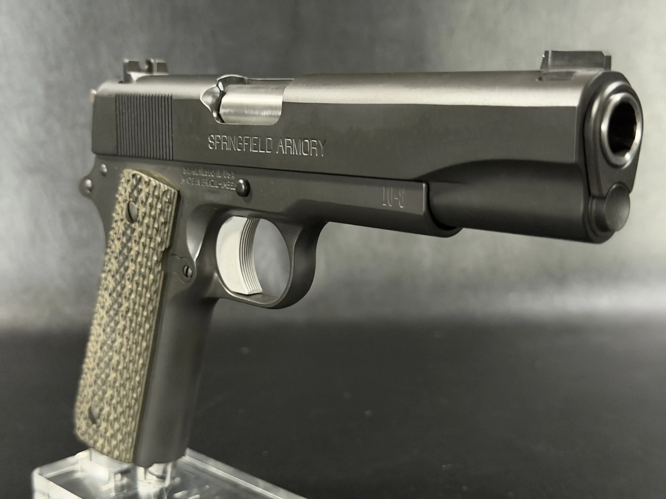 At its core is a Springfield Armory WWII-spec base, finished in a matte manganese phosphate that gives the pistol a subdued, almost understated presence. It doesn’t try to impress; it simply does.