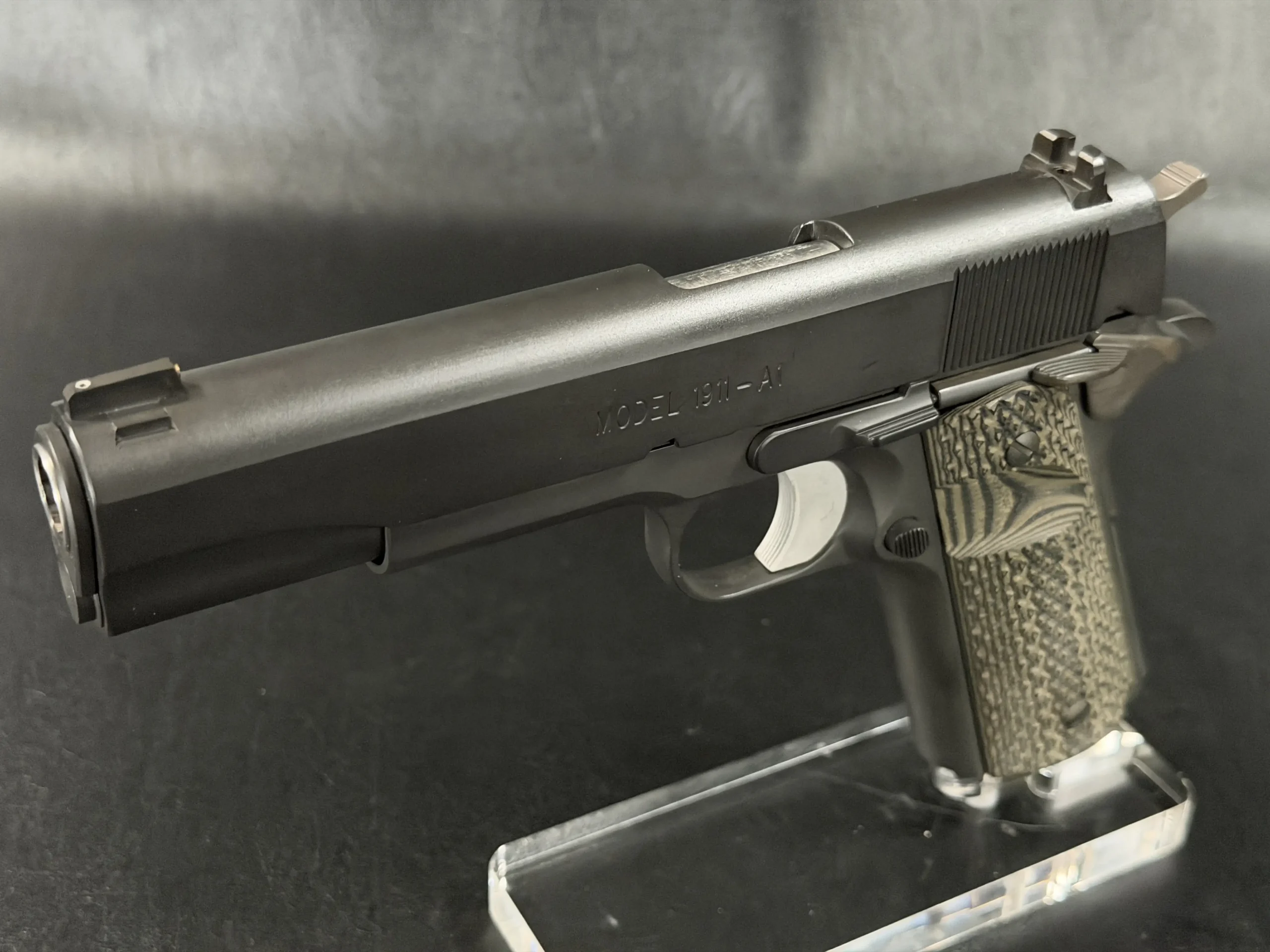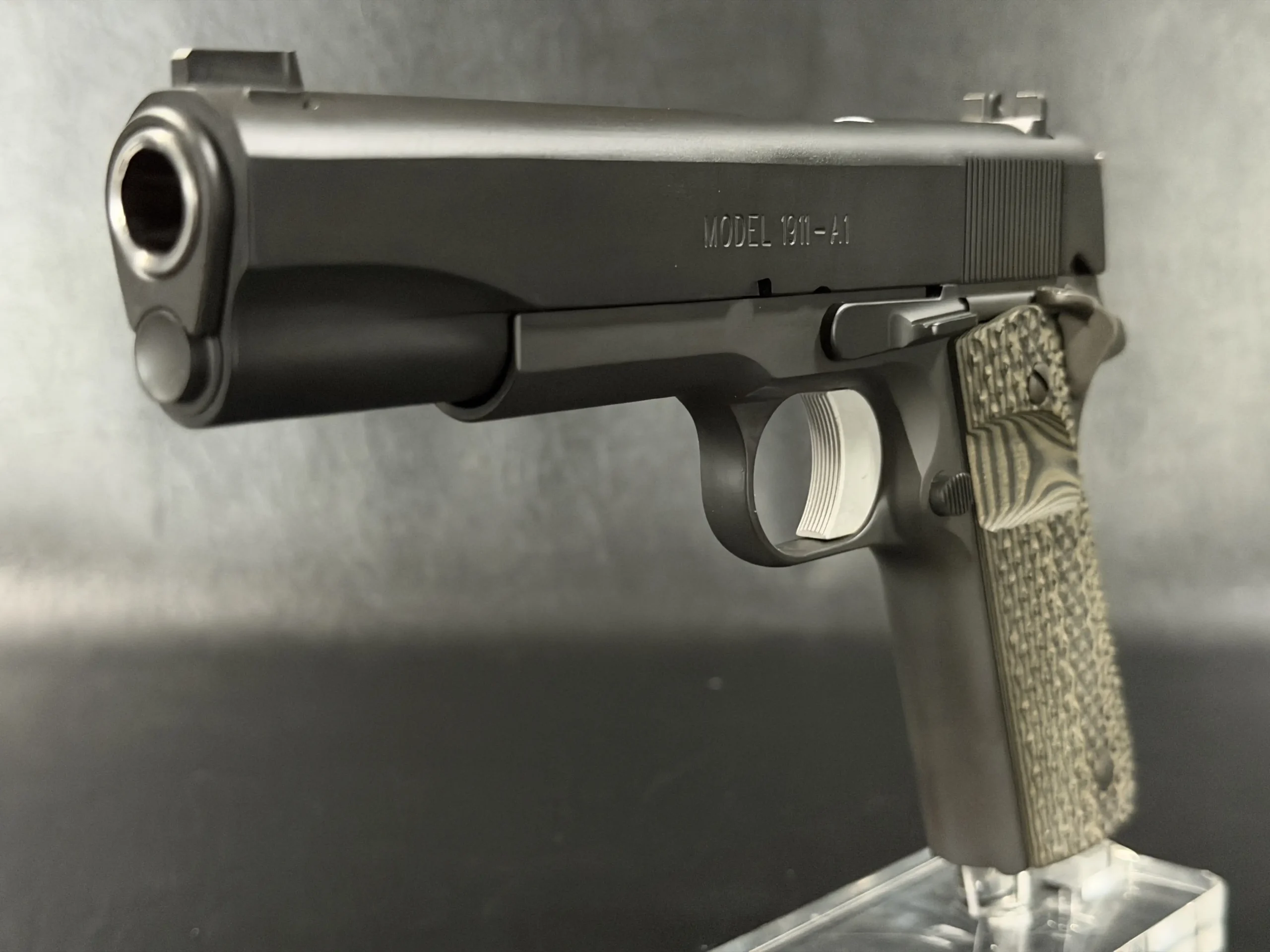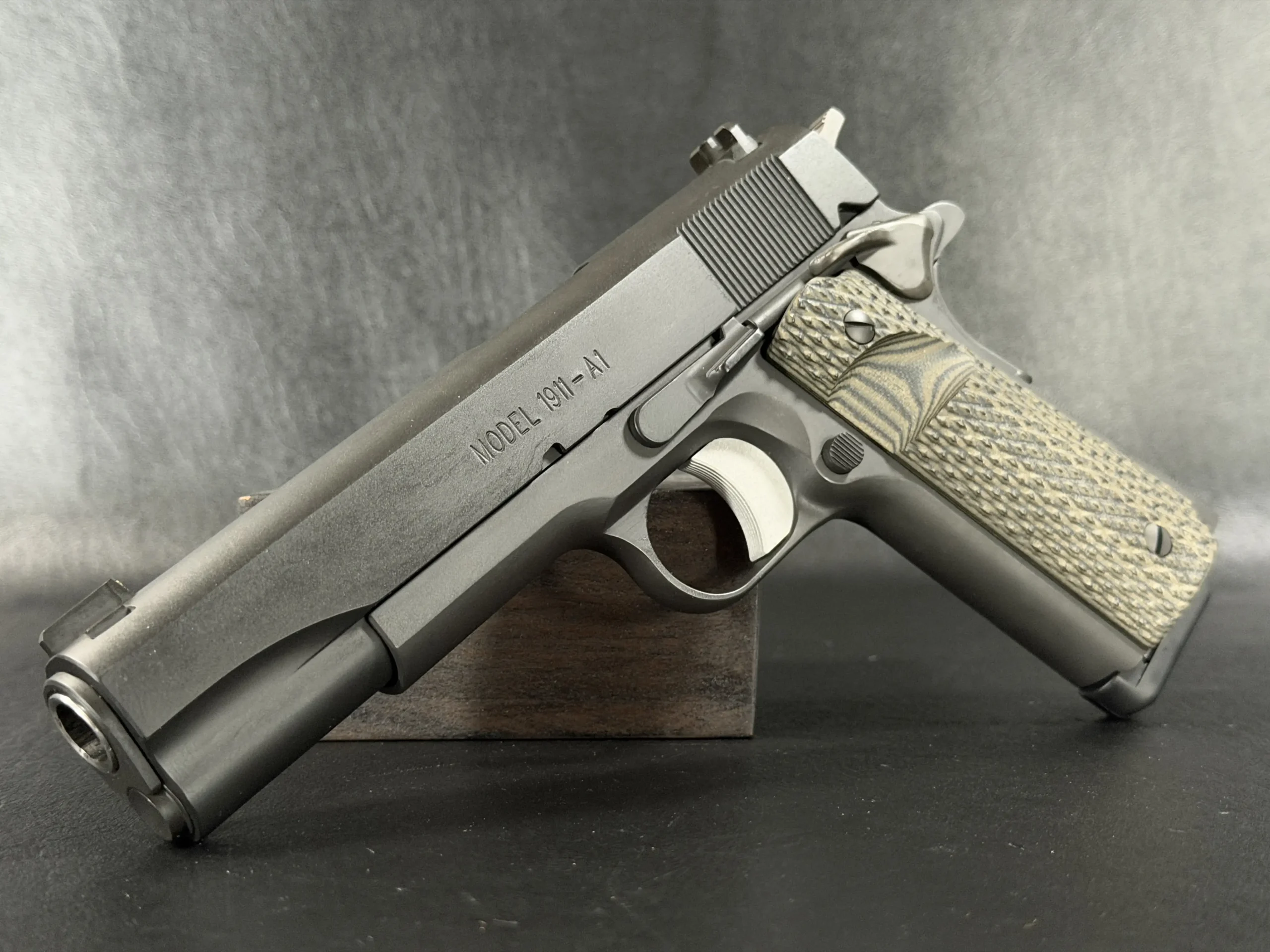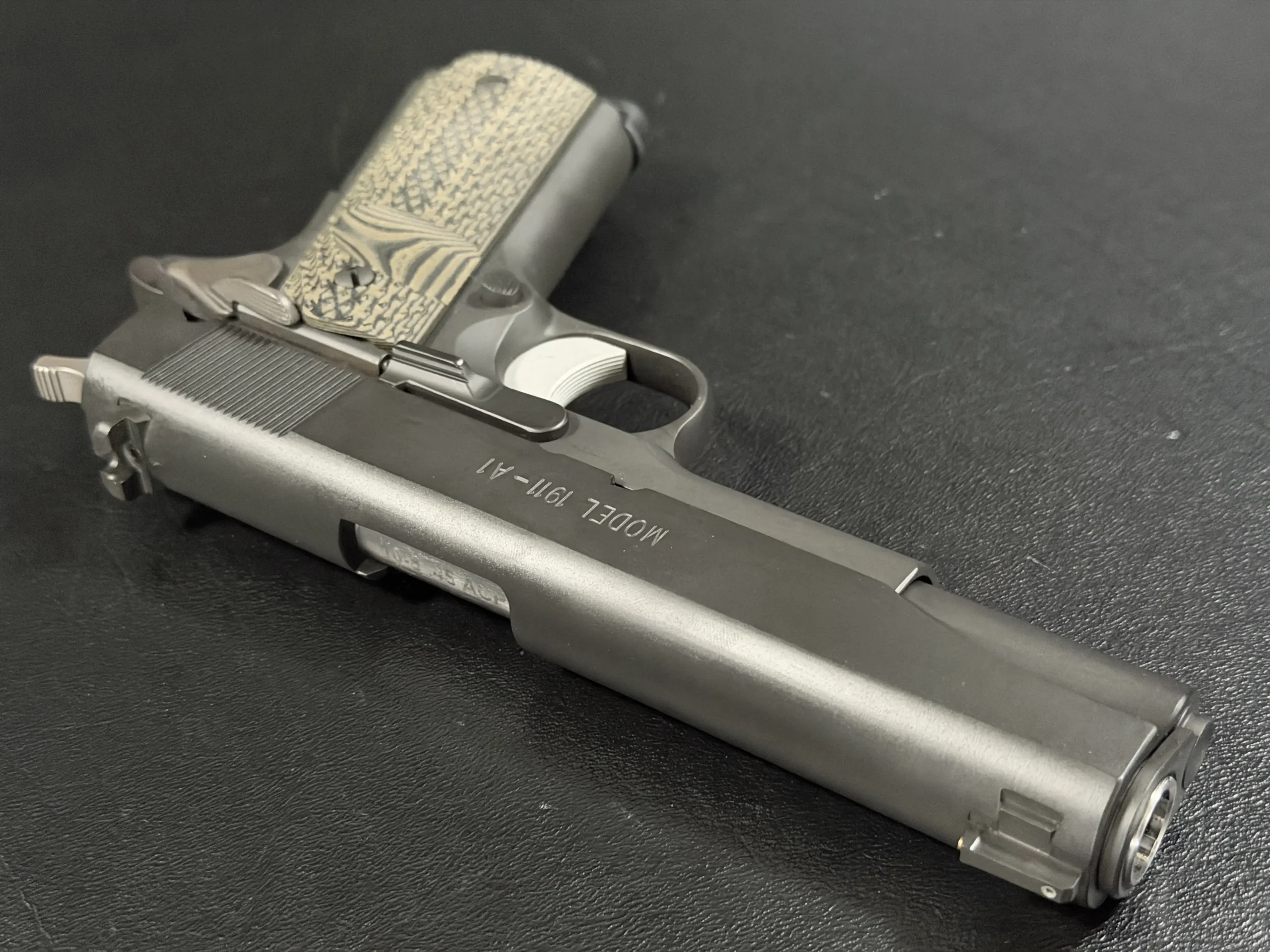 At its core is a Springfield Armory WWII-spec base, finished in a matte manganese phosphate that gives the pistol a subdued, almost understated presence. It doesn’t try to impress; it simply does.