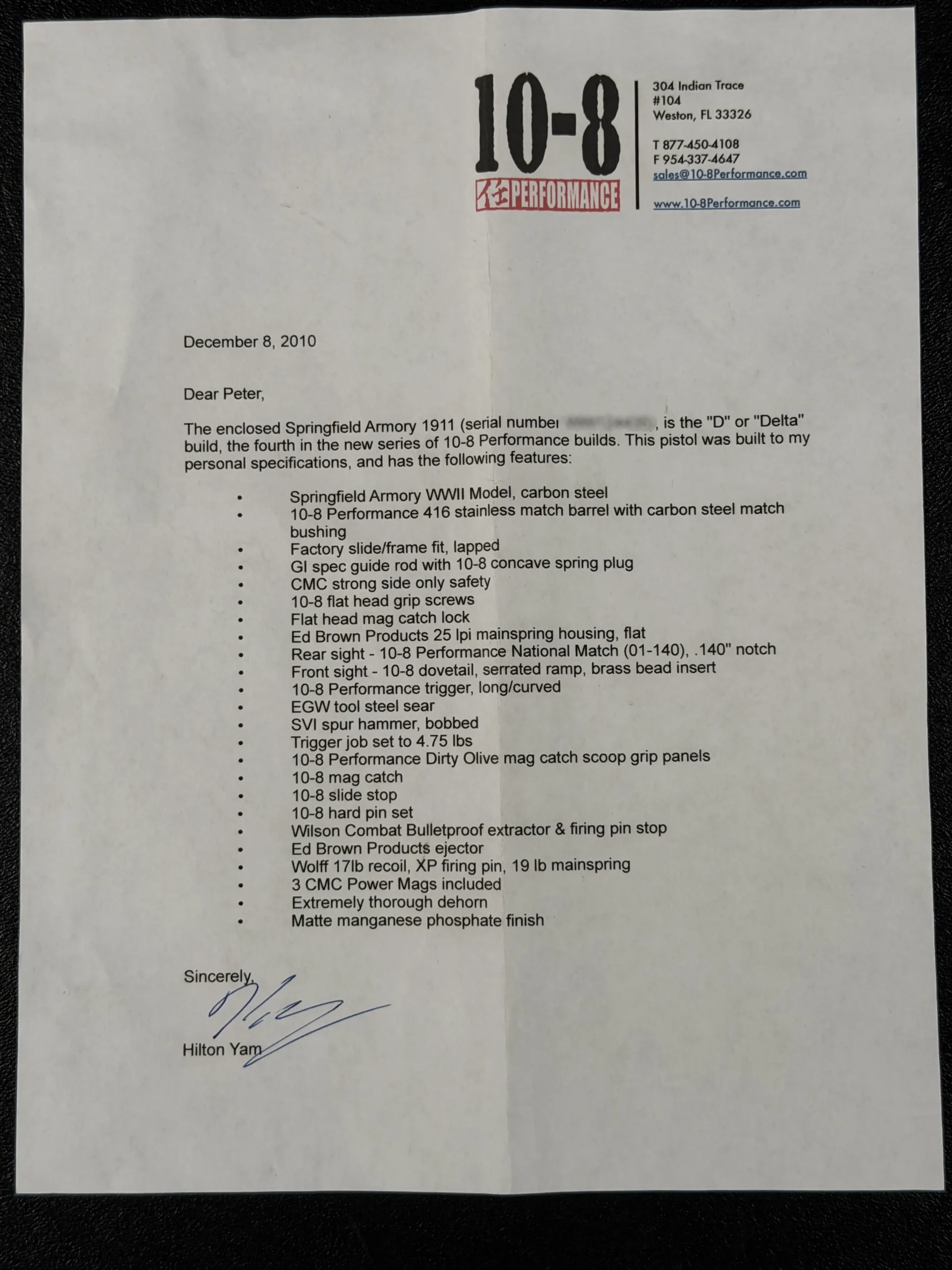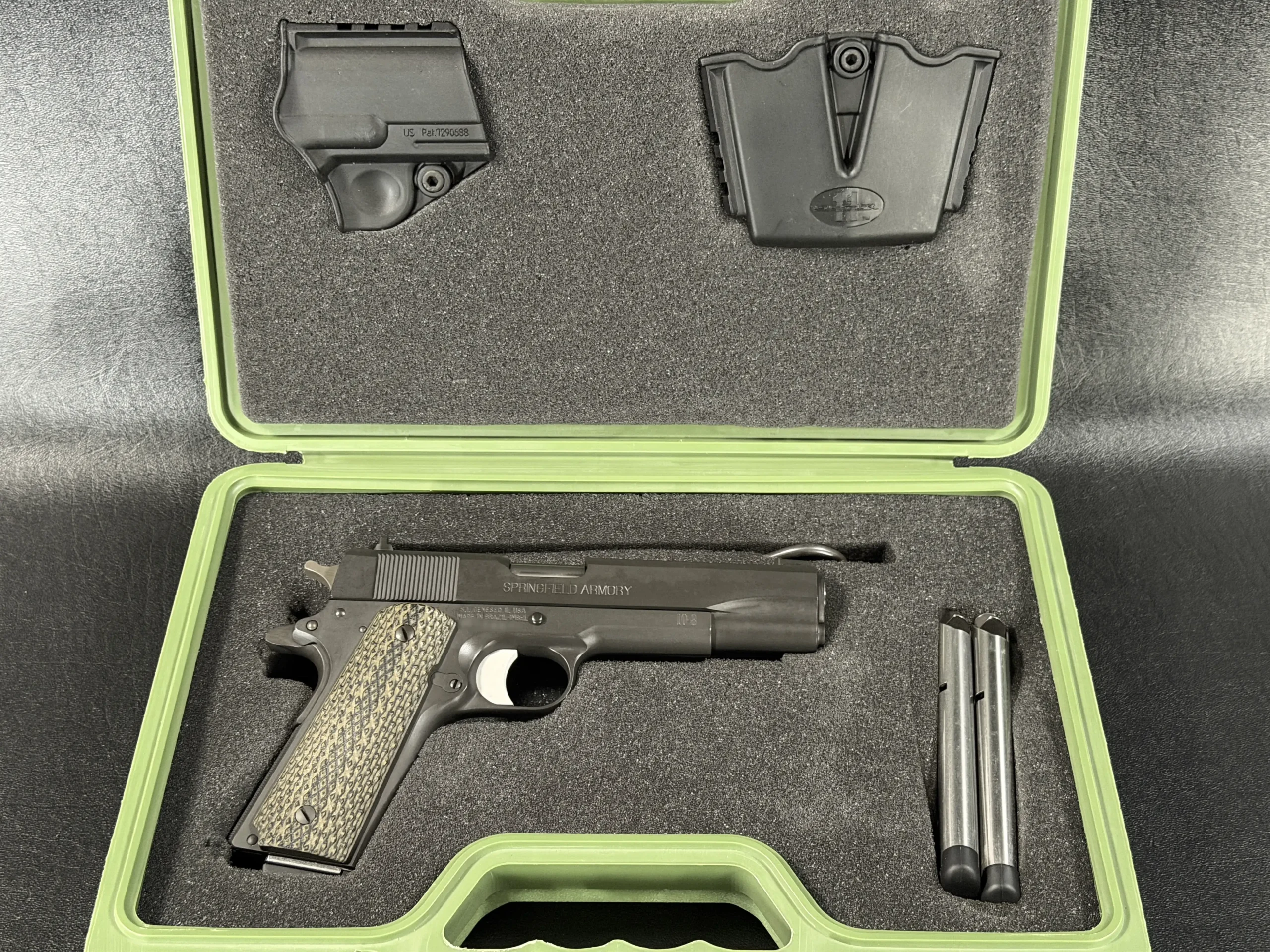 Accompanied by its original green case, holster, and documentation signed by Hilton Yam, this example carries both provenance and intent. It isn’t just a custom build, it’s a direct expression of one of the most respected minds in modern 1911 development.