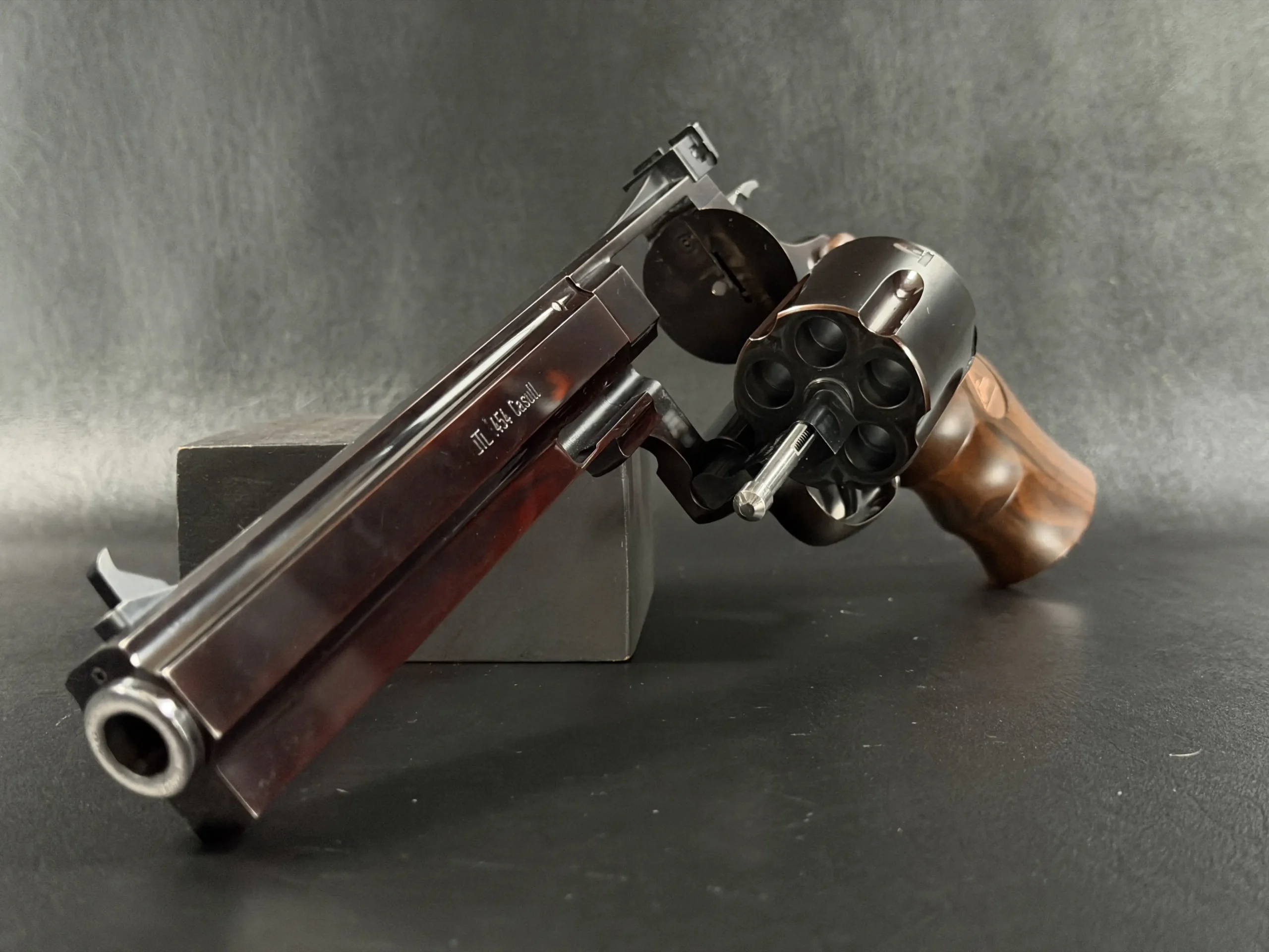 Designed around the legendary JTL large-frame platform, this revolver harnesses the raw power of the .545 Casull cartridge while maintaining the exceptional balance, recoil control, and mechanical smoothness for which Janz is known. Cylinder timing, trigger pull, and rotational symmetry are executed with unmatched precision, hallmarks of Janz’s philosophy that a revolver should feel as exacting as a Swiss timepiece and as enduring as a sculpture in steel.