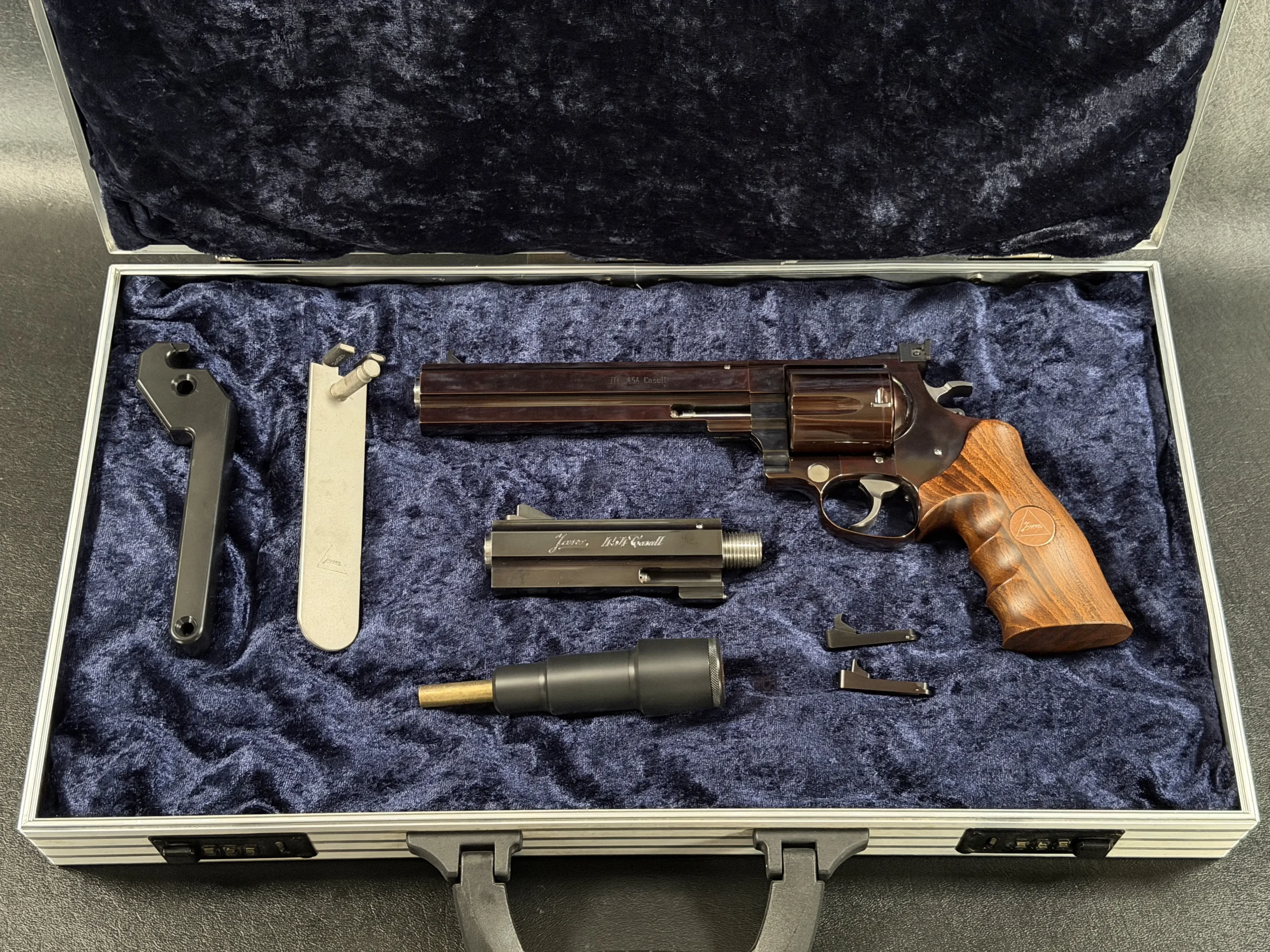 This extraordinary Janz EMS JTL revolver set represents the pinnacle of German engineering, an ultra-rare, purpose-built system chambered in the formidable .545 Casull. Built with the meticulous hand-fitting and flawless execution that define Janz’s top-tier EMS series, this example stands apart not only for its caliber and configuration but for the complete modular ensemble that accompanies it.