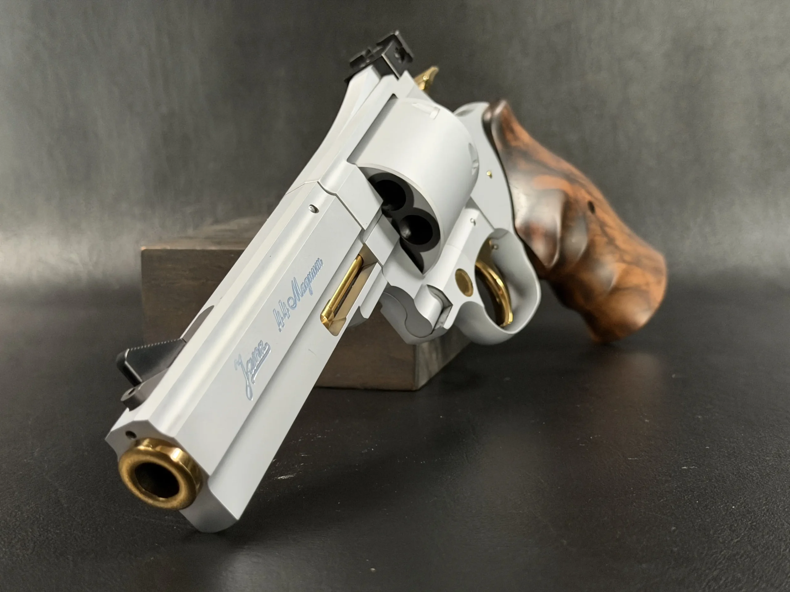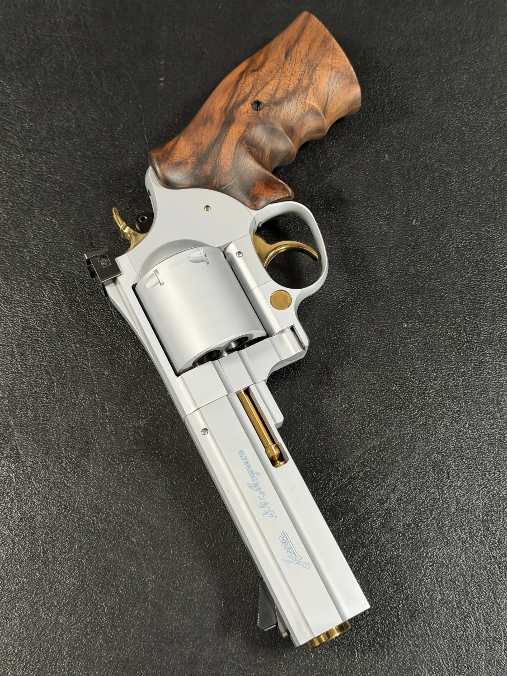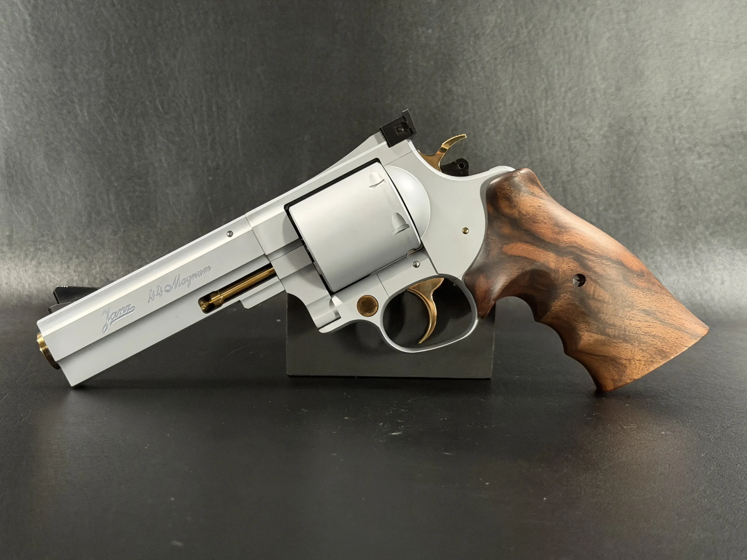 This set includes both .44 Magnum and .357 Magnum configurations, each with its own dedicated, matching barrel and cylinder. The swap-over process is part of the magic: Janz designed the system so each component locks in with a level of tolerance that borders on obsessive. Included in the case are the factory tools needed to perform the caliber conversions, each piece engineered with the same uncompromising quality as the revolver itself.