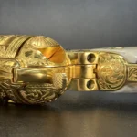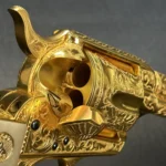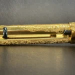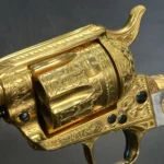 Chambered in classic .45 Colt and built with that iconic 4 ¾-inch barrel, this six-shot beauty doesn’t just nod to American history—it lives in it. What sets it apart, though, is the breathtaking Class D vine-style engraving. It winds across the frame and cylinder like ivy on an old iron gate, each scroll accented by punch-dot shading and carefully etched borders. Look closely, and you’ll find a sunburst pattern radiating from the loading gate—one of those small, deliberate touches that rewards a second glance. And etched into the backstrap, the name says it all: PEACEMAKER.