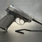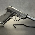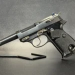 This P38 is an exceptional example of a refinished P.38 pistol, showcasing the craftsmanship of legendary gunsmith John V. Martz. The left side of the gun is stamped with “P.38, ac 41,” indicating its 1941 production year at the Walther factory. Matching serial numbers are found on the receiver, frame, and barrel, reflecting its original assembly integrity. Additionally, the left side bears the “JVM 18” stamp, signifying Martz’s 2018 alteration. This unique combination of originality and modification makes this pistol a rare collector’s item.