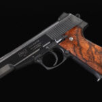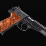 Korriphila HSP 701 is a masterpiece in firearm craftsmanship. This .45 ACP handgun is distinguished by its stunning blued finish that gives it a classic and refined look. The inclusion of wood grips adds a touch of elegance and warmth to its appearance.