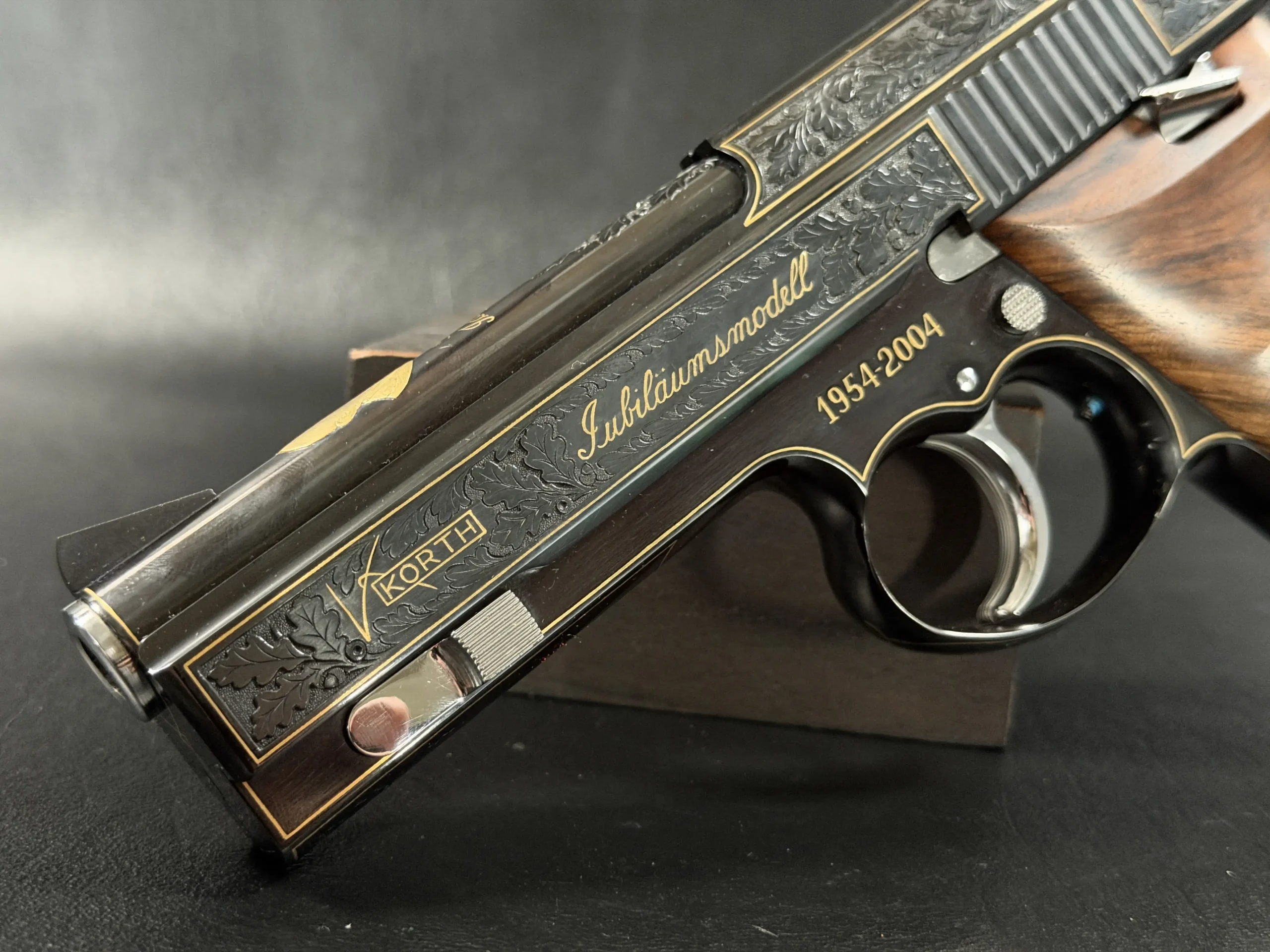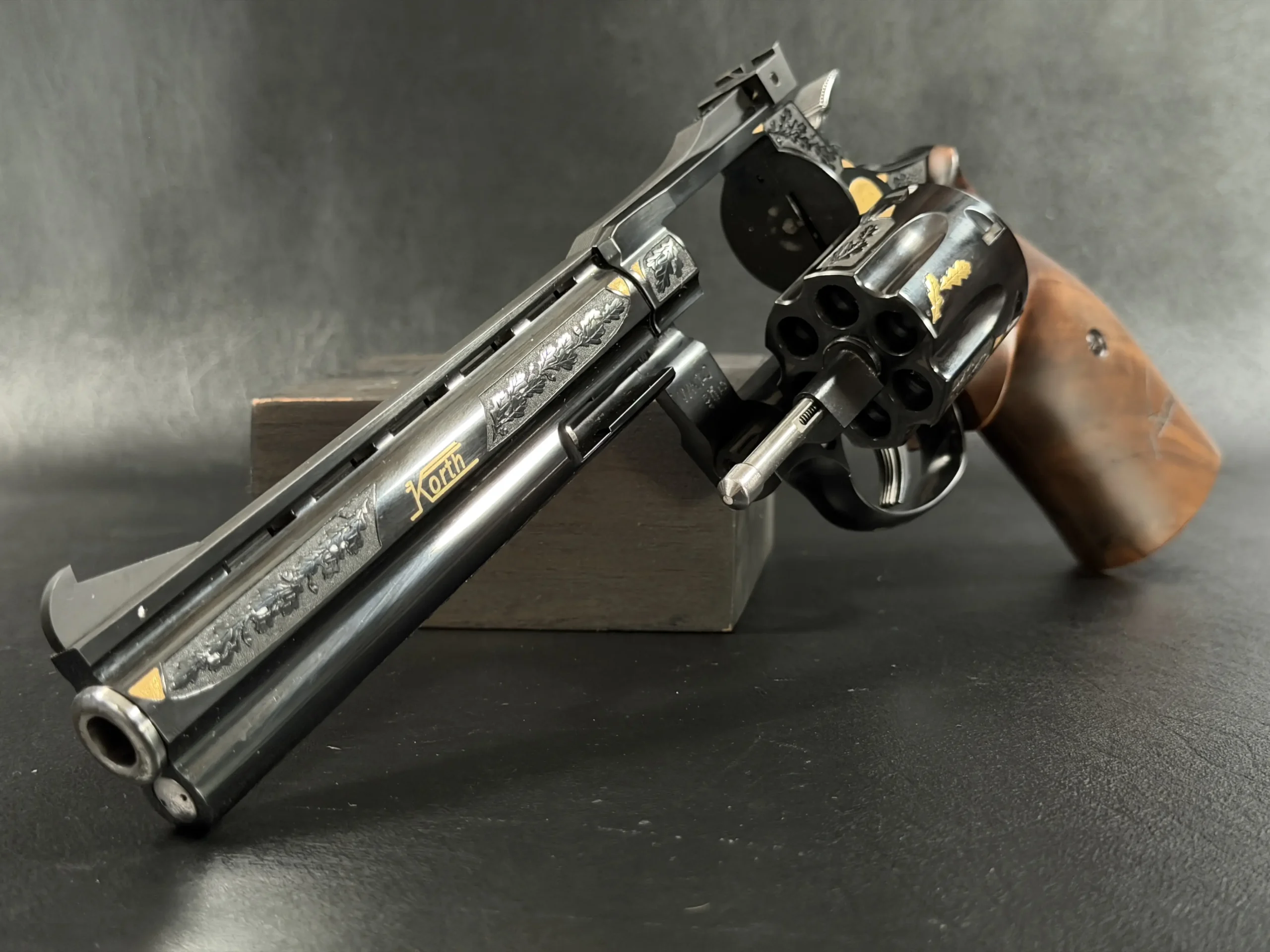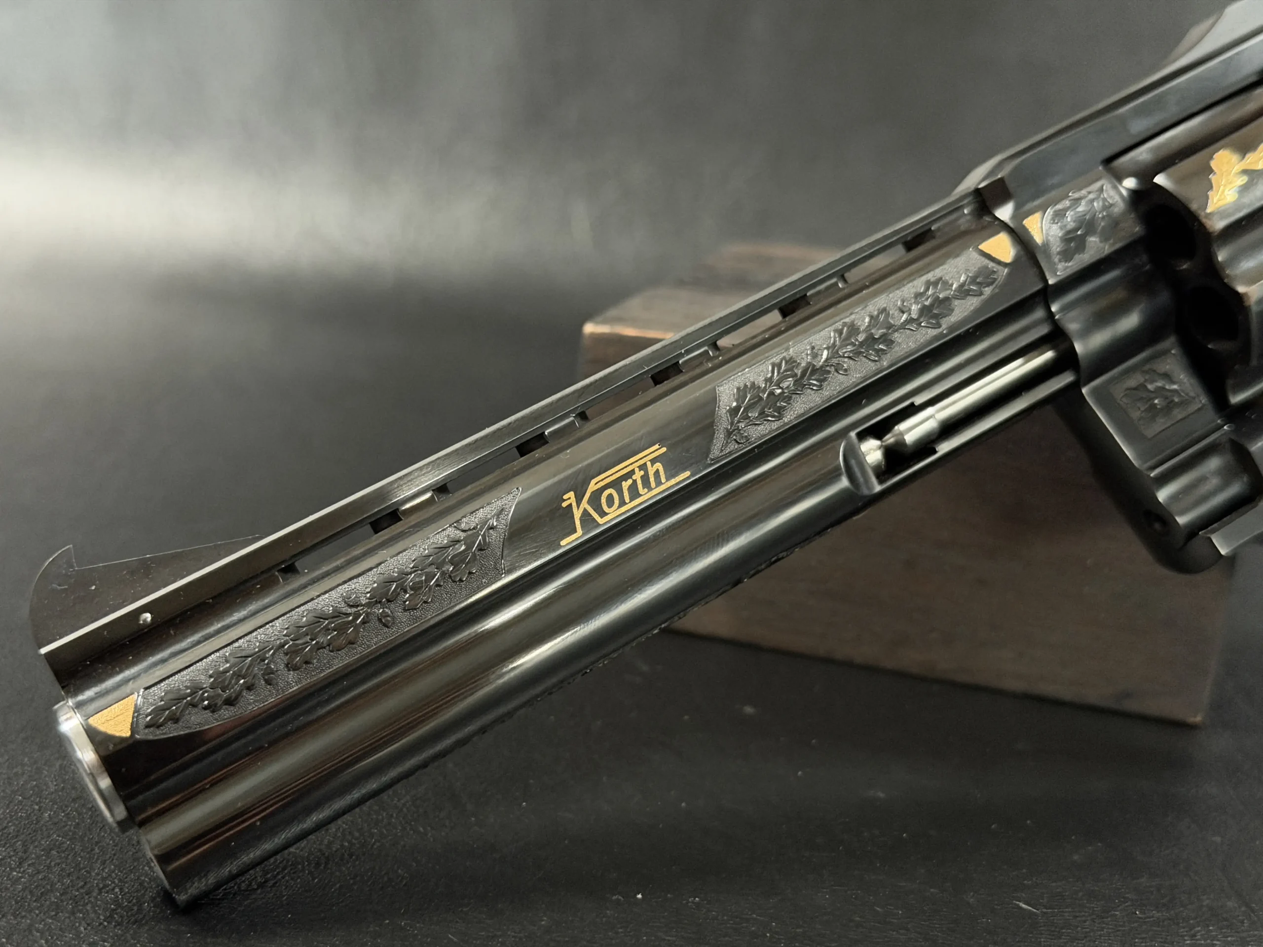 The semi-auto, chambered in 9mm, carries the sleek lines and signature lockwork of Korth’s early semi-automatic designs. The revolver, chambered in .357 Magnum, features Korth’s renowned precision-machined cylinder and impeccably tuned trigger—hallmarks of the brand’s reputation among elite collectors and competitive marksmen.