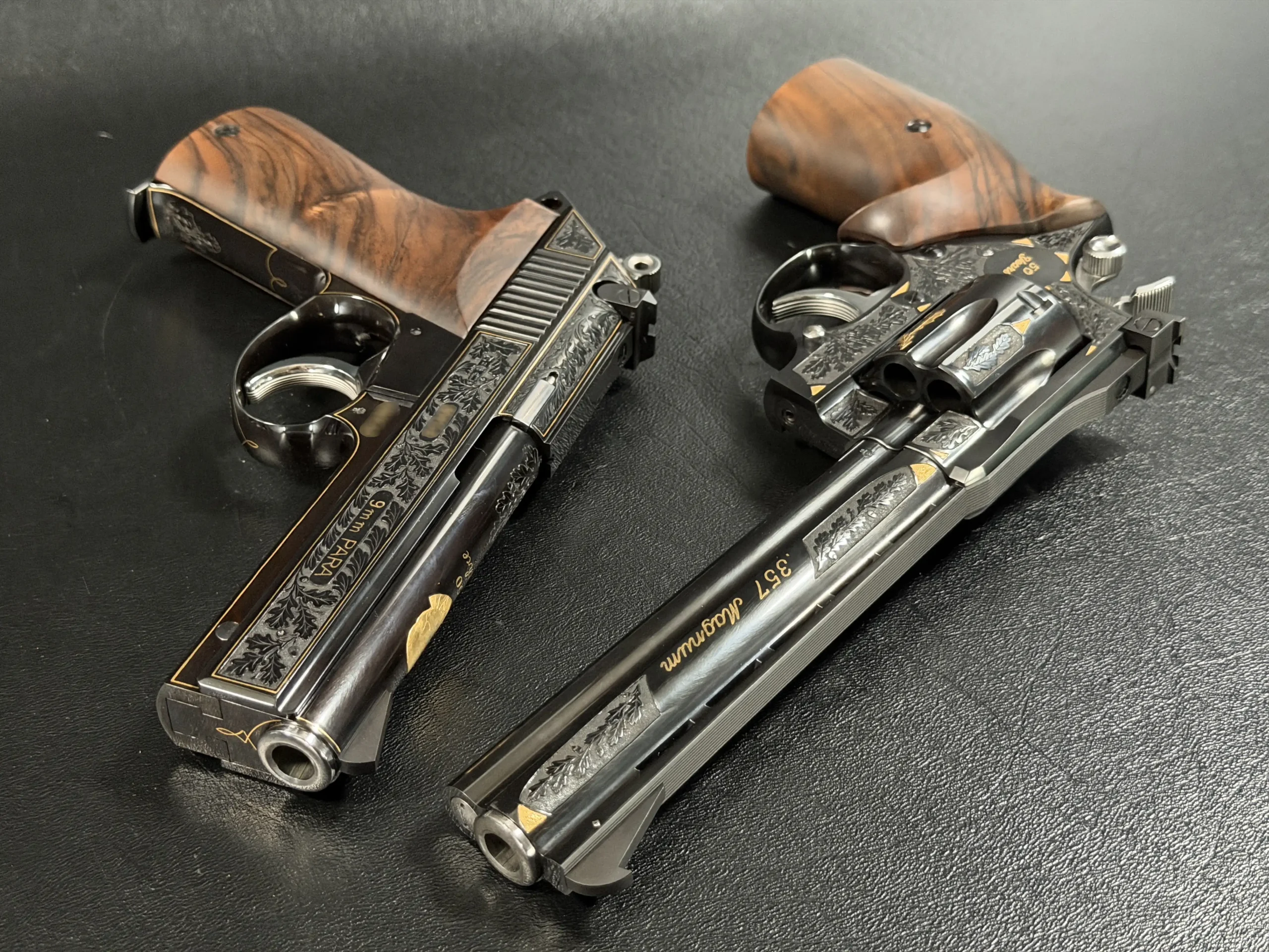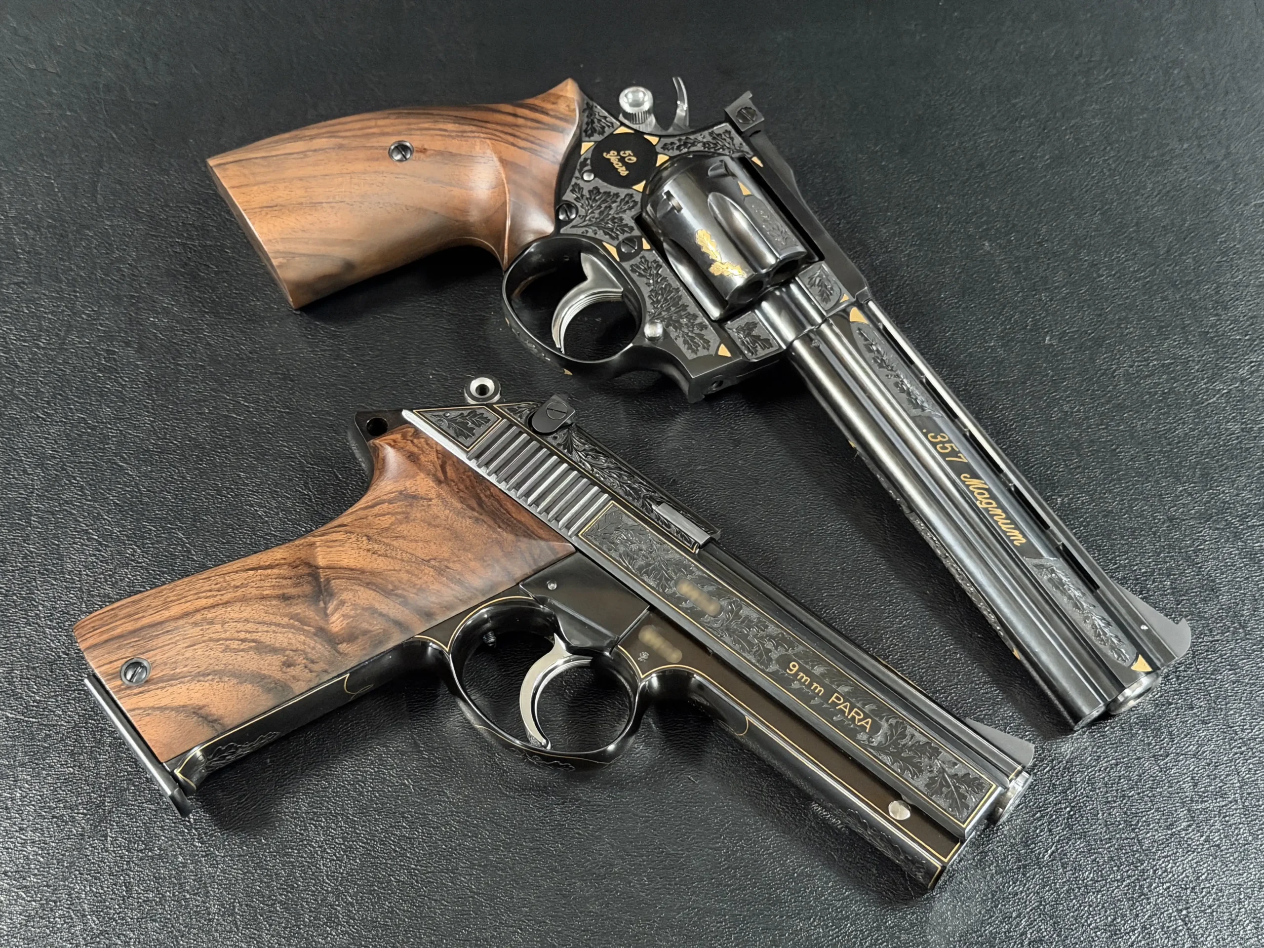 9mm Semi-Automatic & .357 Magnum Revolver | 1 of 5 | Master-Engraved with Gold Inlay