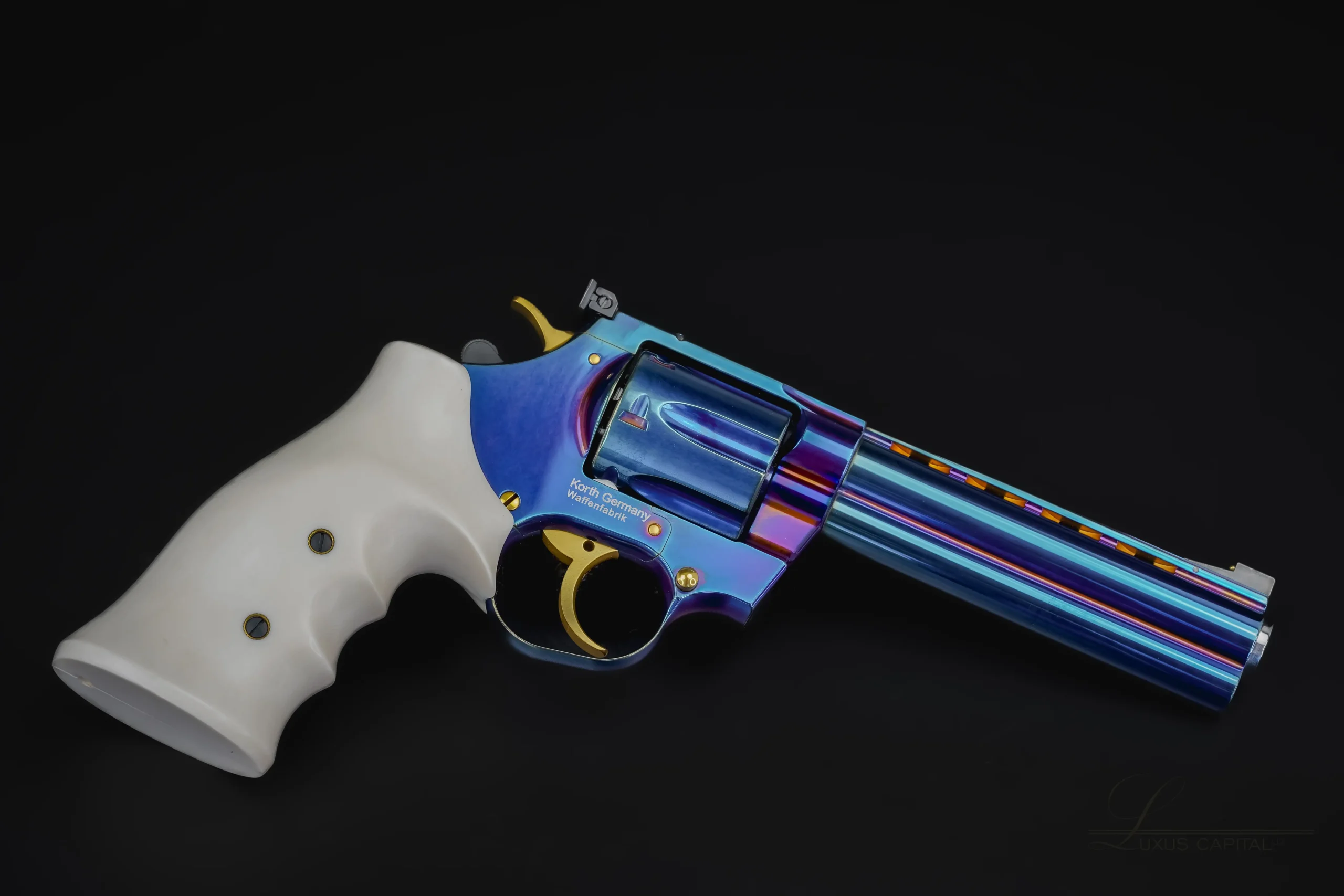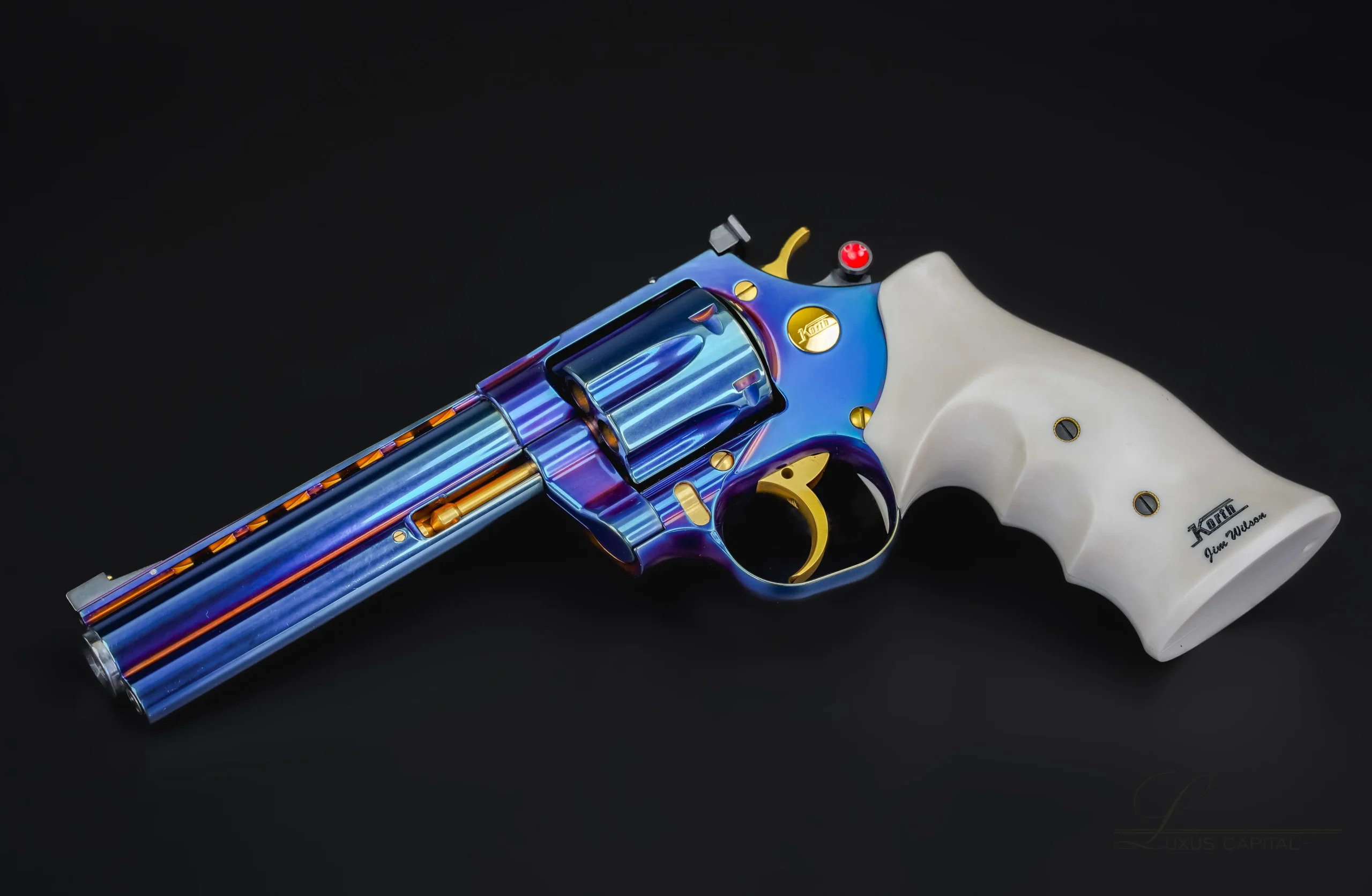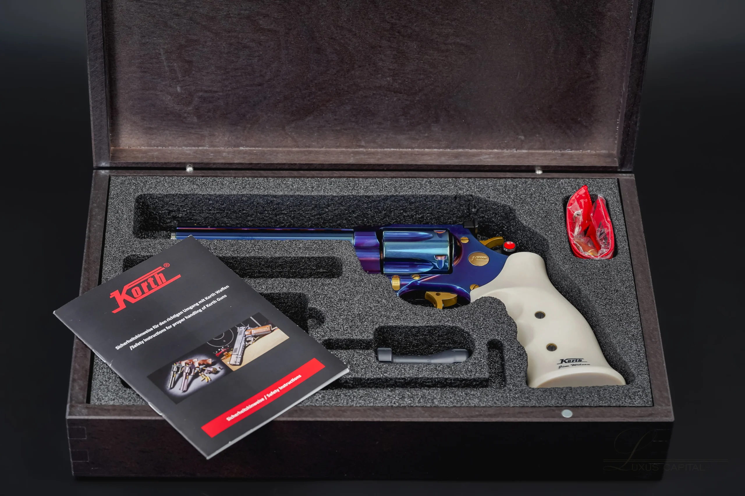 There are revolvers that impress… and then there are revolvers that stop you mid-sentence the moment light hits the steel. This Korth Classic 6” Blue Plasma falls firmly into the second category, a piece where mechanical mastery meets outright visual theater.