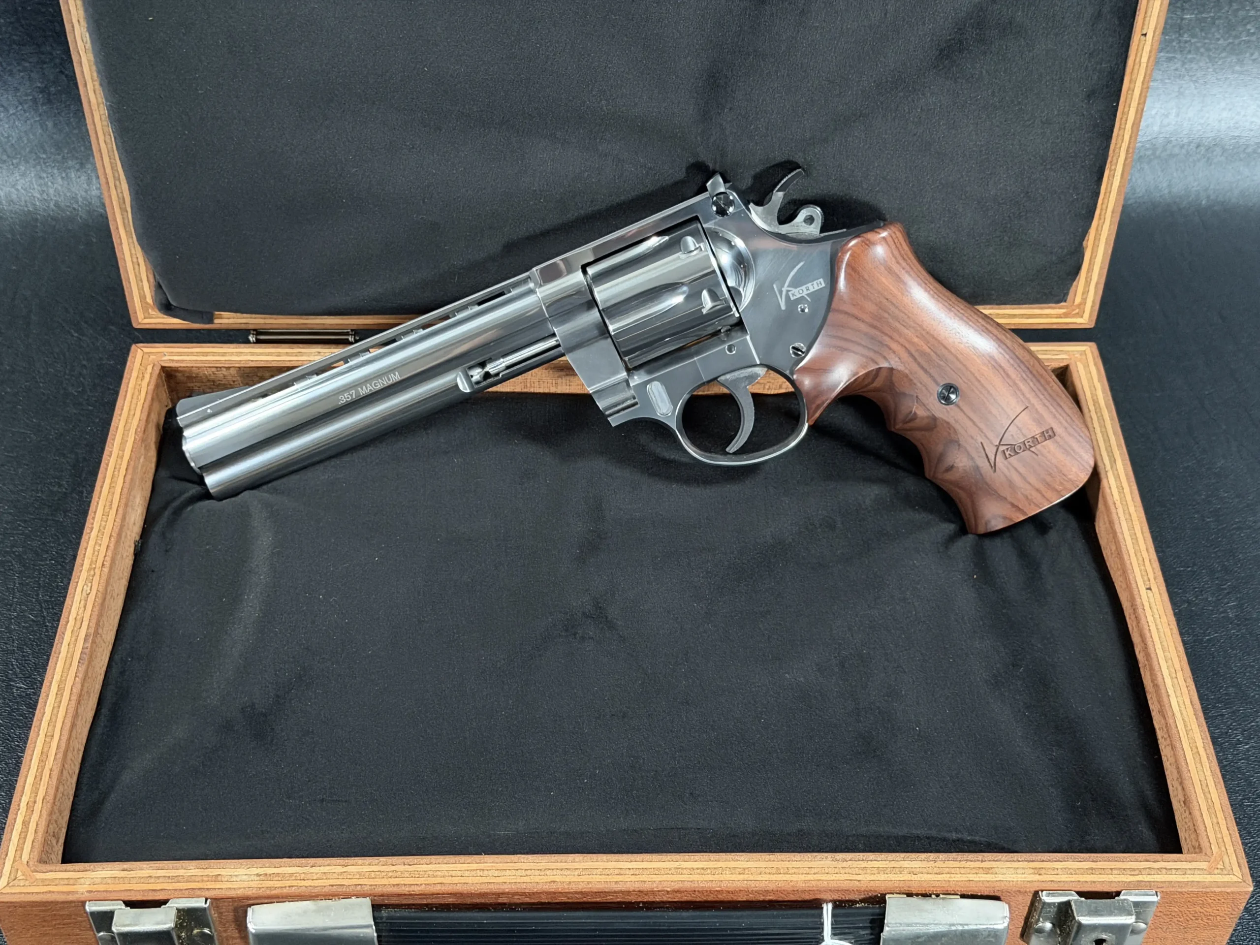 There are production revolvers… and then there are pieces that exist so far outside the norm that seasoned collectors stop mid-sentence when they encounter one. This Korth Combat 6” Plasma Finish – affectionately nicknamed the “Unicorn”, firmly belongs in the latter category.