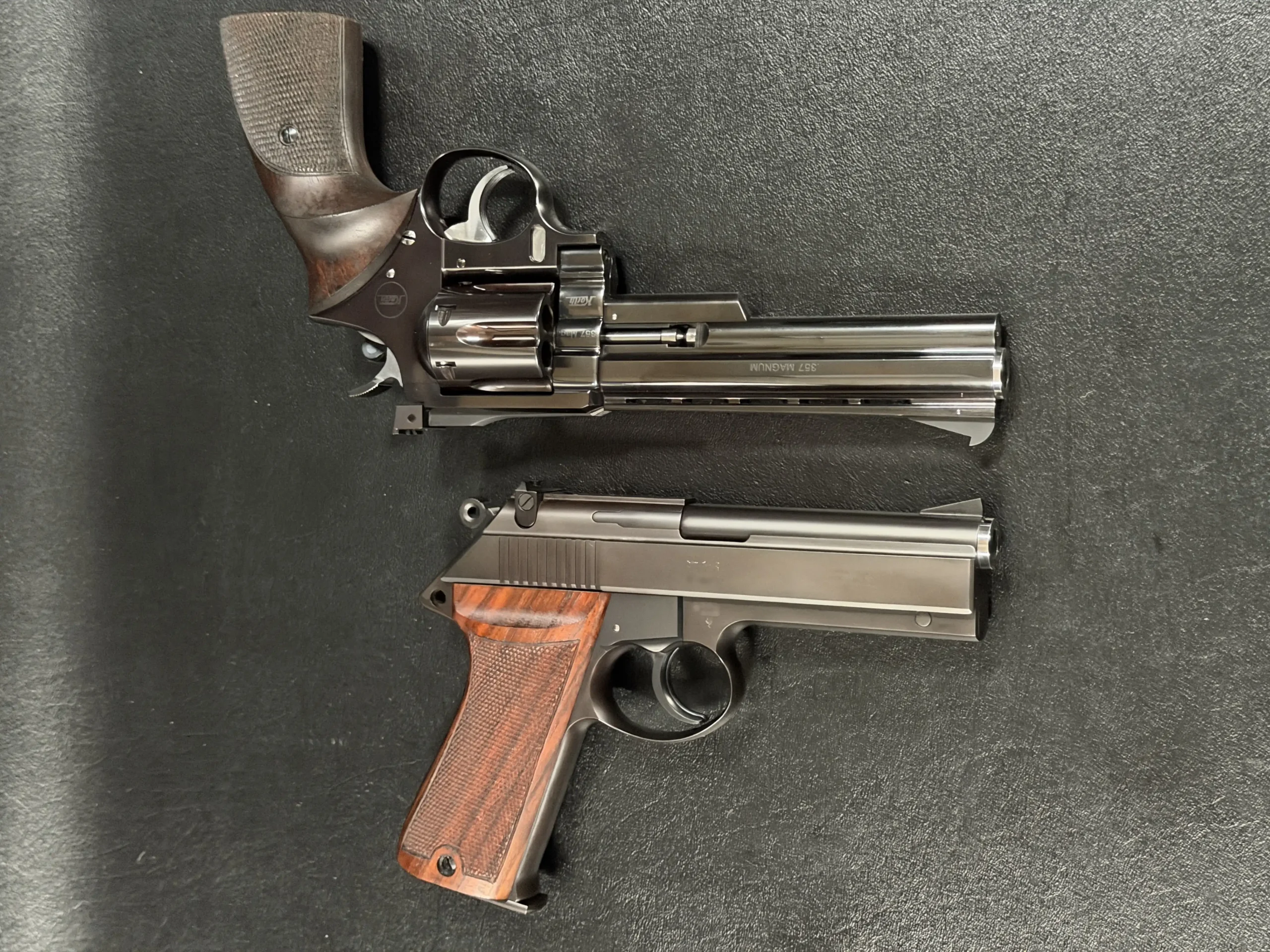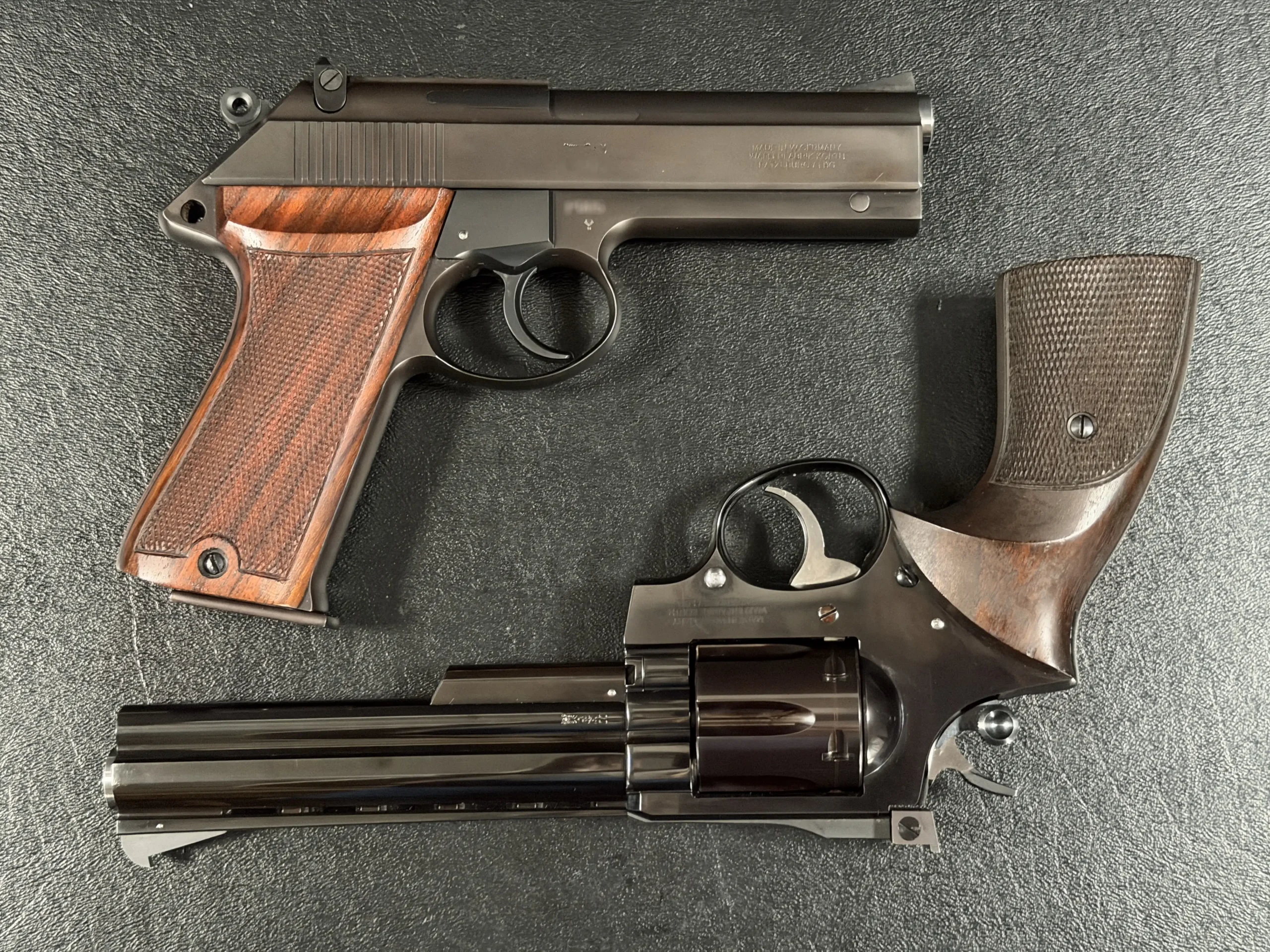This is not simply a semi-auto and a revolver. It is a matched pair born from the height of German hand-fitted fabrication, a pairing seldom seen, almost never available, and impossible to replicate today.