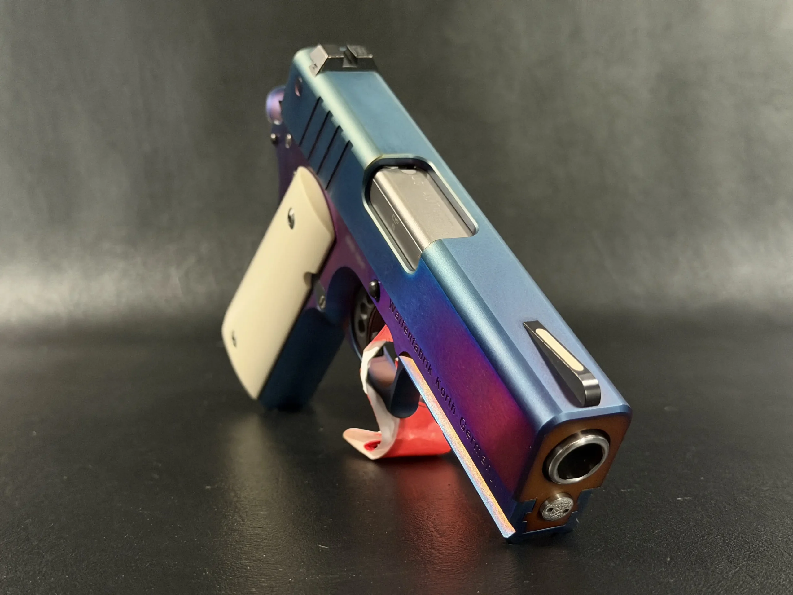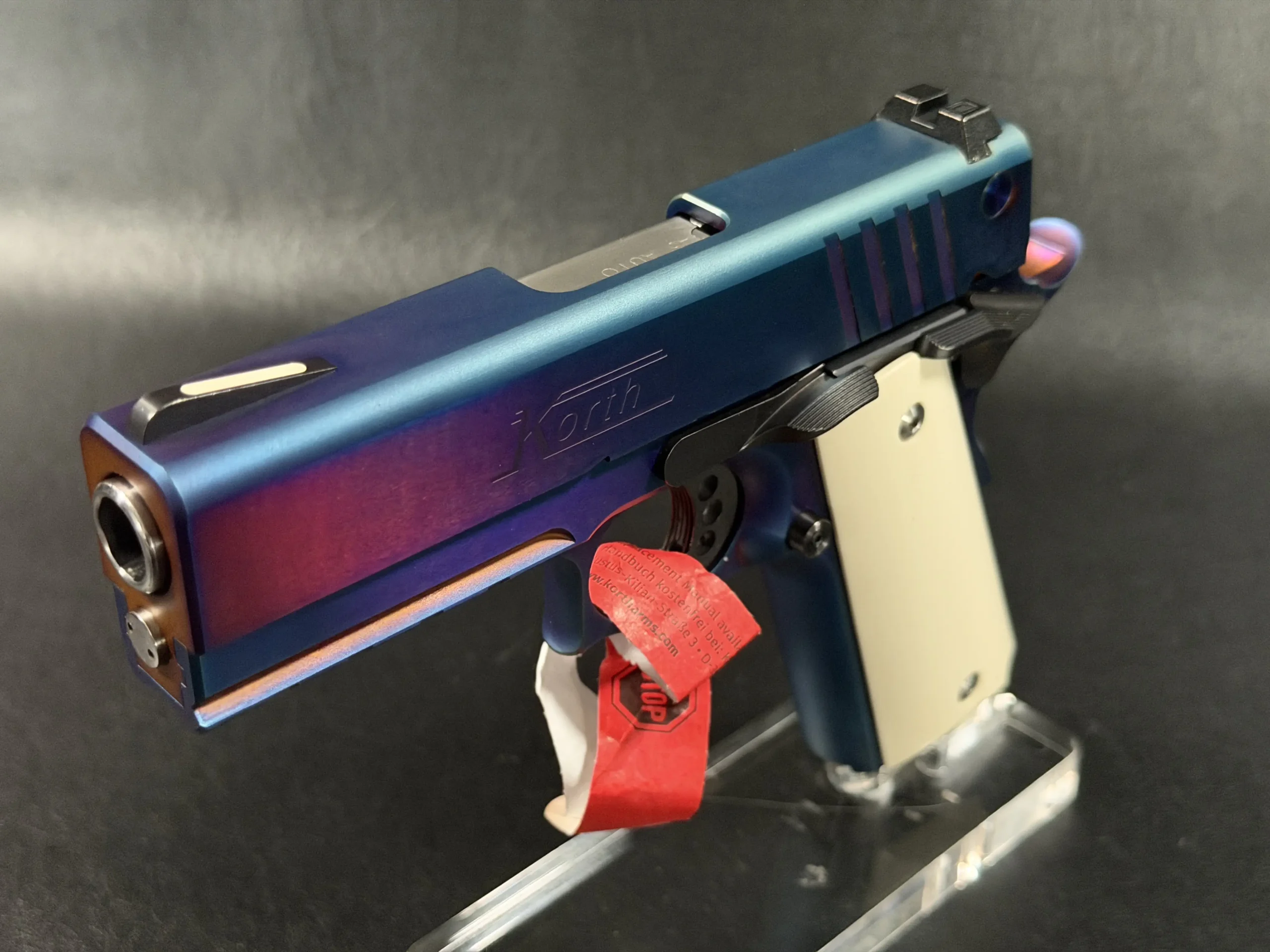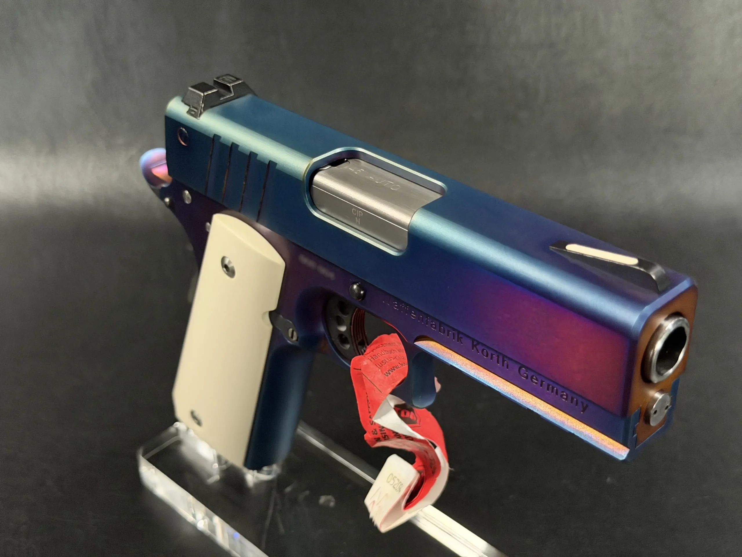 The Korth PRS already sits in a league of its own—but this Blue Plasma edition takes the platform into an entirely different realm. Finished in Korth’s signature multi-tone plasma treatment, the pistol shifts between deep cobalt, violet, and electric blue depending on the light. In person, it looks less like a firearm and more like a sculpted, heat-treated piece of modern metal art.