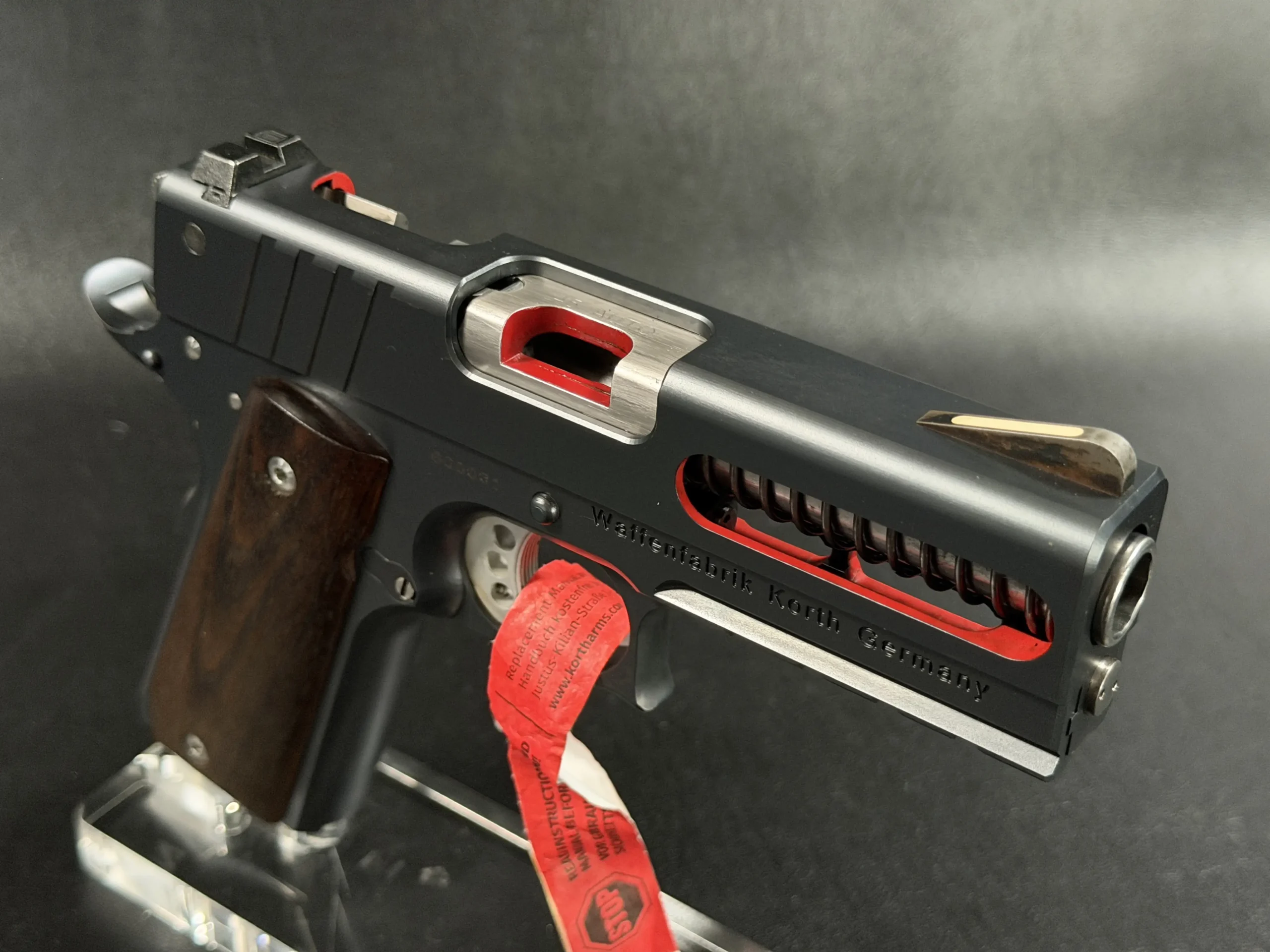 Walnut grips bring a warm counterpoint to the technical, almost futuristic machining. Edges are crisp, hand-finished, and unmistakably Korth. This example comes from the very beginning of the production sequence—adding a layer of significance that serious collectors will immediately appreciate and understand.