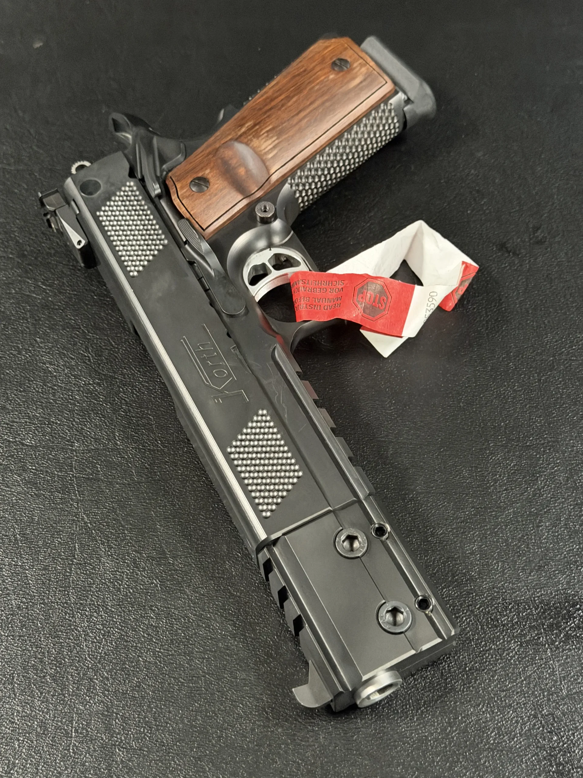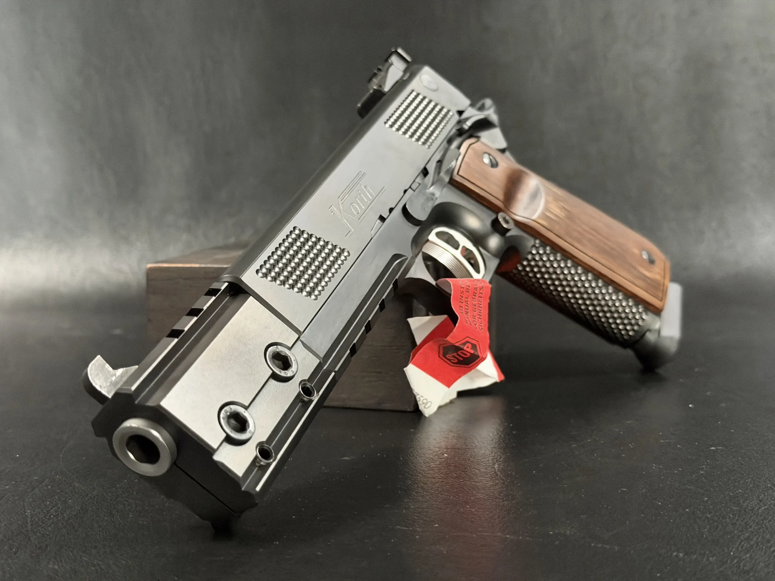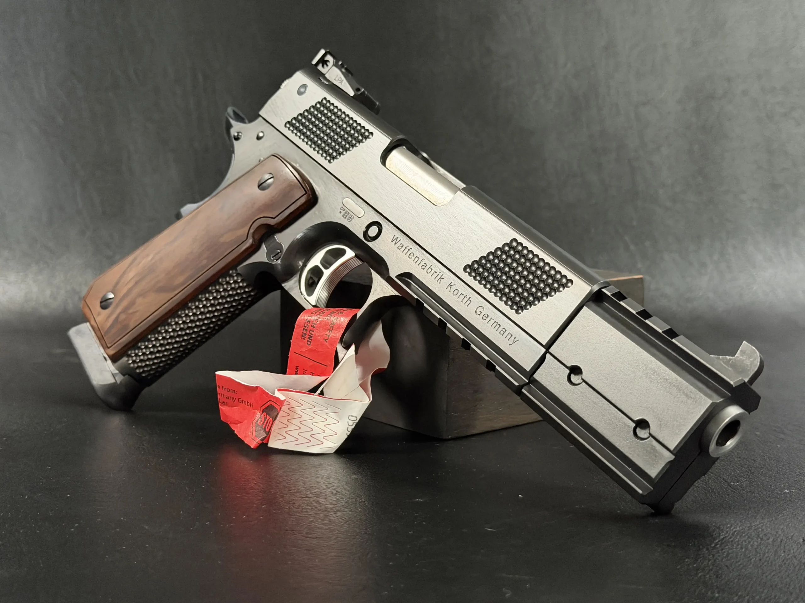 The Korth PRS Black 6 Inch stands as one of the most distinctive and technically advanced semi-automatic pistols ever produced by Waffenfabrik Korth. Built around the familiar ergonomics of a 1911-style platform but elevated through Korth’s uncompromising machining standards, this pistol blends competition-grade precision with the kind of severe industrial aesthetic only Korth can achieve.