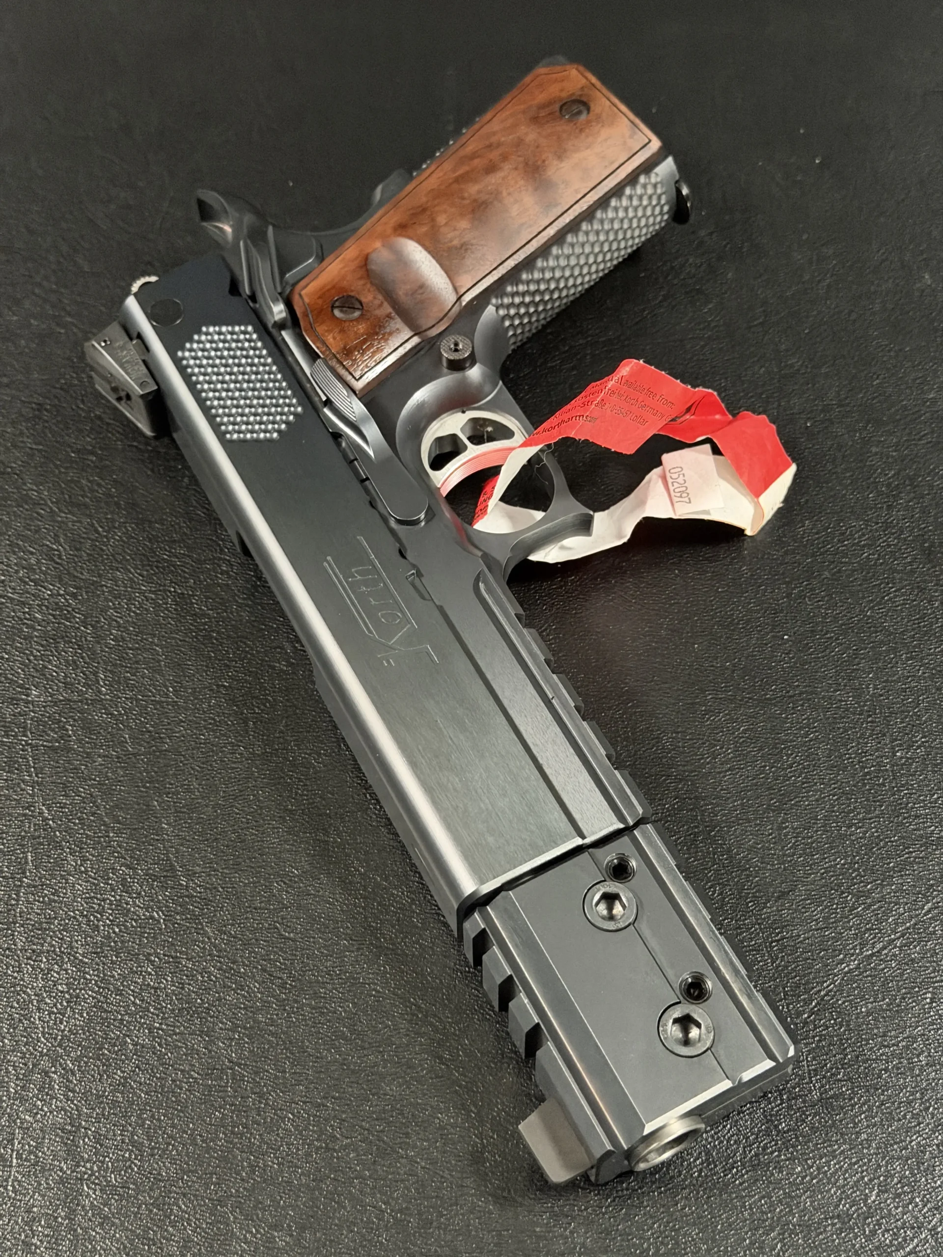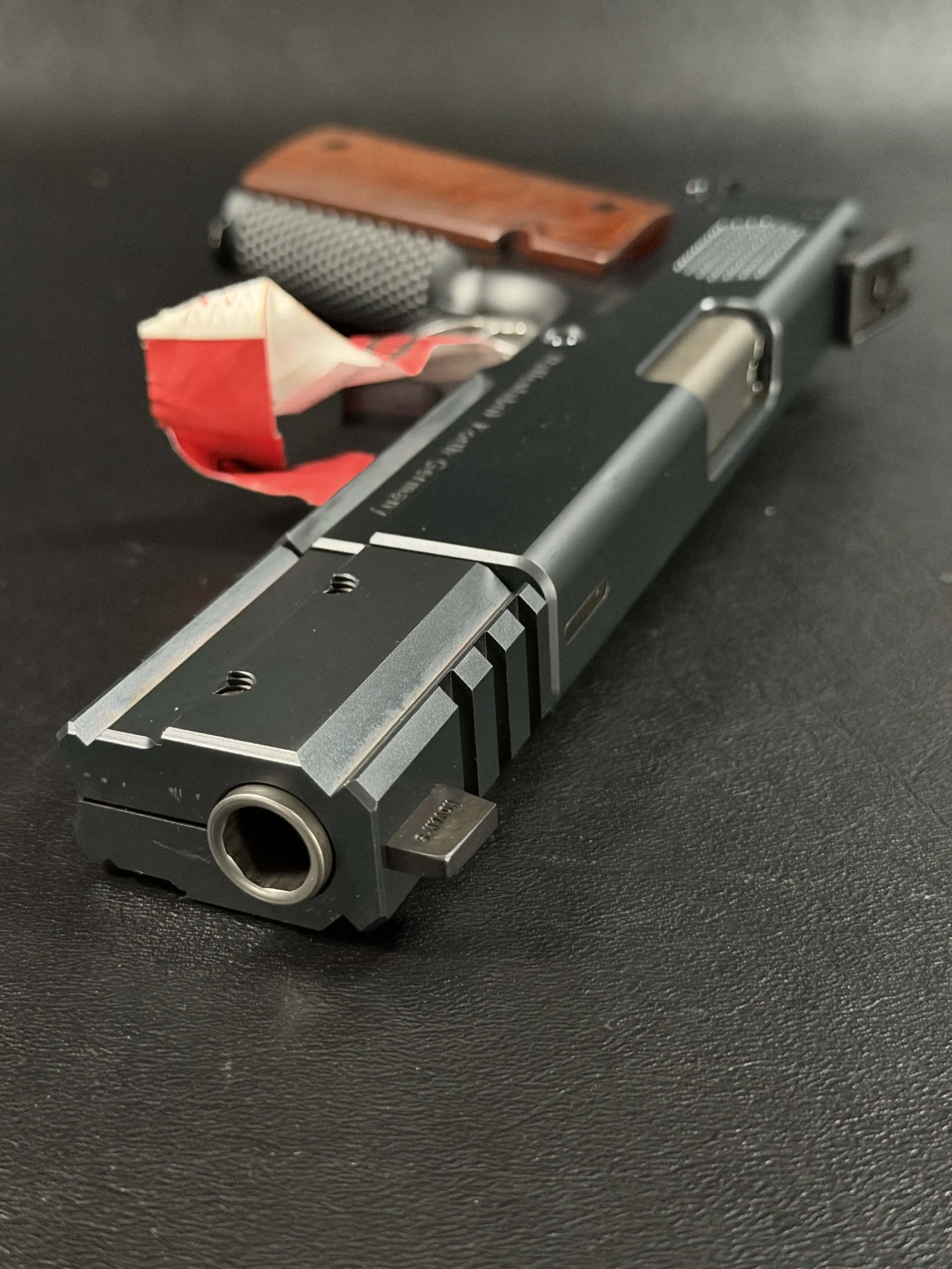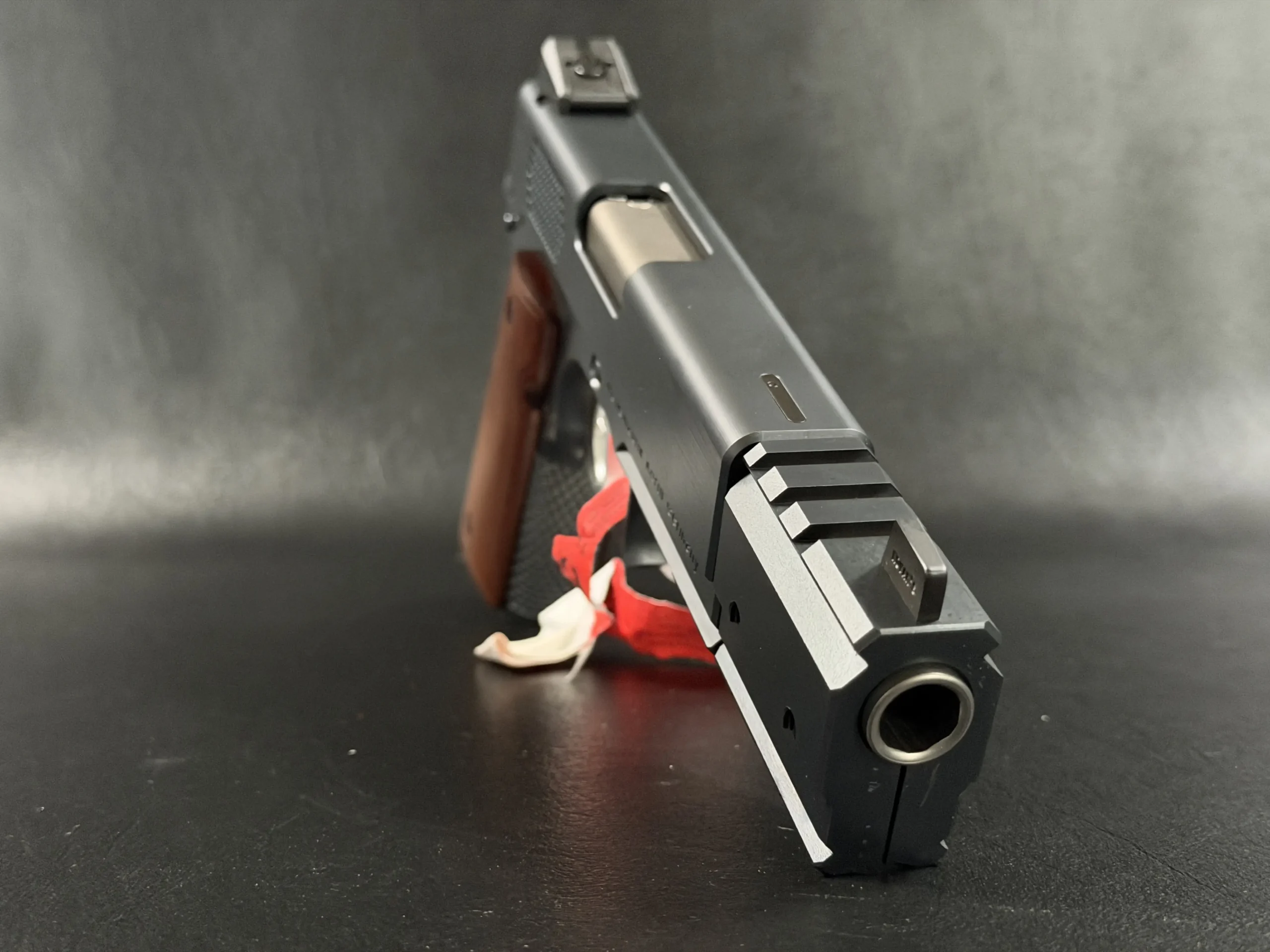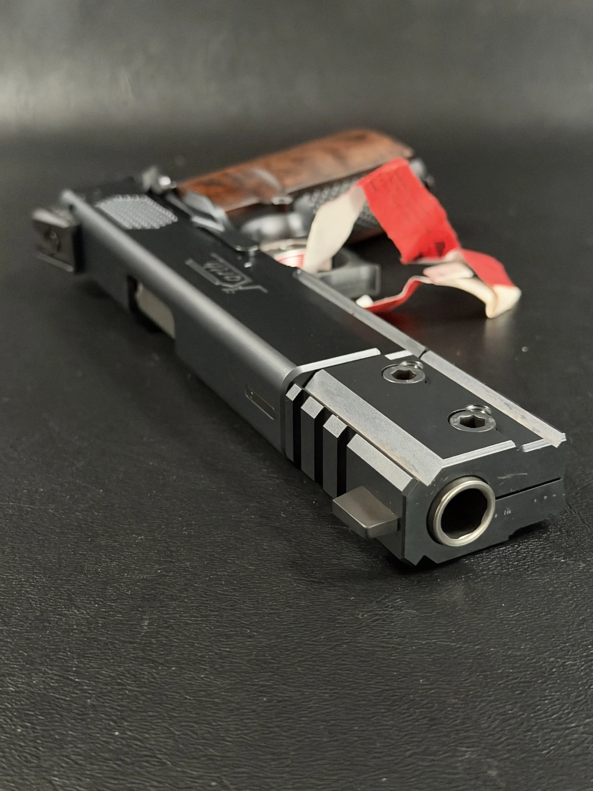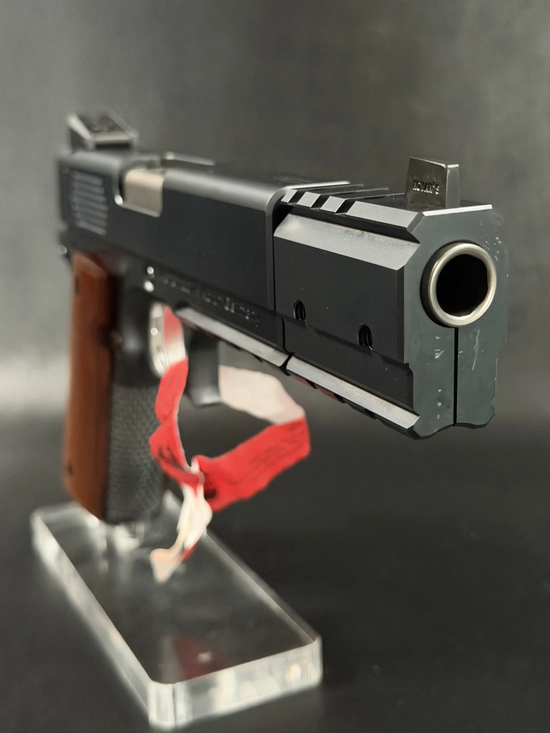 Finished in a deep, mirror-sheened steel that feels almost sculptural in hand, the PRS stands apart from anything else in the modern 1911-inspired world. Its extended 6-inch barrel and massive front weight give the pistol a uniquely balanced profile—purpose-built for stability, recoil control, and absolute visual presence. Every surface is sharply defined, every edge deliberate, every interface engineered with Korth’s signature obsession for detail.