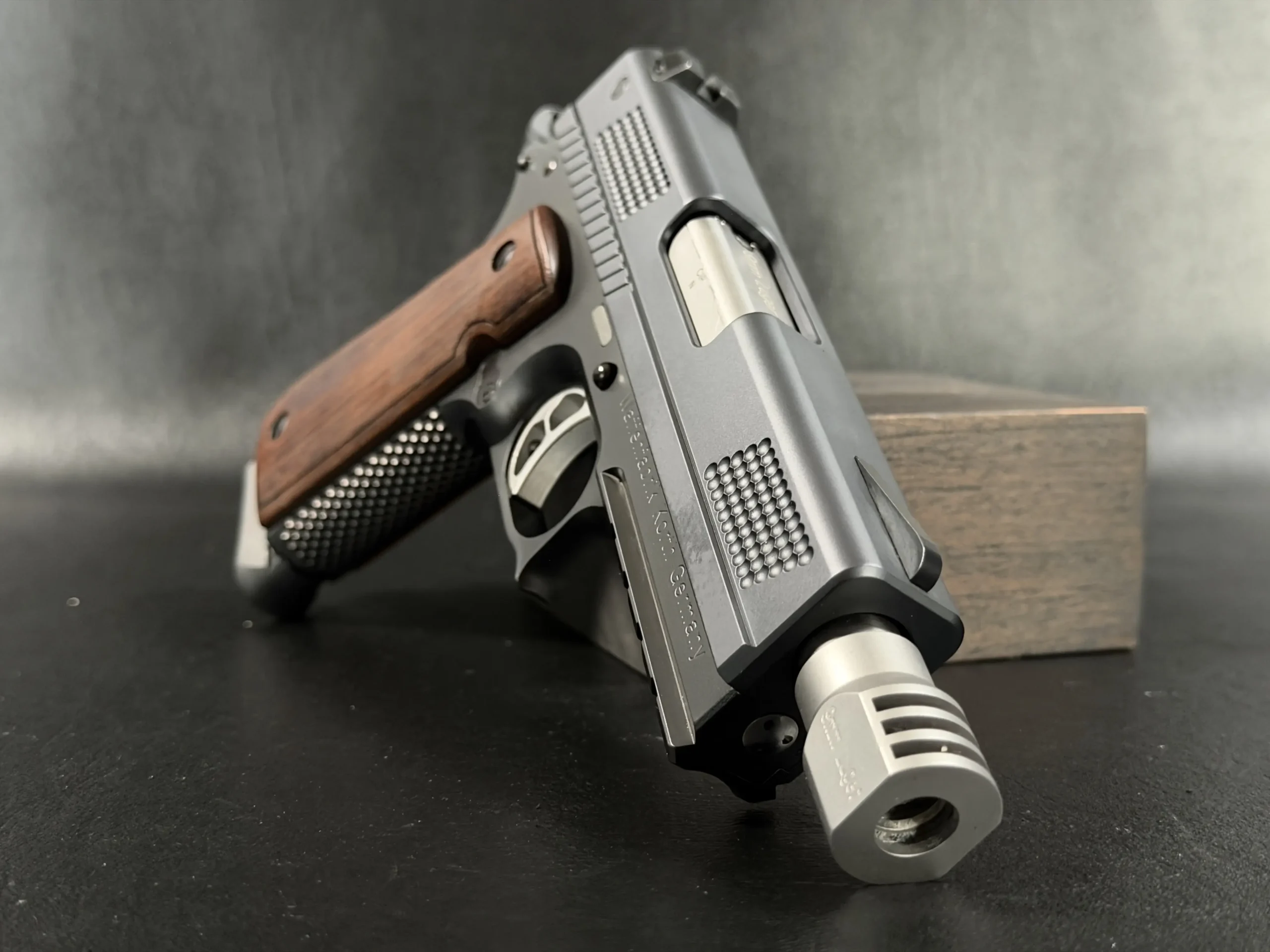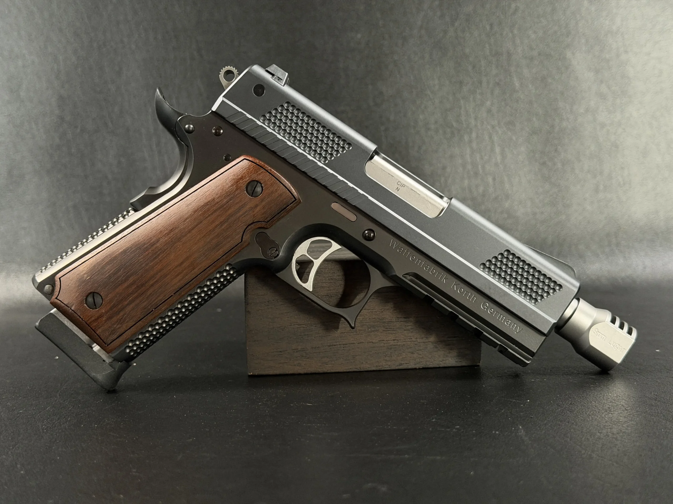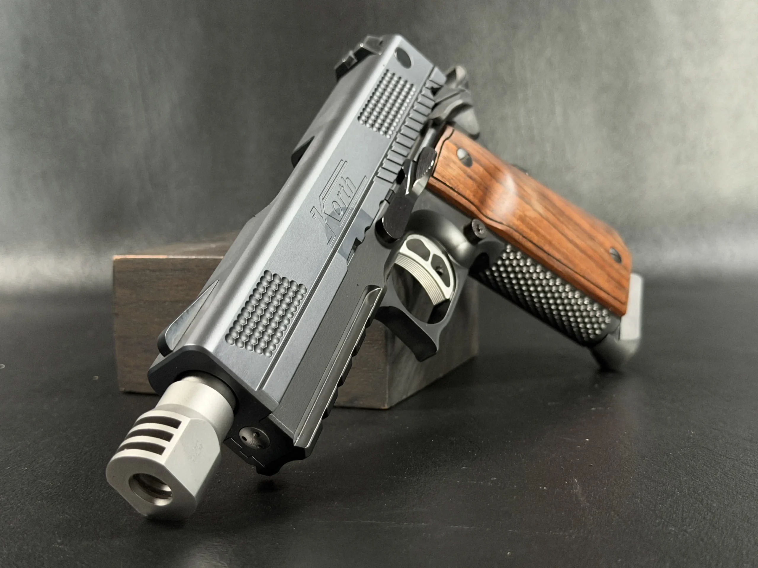 Machined and finished in Germany, the PRS SD blends Korth’s uncompromising mechanical standards with a distinctly modern, performance-driven aesthetic. The slide features Korth’s signature machining and texture work, balanced by the controlled mass and visual presence of the SD barrel assembly. Chambered in 9mm, the platform delivers the smooth recoil impulse and precision one would expect from a pistol built without shortcuts or concessions.