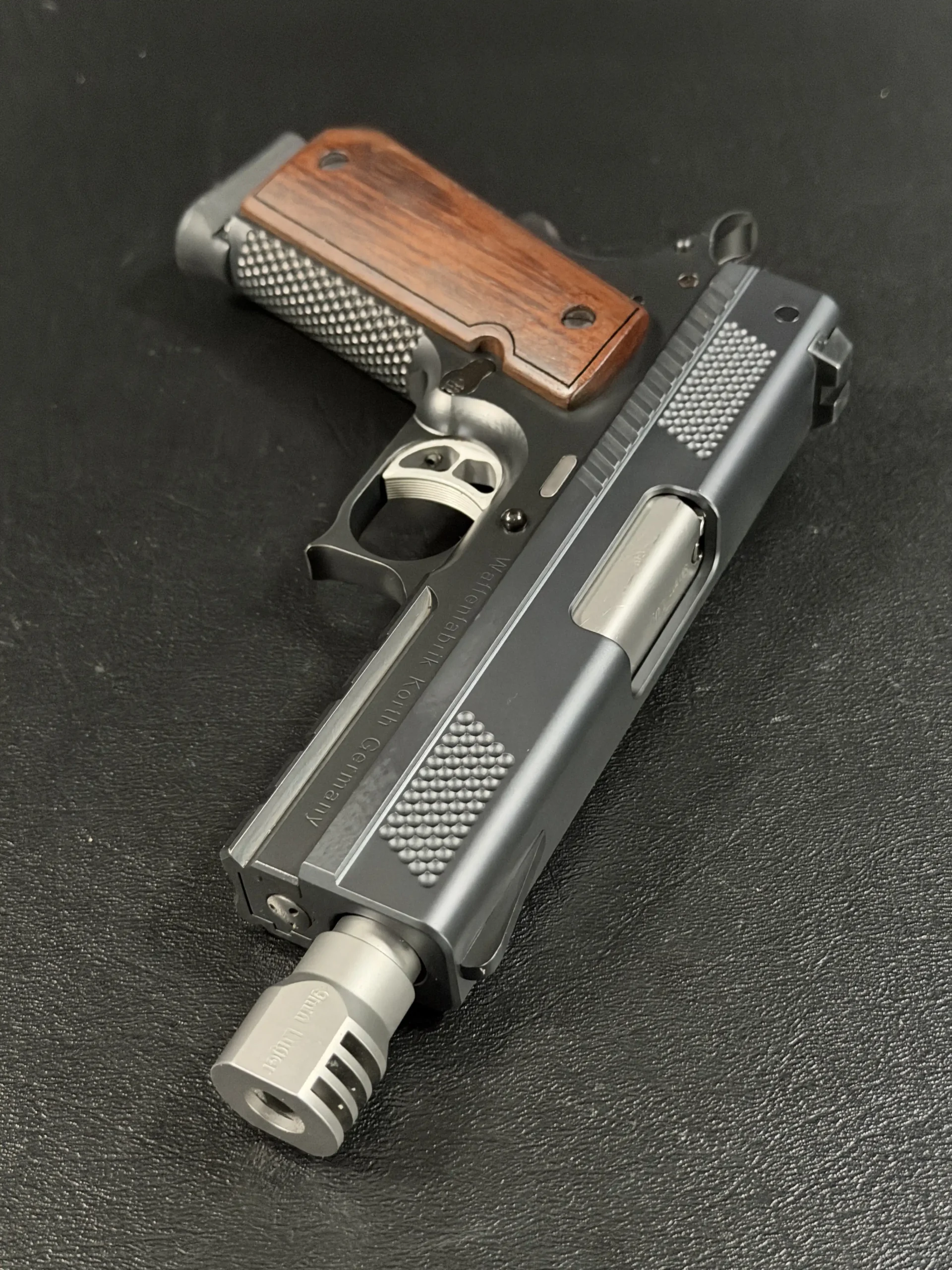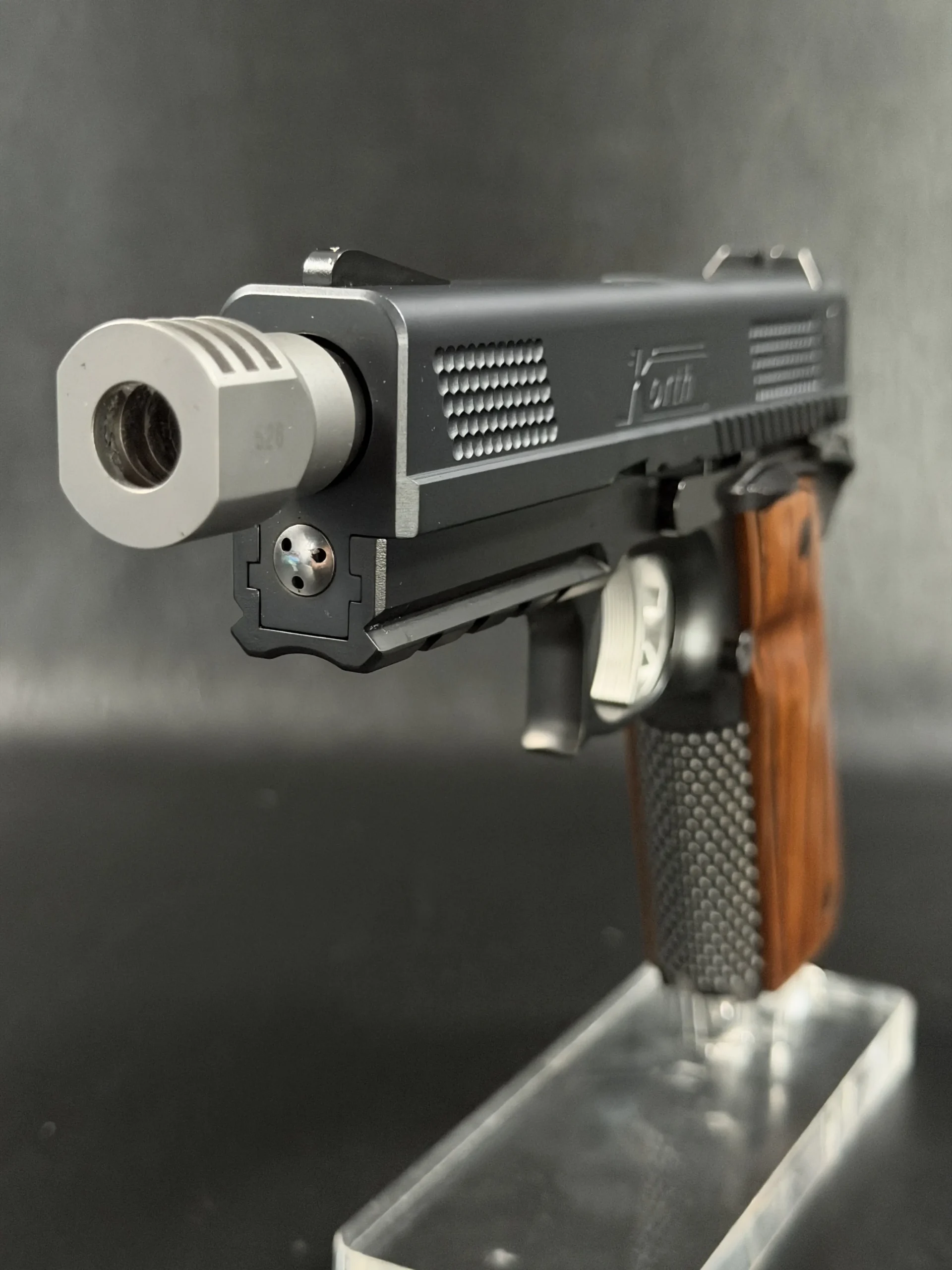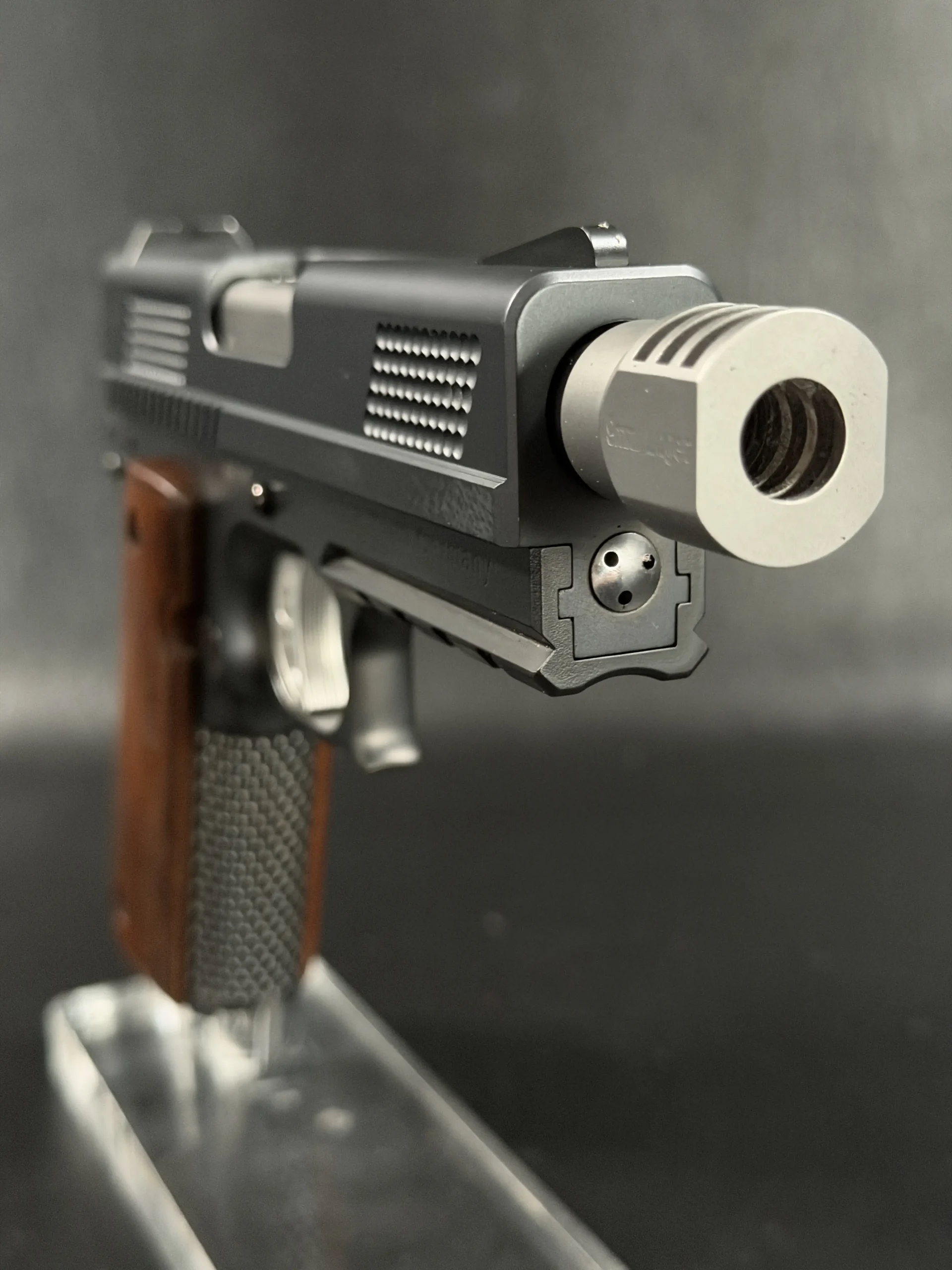 Machined and finished in Germany, the PRS SD blends Korth’s uncompromising mechanical standards with a distinctly modern, performance-driven aesthetic. The slide features Korth’s signature machining and texture work, balanced by the controlled mass and visual presence of the SD barrel assembly. Chambered in 9mm, the platform delivers the smooth recoil impulse and precision one would expect from a pistol built without shortcuts or concessions.