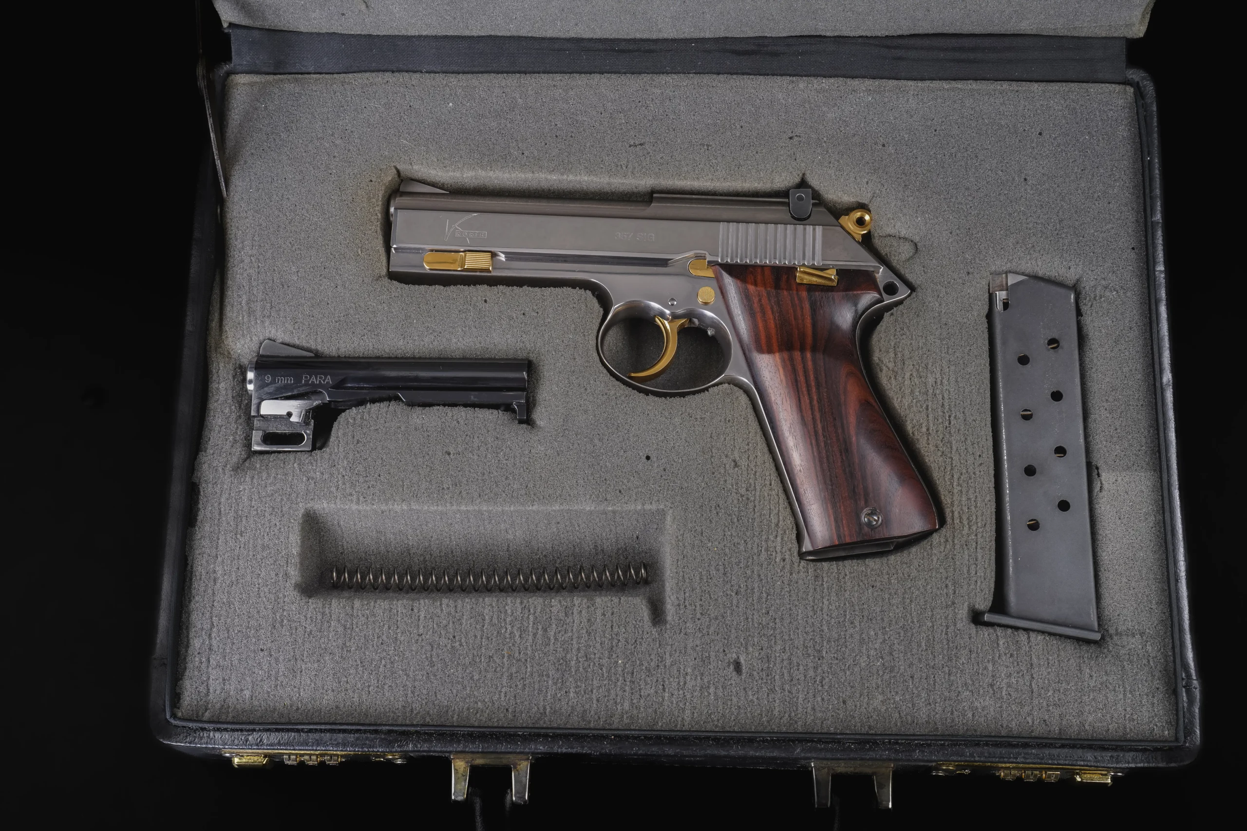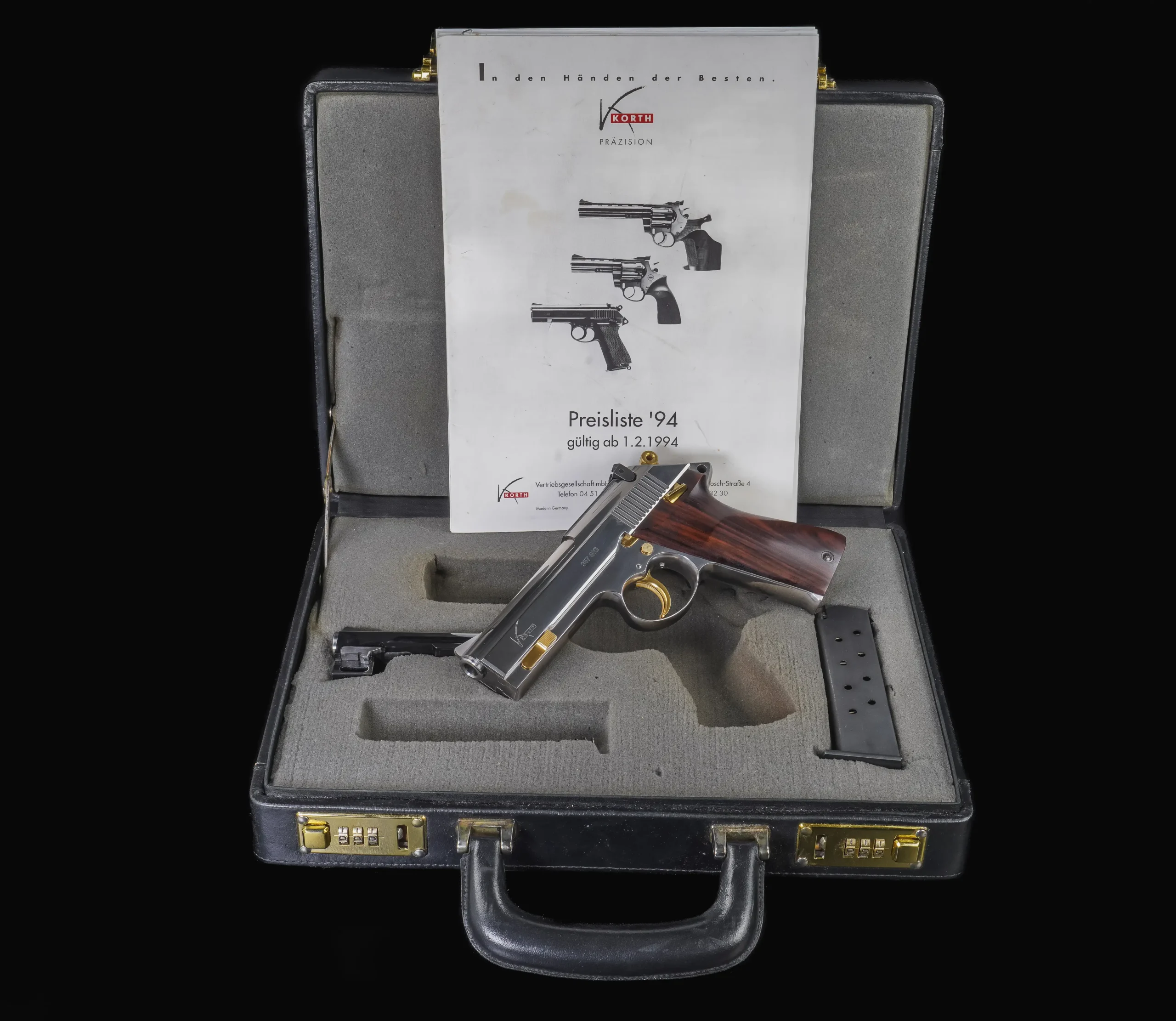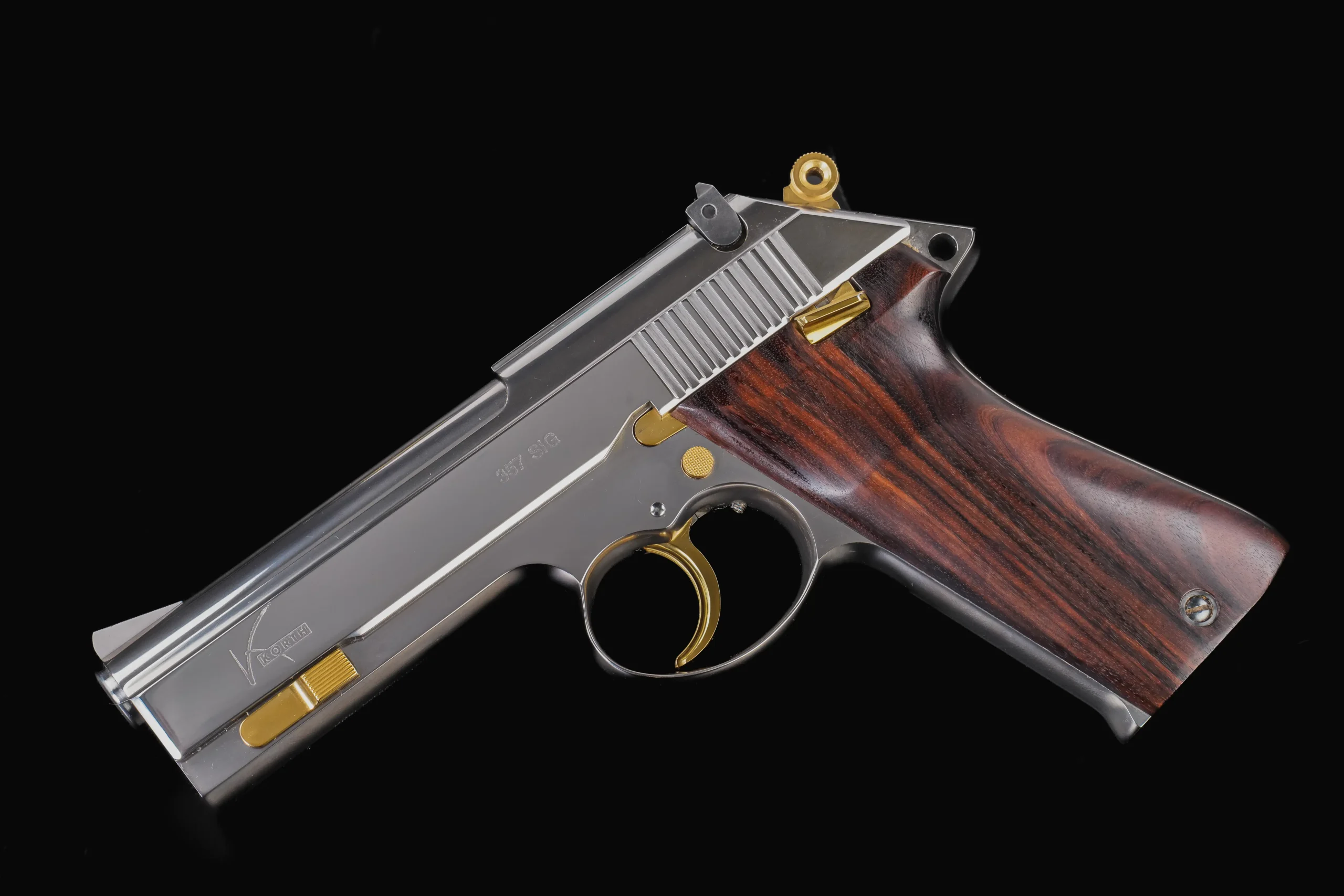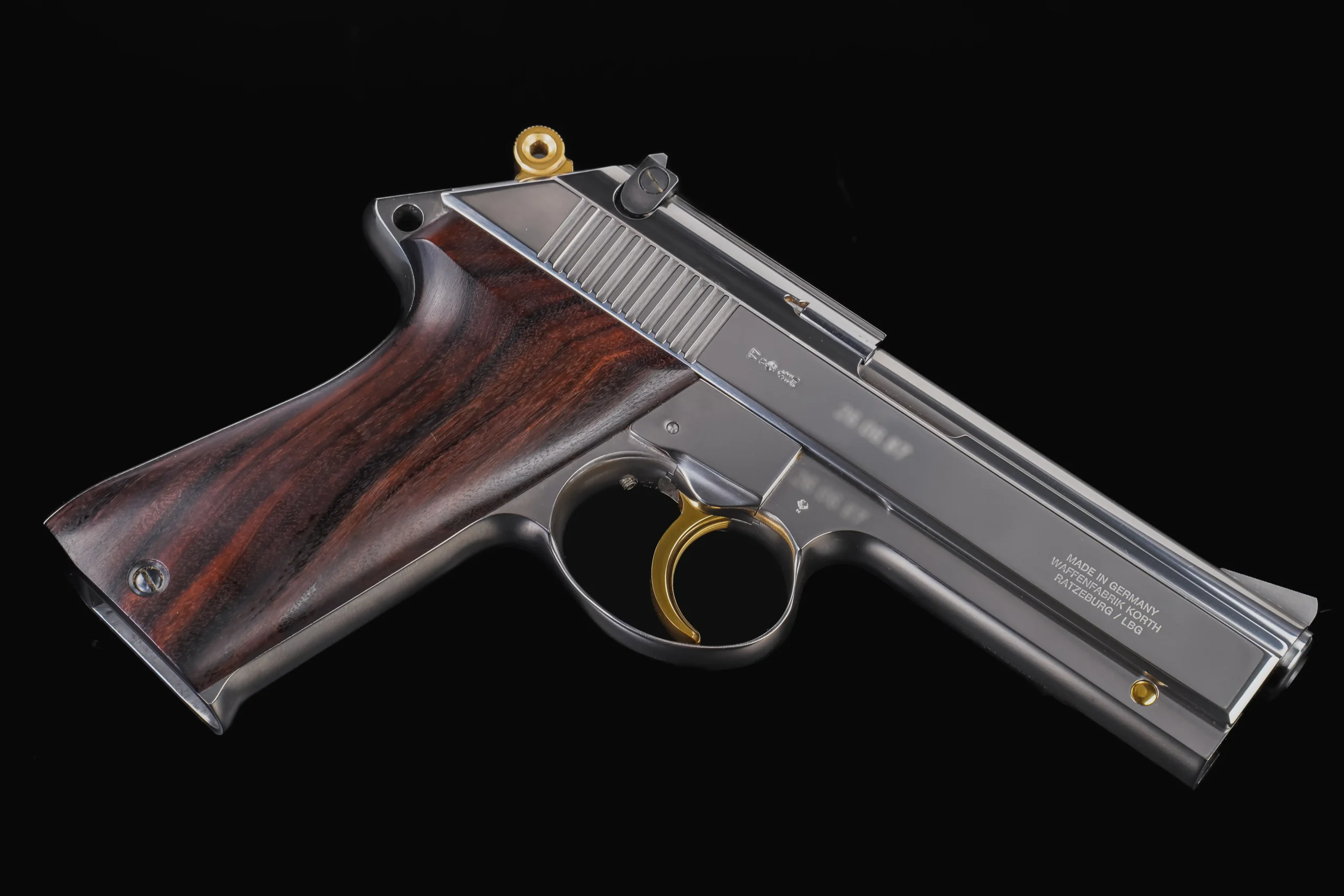 Pieces like this represent a very specific chapter in Korth’s semi-automatic development, a time when the Ratzeburg workshop was producing pistols in extremely limited numbers, each one reflecting the brand’s uncompromising standards in machining, finishing, and assembly.