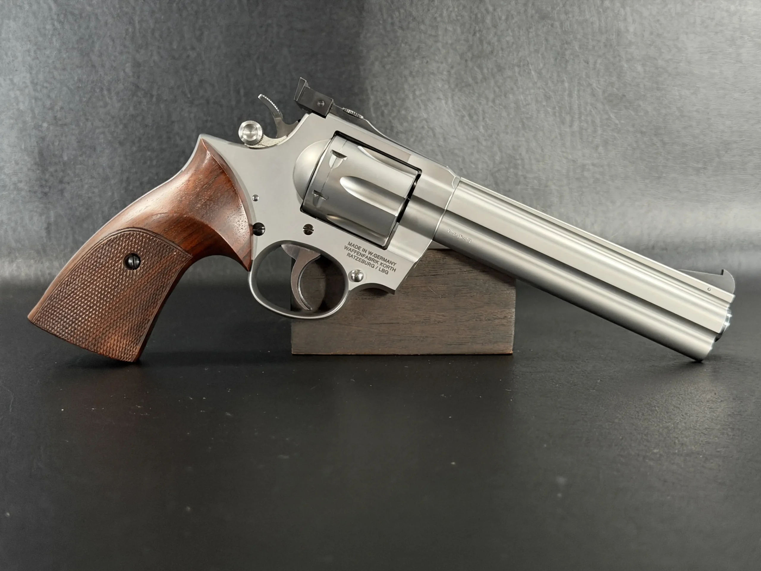 Marked “Made in W. Germany, Korth, Ratzeburg,” this example stands not only as a functional firearm but as a historical artifact from one of the most revered revolver workshops ever established. Production numbers from this era were extremely limited, with each revolver requiring extensive hand labor, a level of craftsmanship that is virtually impossible to replicate today at any price point.