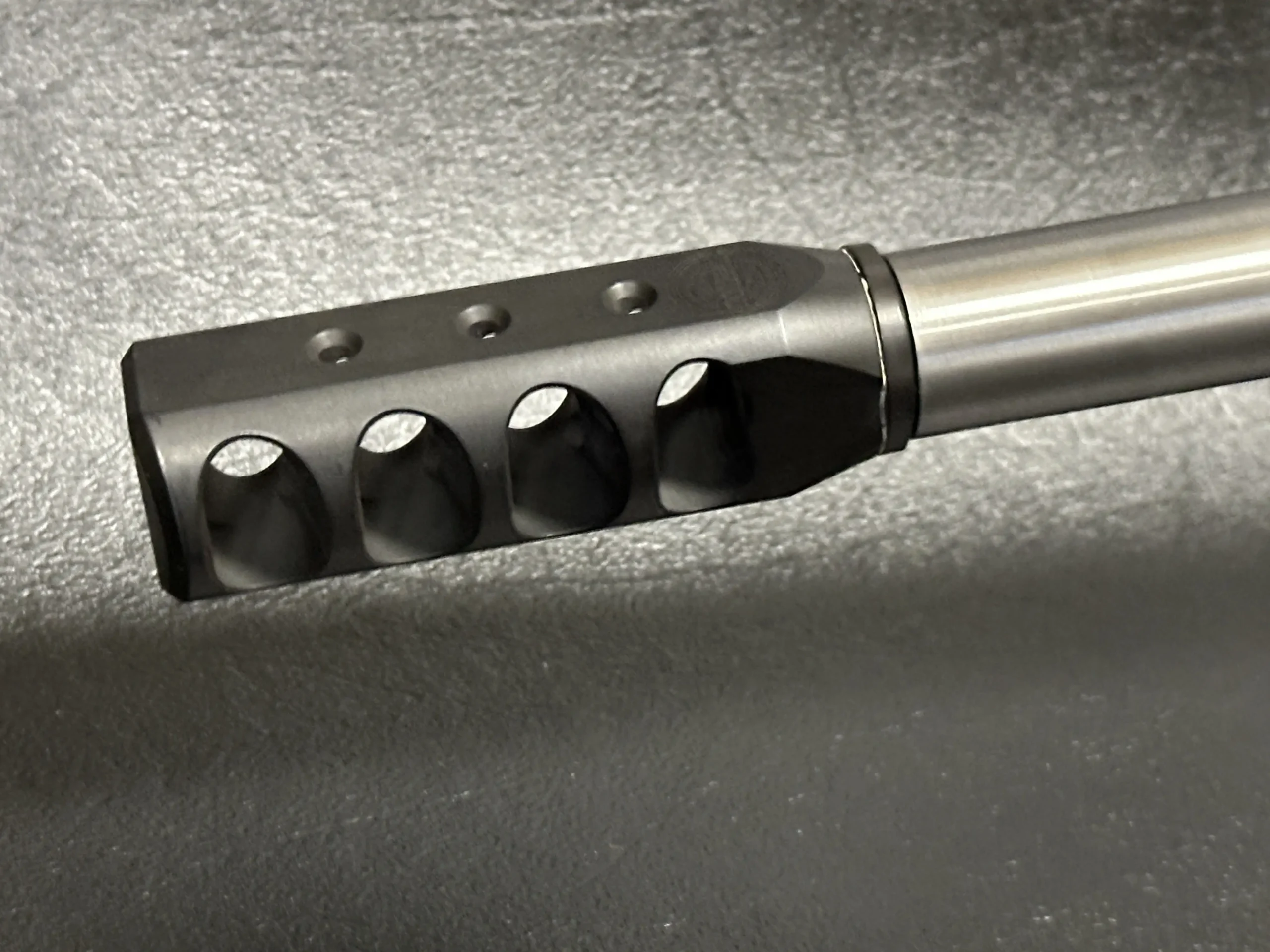 Forward of the handguard, the rifle is outfitted with a precision muzzle brake designed to mitigate recoil and muzzle rise, an essential feature given the performance envelope of the .308 Winchester / 7.62 NATO cartridge. The result is a shooting experience that feels controlled, balanced, and purpose-built for repeatable long-range engagement.
