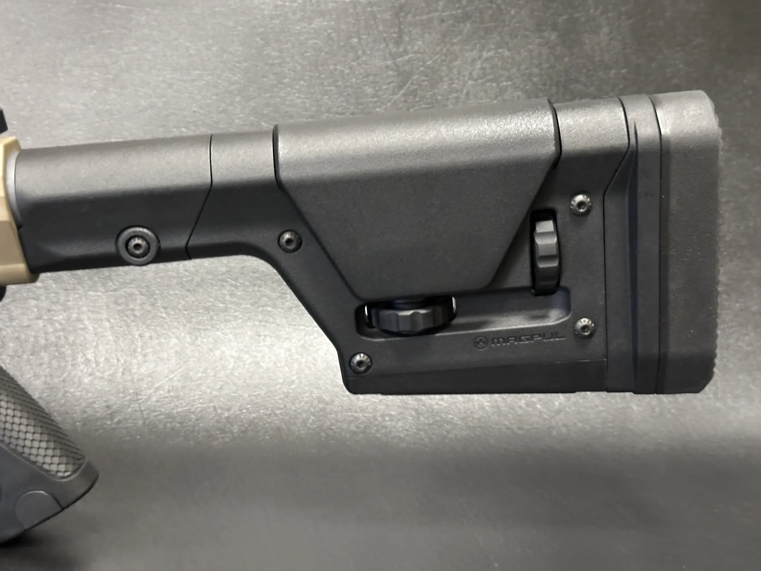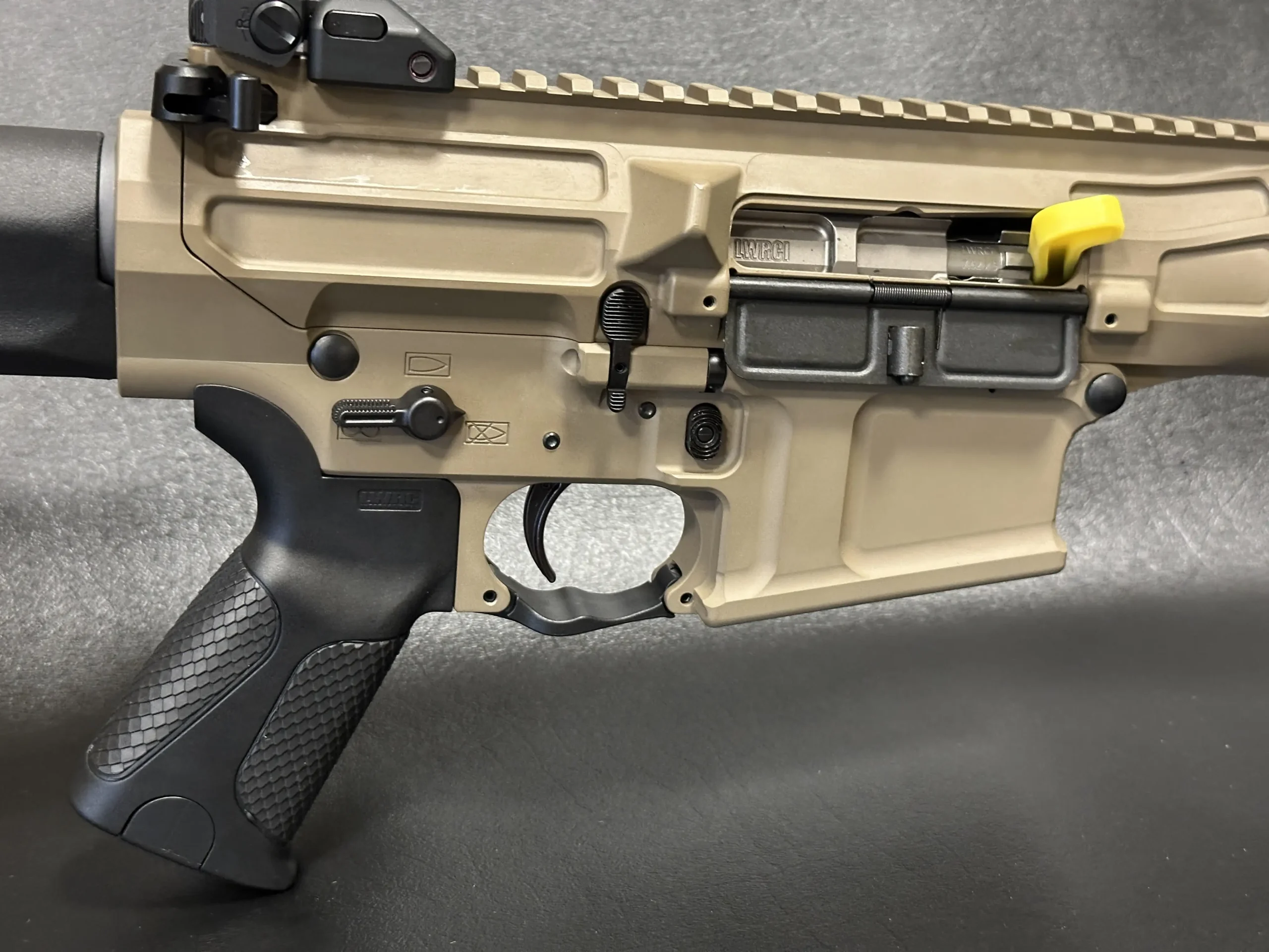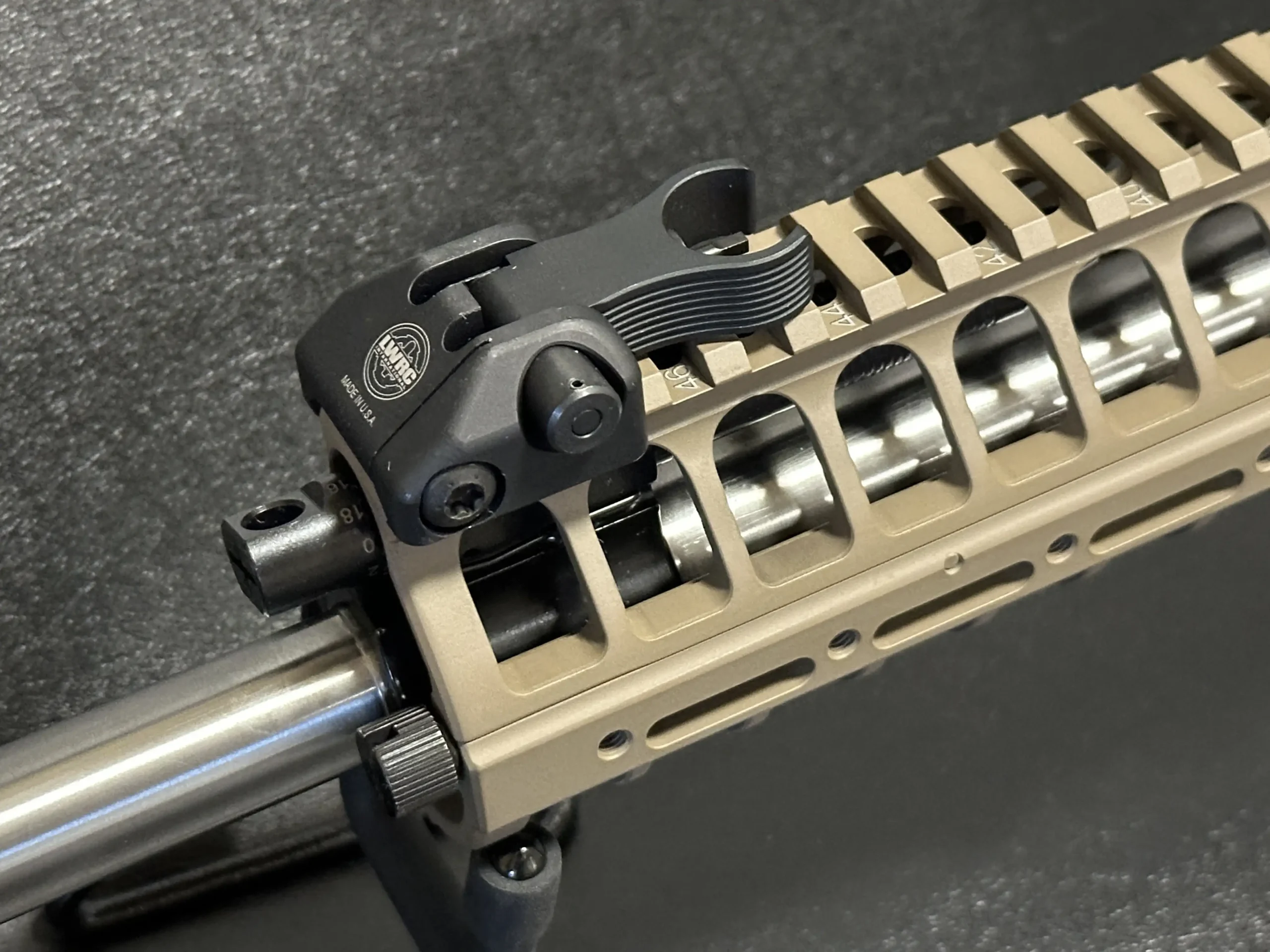Finished in a striking Flat Dark Earth (FDE) Cerakote, the rifle presents a commanding visual presence. The monolithic upper receiver flows seamlessly into LWRC’s extended modular handguard, creating a continuous top rail optimized for advanced optics and mission-specific accessories. Precision indexing along the rail adds both function and visual depth, an industrial design cue that reflects the rifle’s technical pedigree.