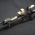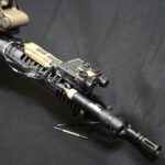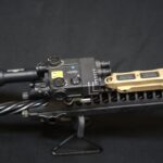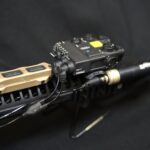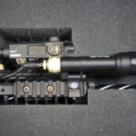 At the front of the rifle, the Steiner Optics DBAL-A3 IR laser and illuminator provide laser precision and floodlight capabilities under night vision, facilitating rapid target acquisition. For scenarios where white light is preferable, the Surefire M340 Turbo, renowned for its durability and reliability, compliments the rifle setup. To control lighting options seamlessly, the Unity Tactical TAPS (Tactical Augmented Pressure Switch) is included, allowing quick toggling between white light and IR illumination.