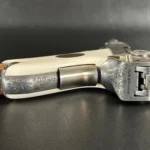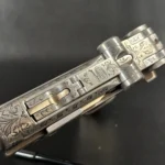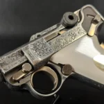 The IWA Mauser P08 Luger is more than a firearm—it’s a statement of artistry and timeless design. Every inch of this pistol speaks to the legacy of Mauser’s craftsmanship, combining precision engineering with a level of visual detail few firearms ever achieve. Its polished stainless finish serves as the perfect backdrop for intricate full-surface engraving, transforming the Luger into a genuine work of art. Adding to its opulent appeal, the brass-colored accents shimmer against the steel, offering a refined touch that instantly sets this piece apart.