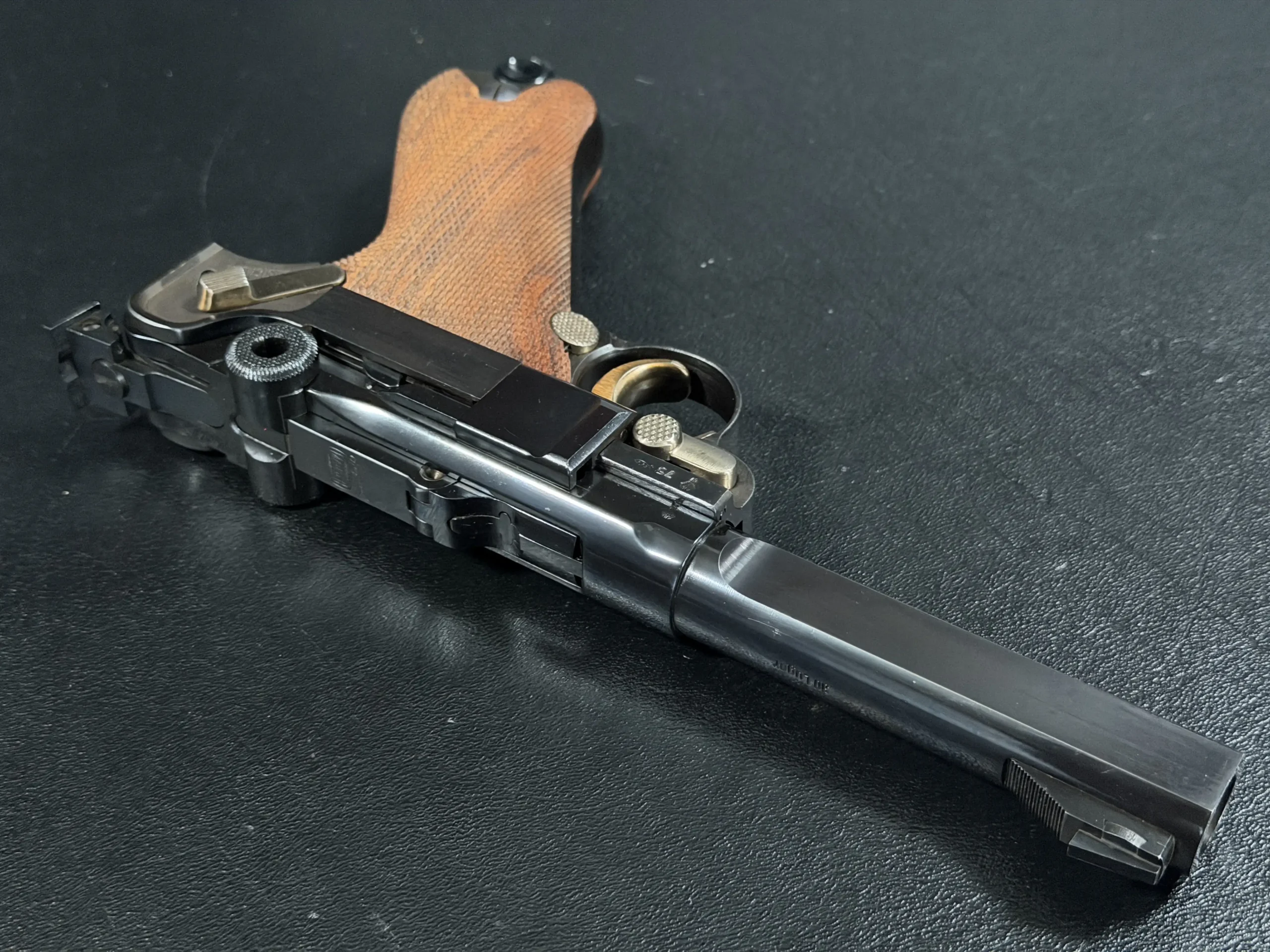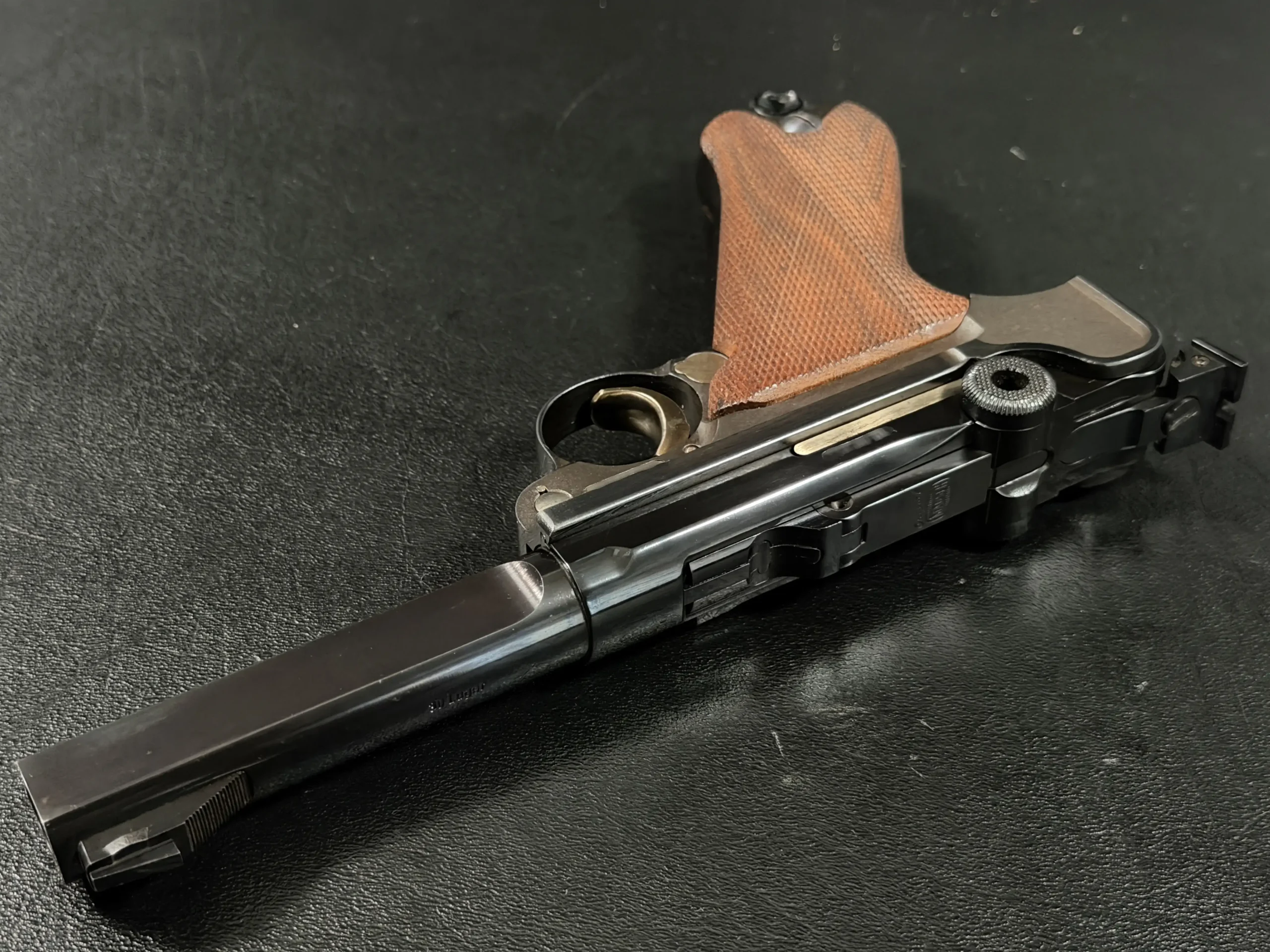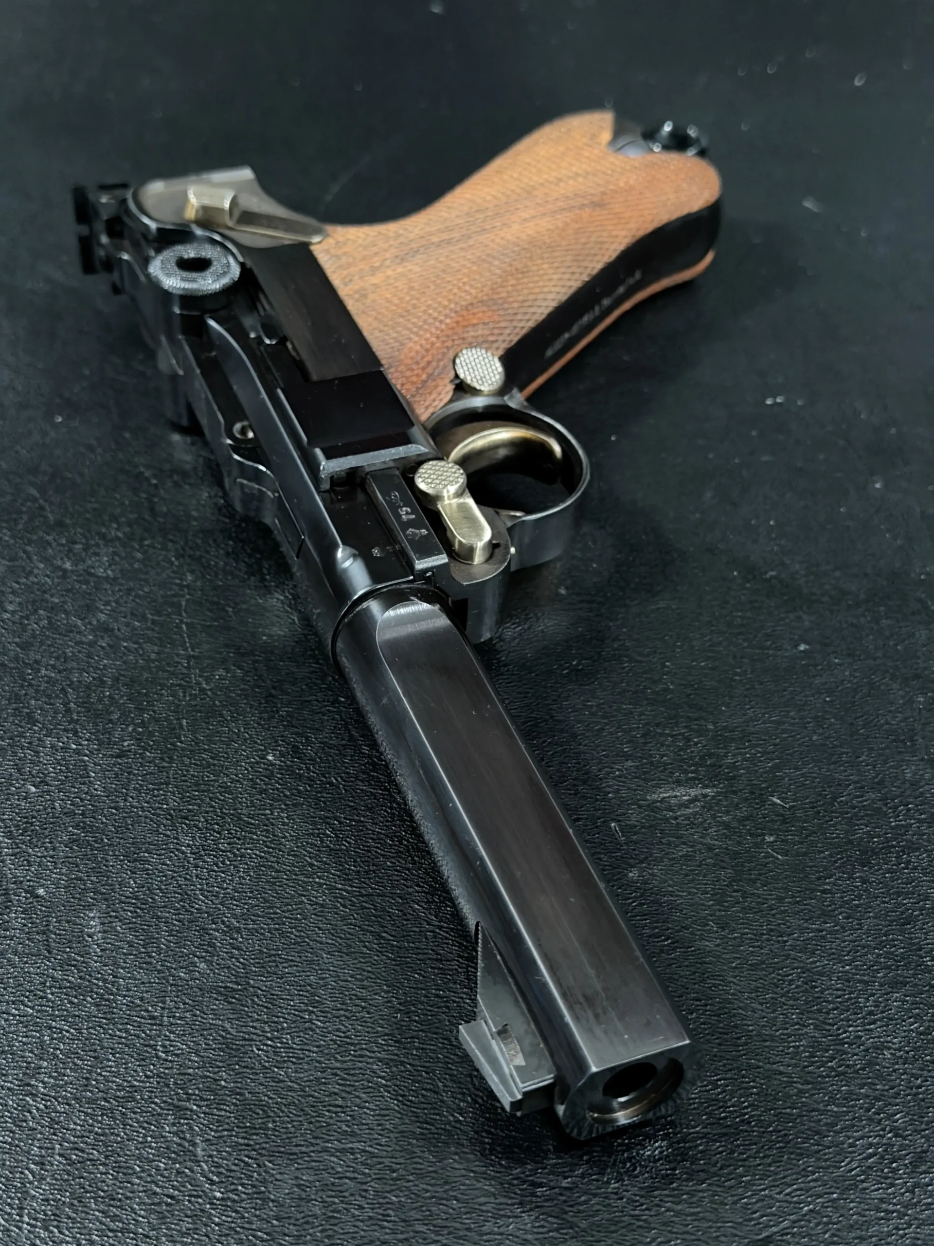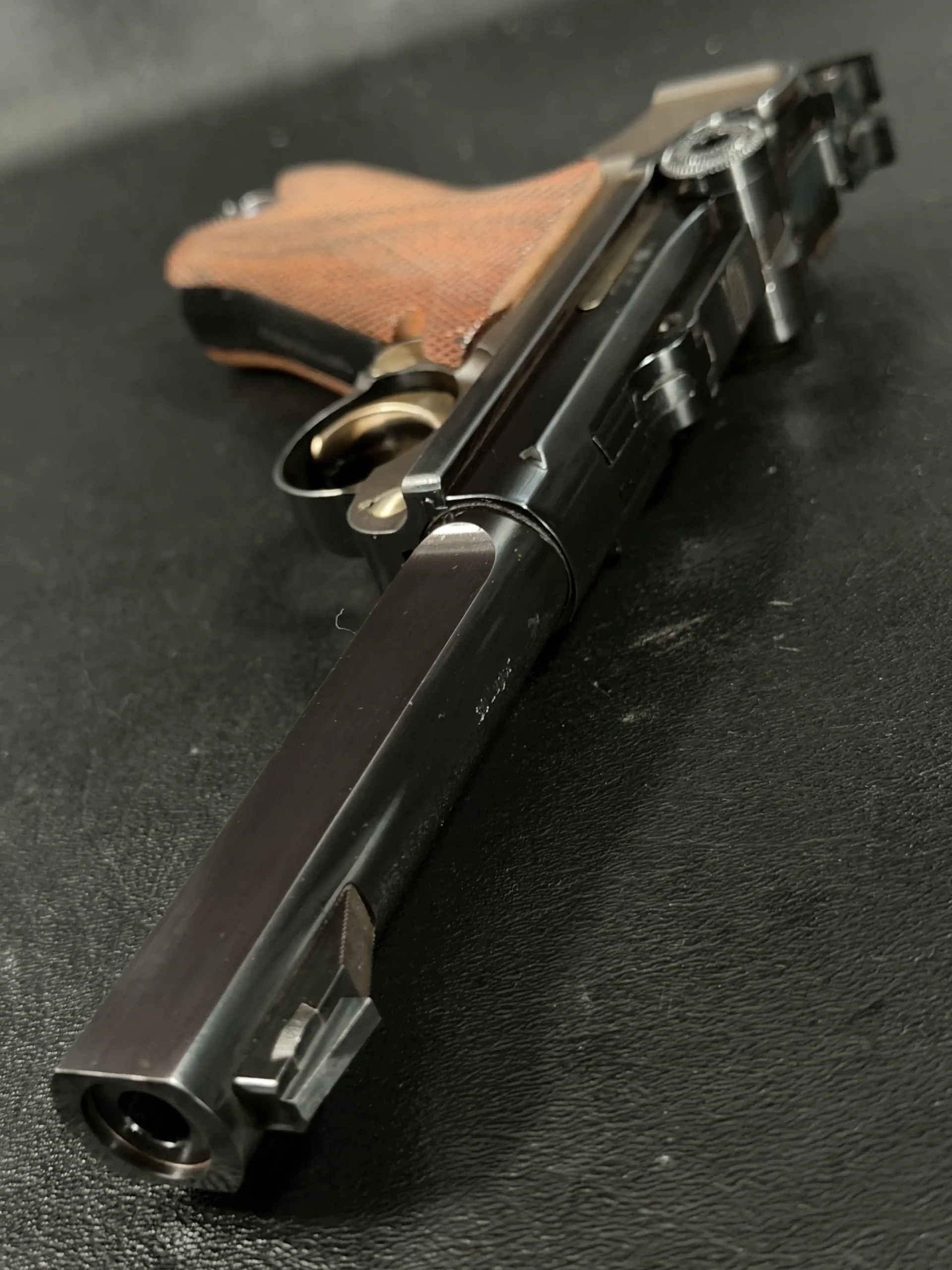 Produced in limited numbers and far less commonly encountered than standard commercial Lugers, the Parabellum Sport Modell occupies a distinct niche within post-war Mauser production. It represents a moment when it wasn’t necessity driving design, but pride. Pride in machining. Pride in accuracy. Pride in the legacy of the Parabellum name is carried forward for a new generation of target shooters.