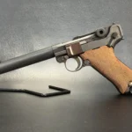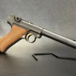 This Mauser Parabellum Sport stands as a testament to the art of gunsmithing, showcasing rare and exquisite craftsmanship in its design. This particular firearm features a distinct 124mm barrel characterized by its unique flattened sides and is further enhanced by a removable barrel weight located on the running rail. This modification not only aids in balance but also improves the precision of each shot.
