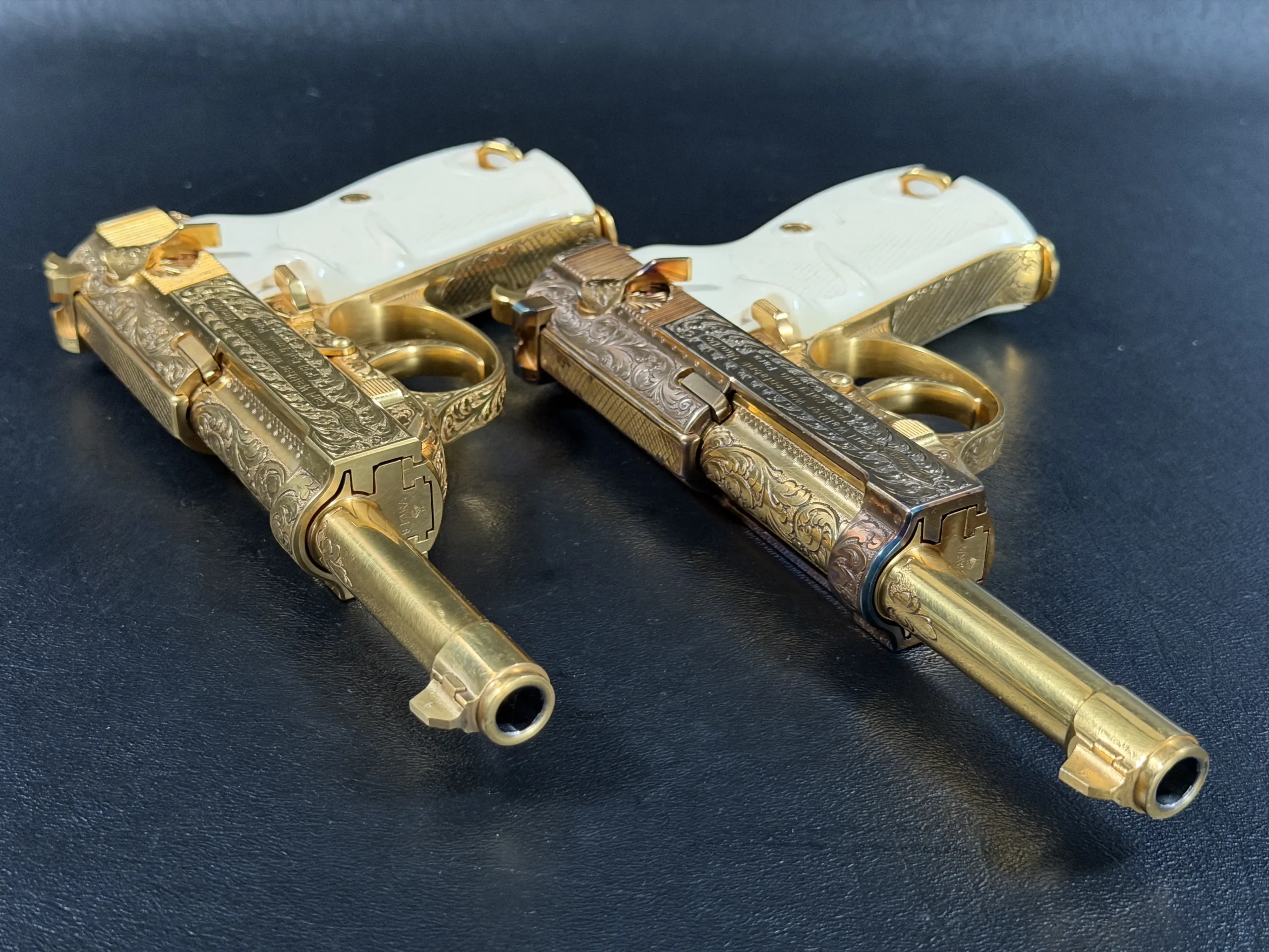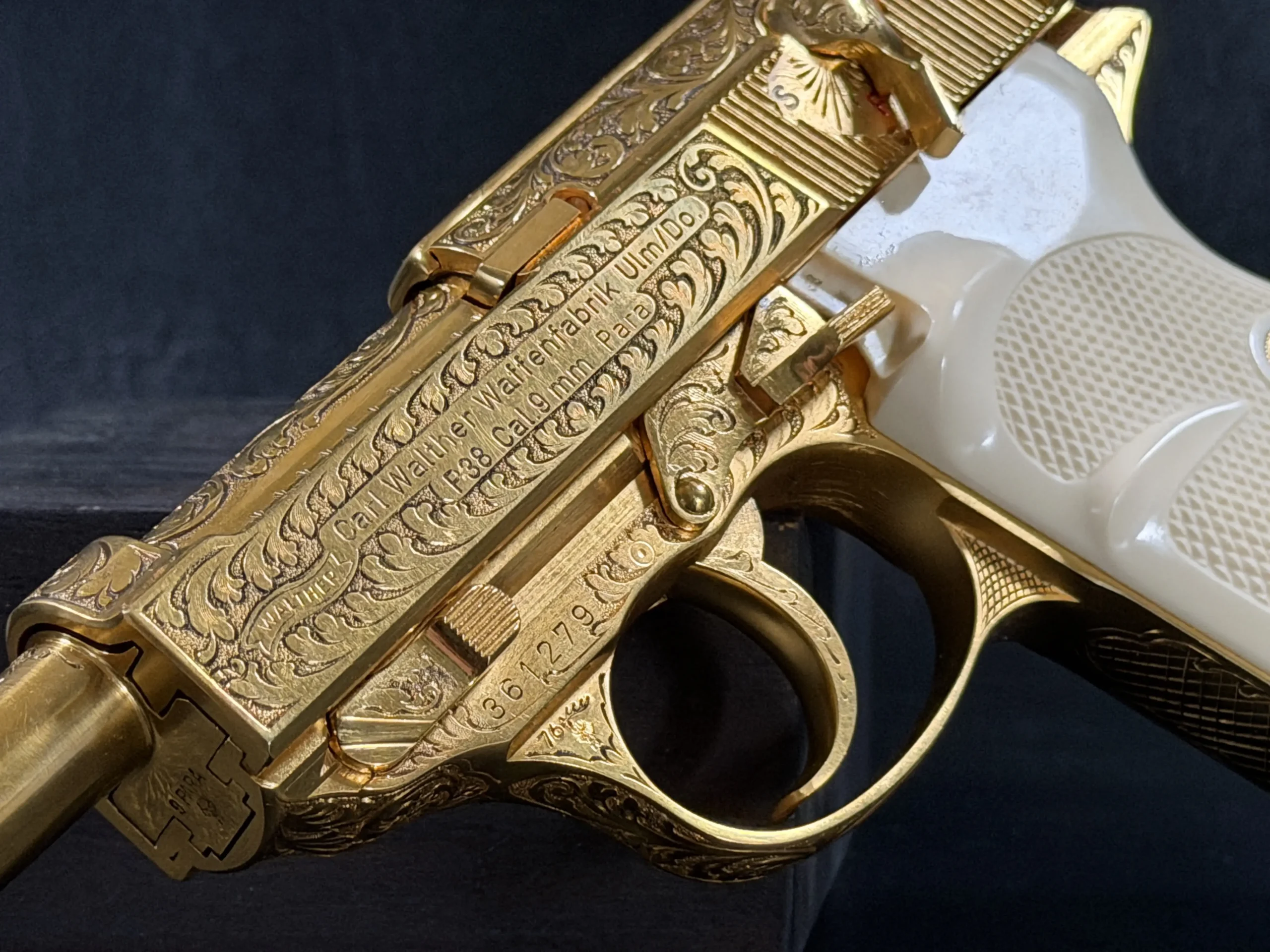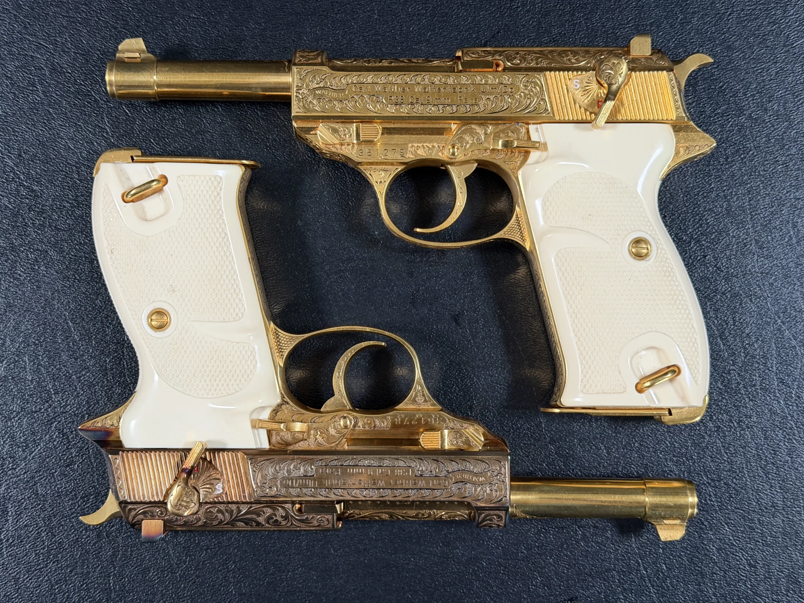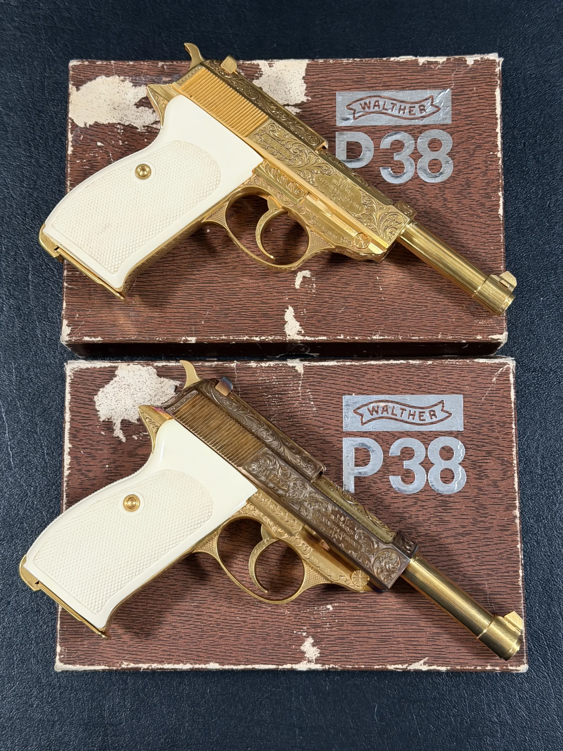 For the collector who values symmetry, rarity, and visual impact, this pair stands as a centerpiece. Whether displayed individually or as the pair they were meant to remain, these Gold Engraved Walther P38 pistols embody the intersection of engineering and ornament, military heritage, and refined presentation.